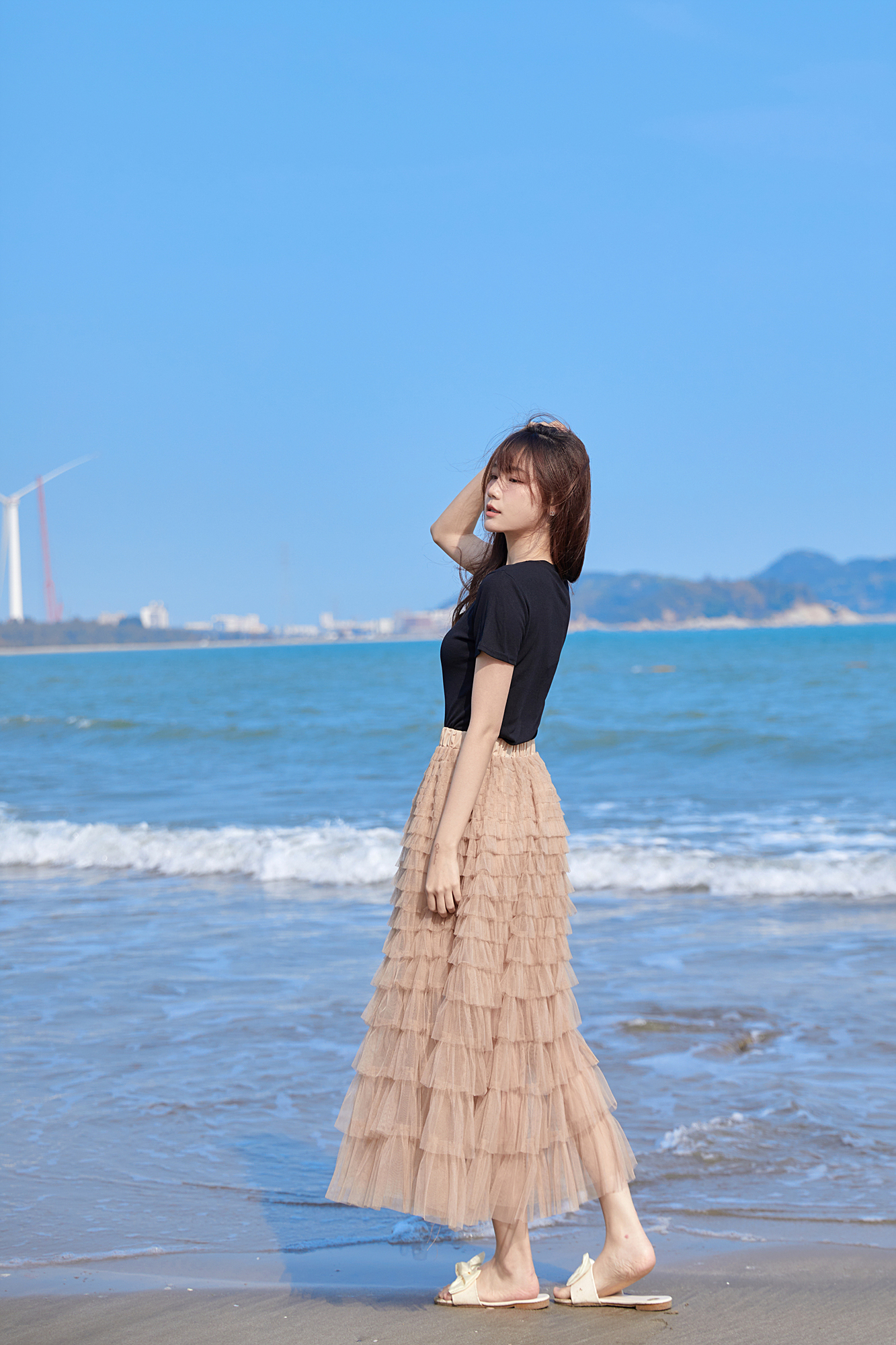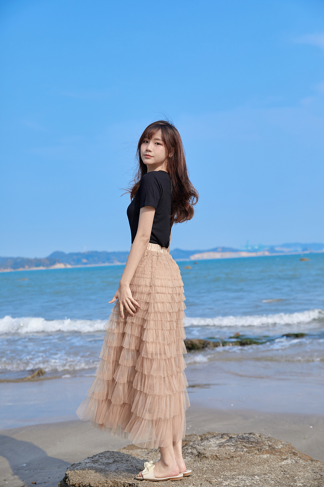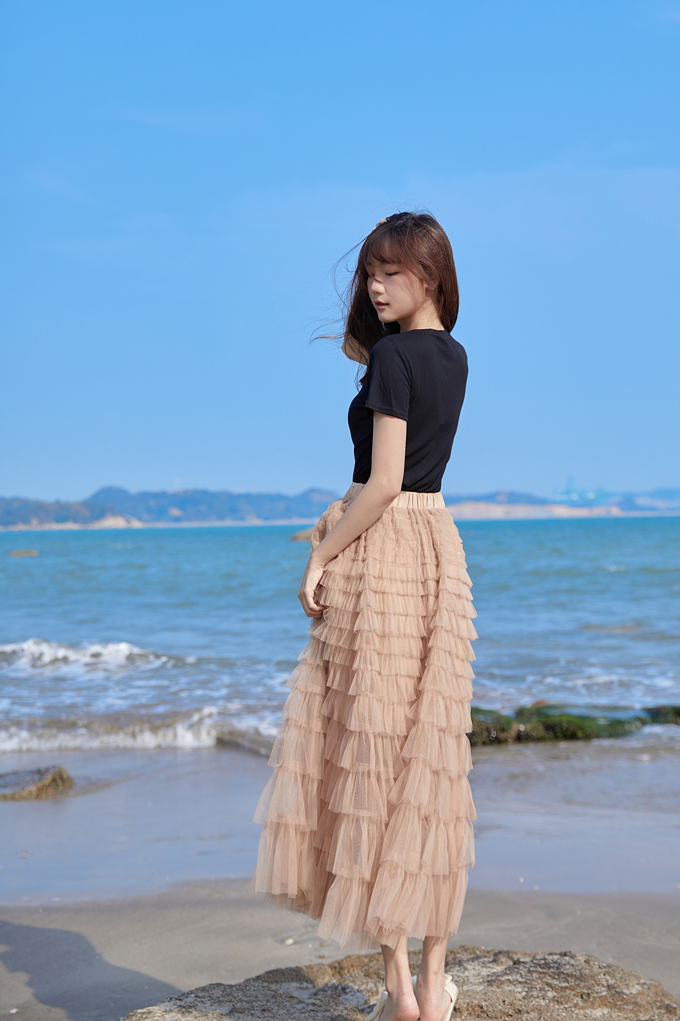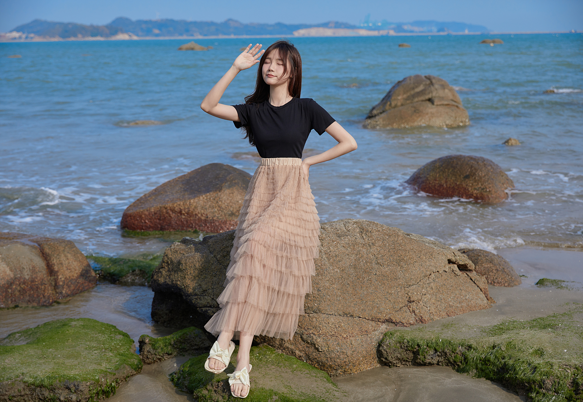 RM5363#纯色高腰层层网纱蛋糕裙a字百褶小个子半身裙仙女纱裙配显瘦黑T夏