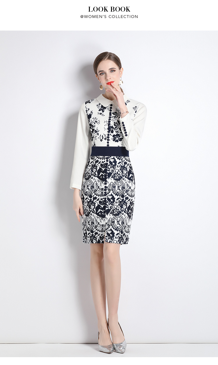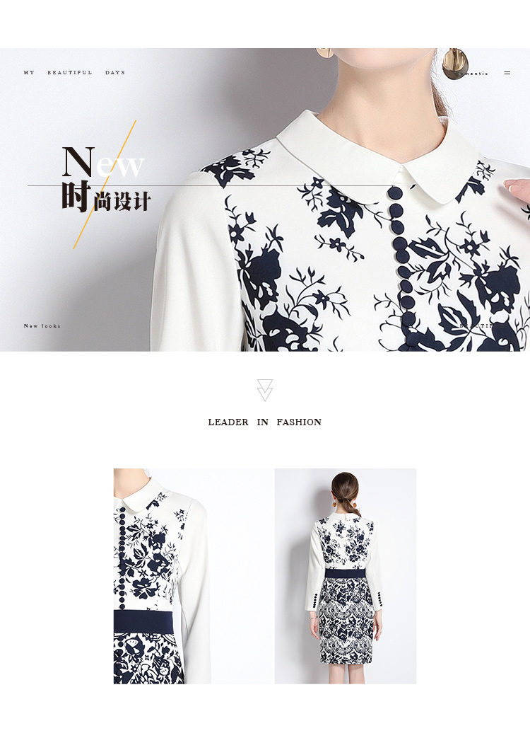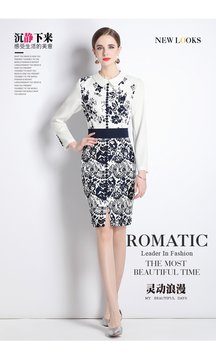 RM5418#欧洲站明星同款女时尚印花高级感修身显瘦优雅瑞丽礼服连衣裙