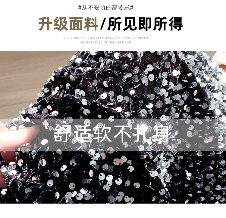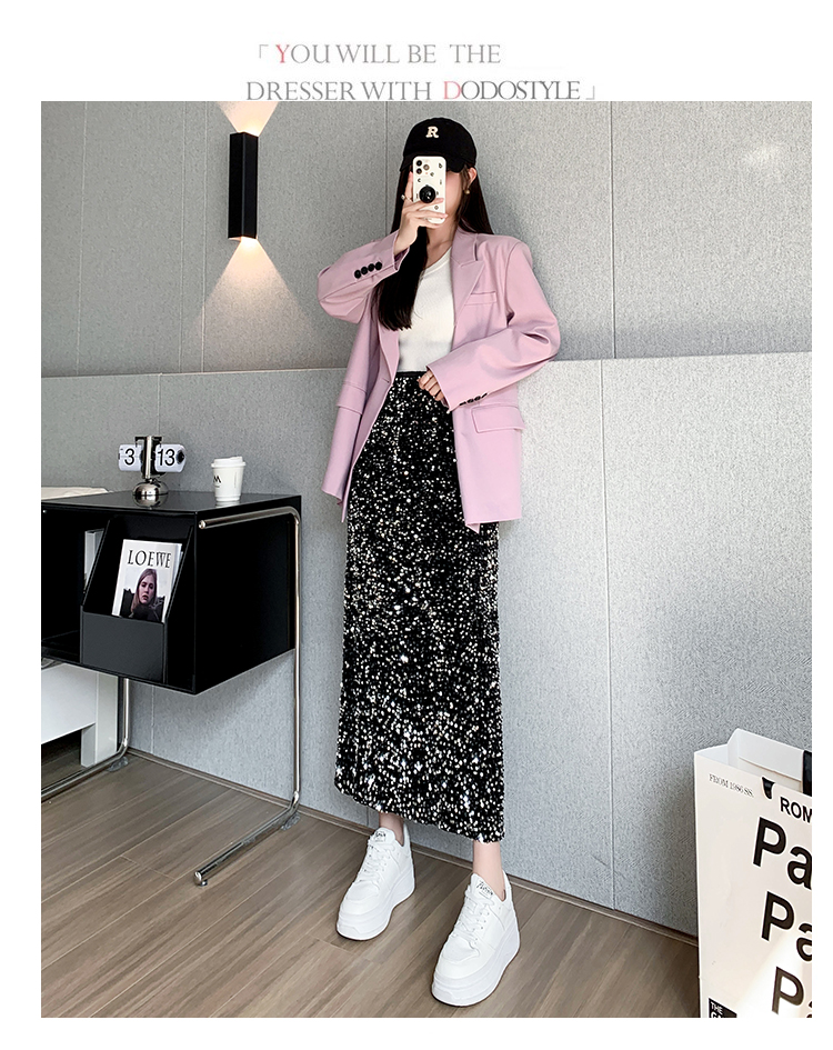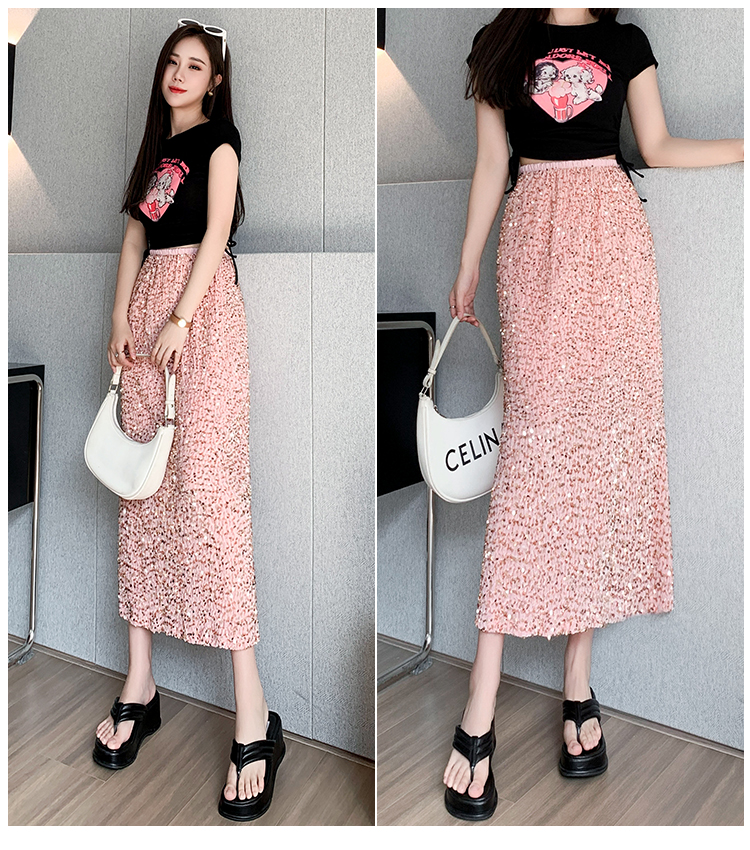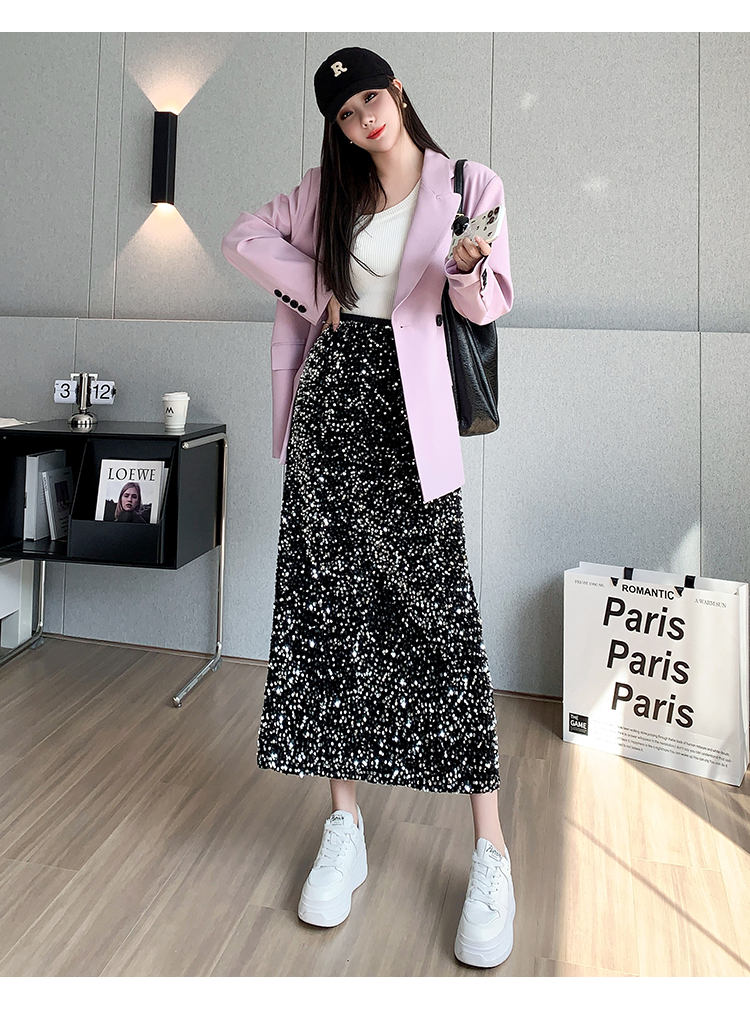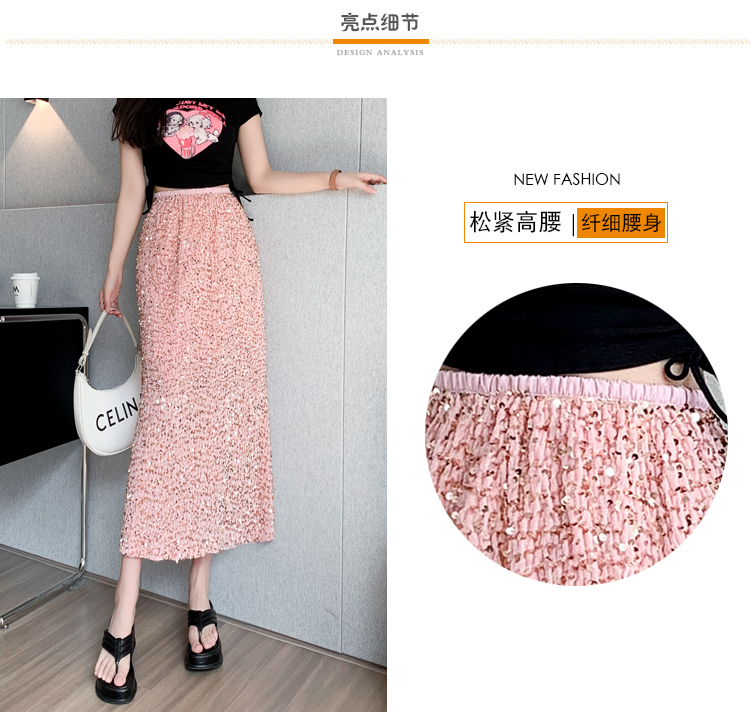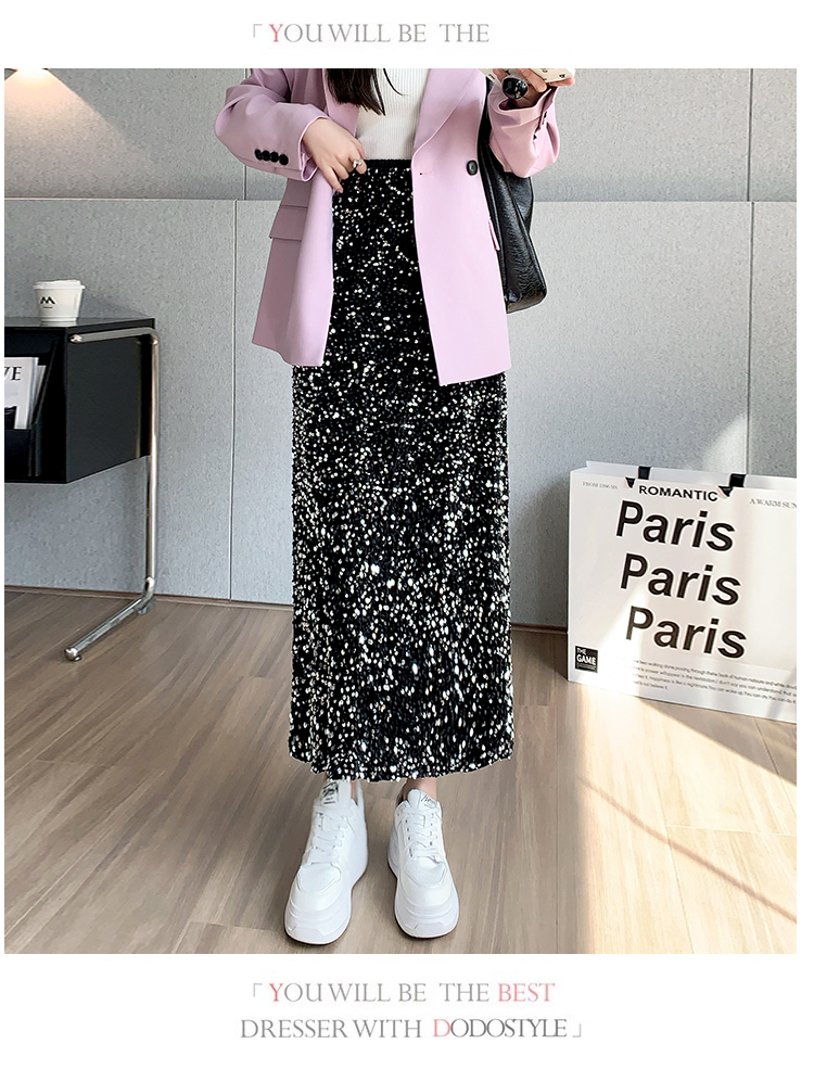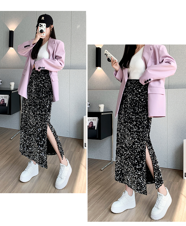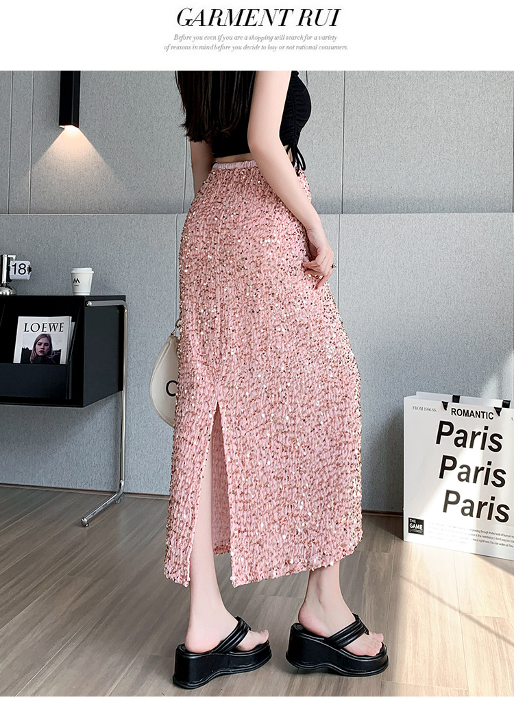 RM5644#春夏韩版高腰显瘦中长款重工亮片闪闪丝绒直筒开叉半身裙