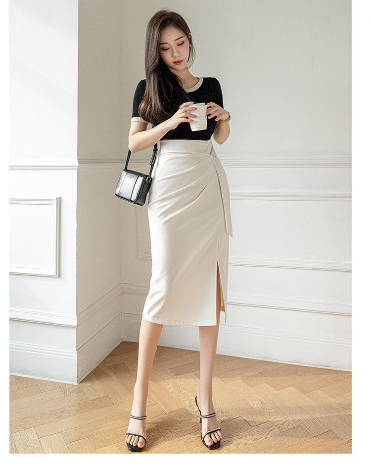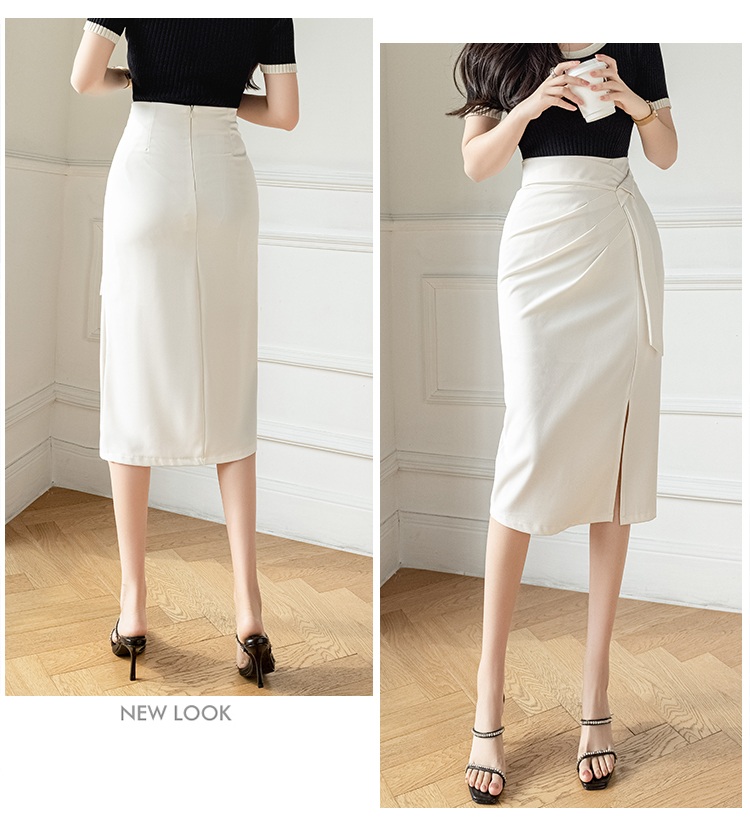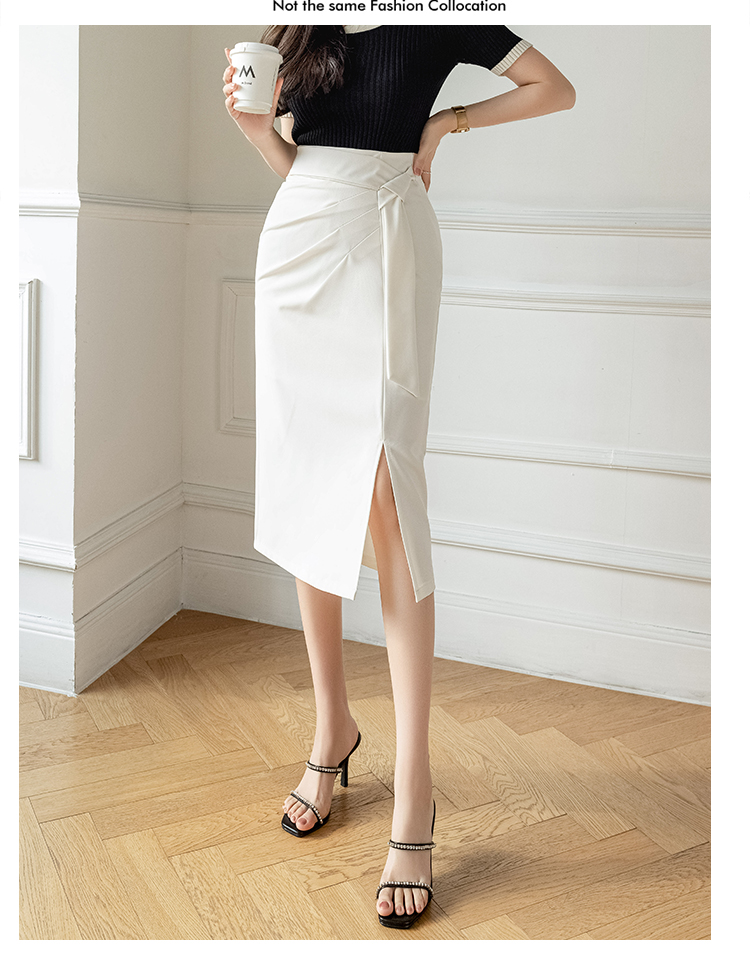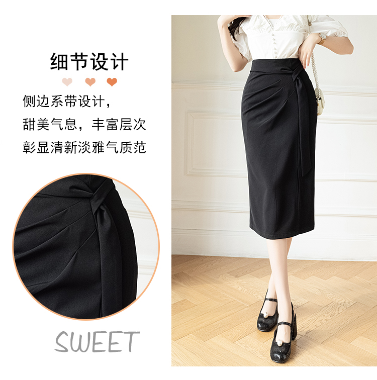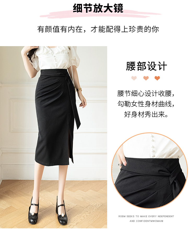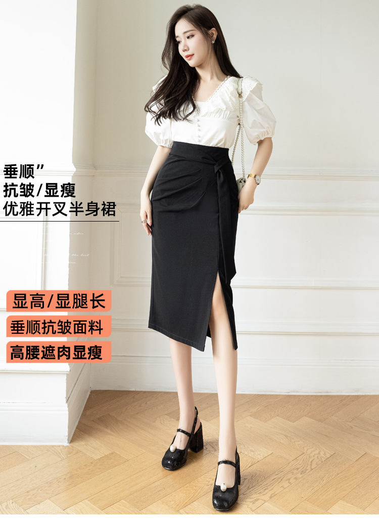 RM5647#高腰设计感多样系法垂感开叉褶皱显瘦包臀a字中长半身裙