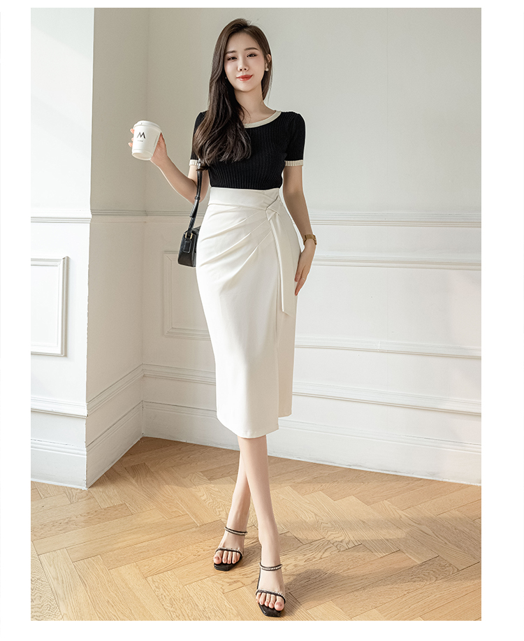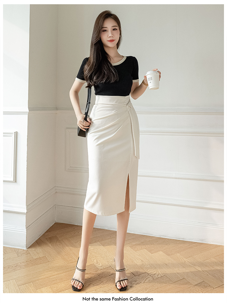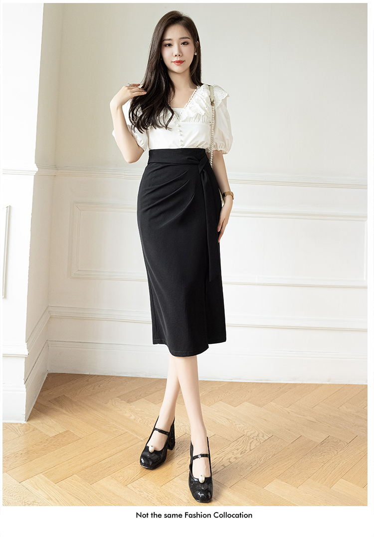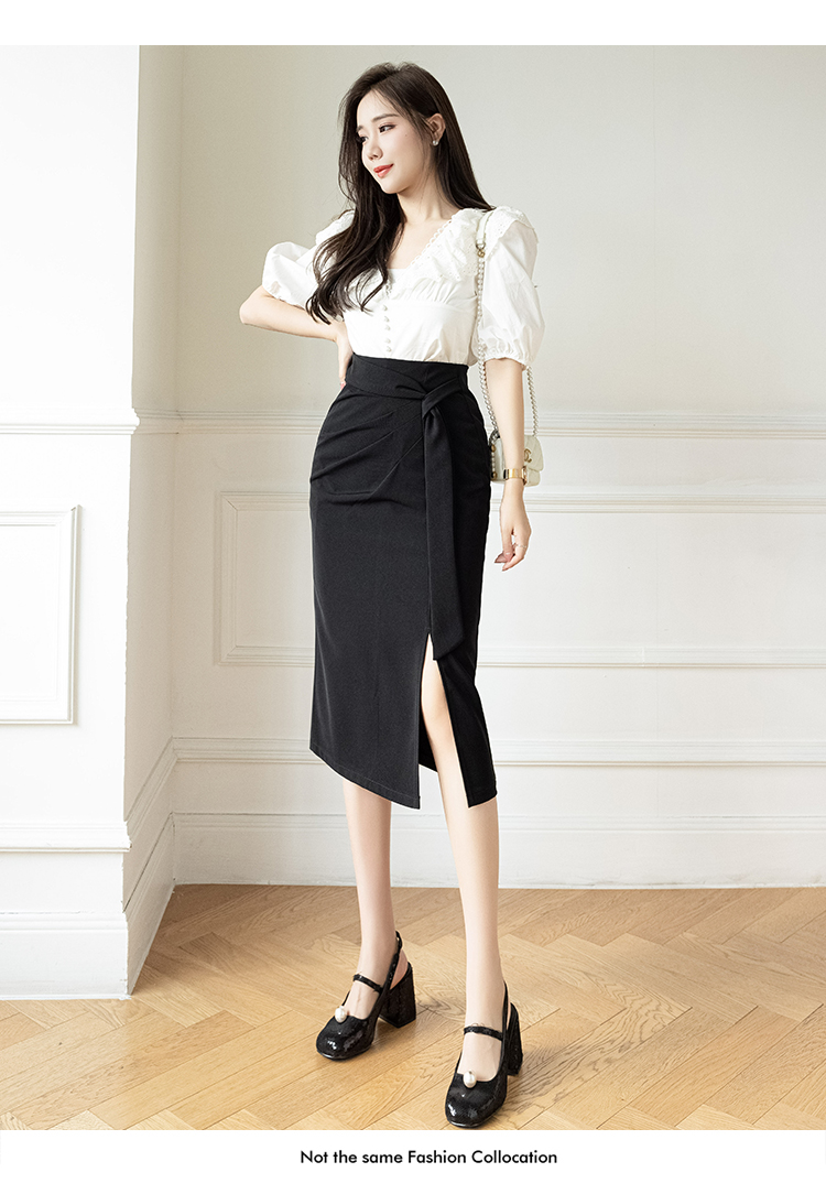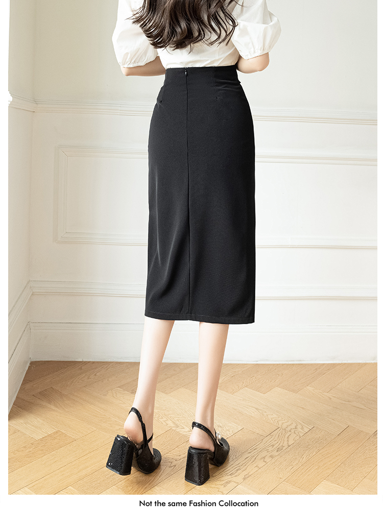 RM5647#高腰设计感多样系法垂感开叉褶皱显瘦包臀a字中长半身裙