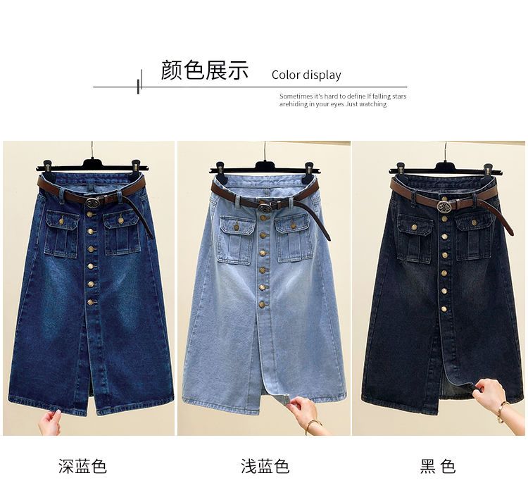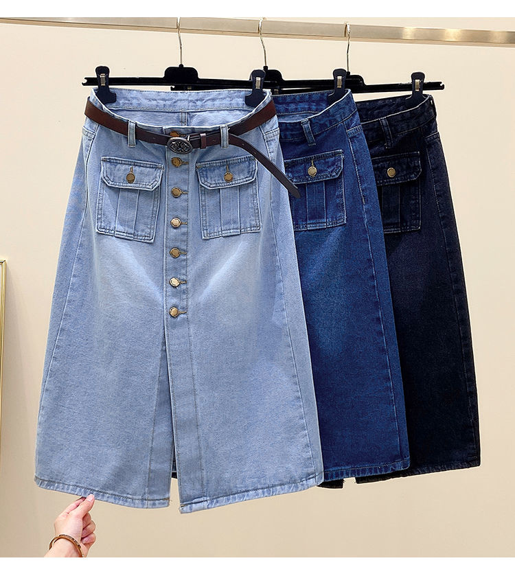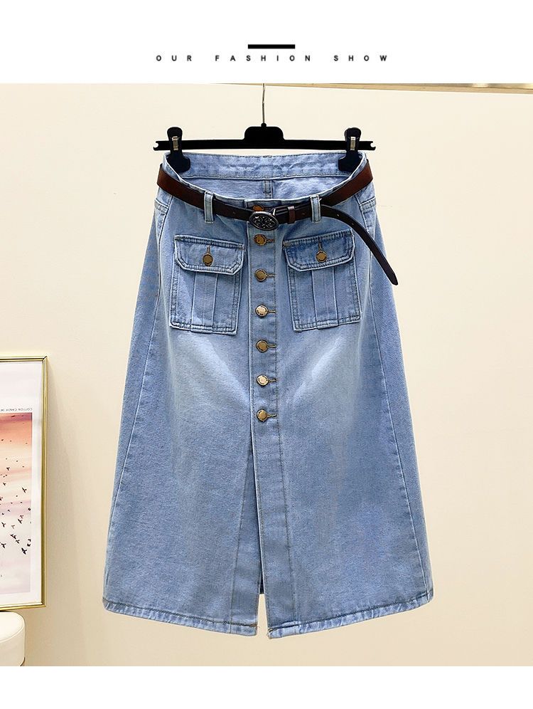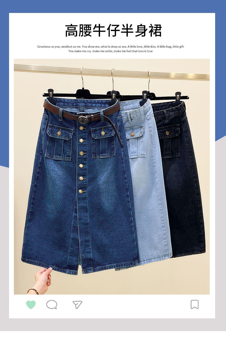 RM5733#新款前开叉牛仔长裙包臀中长款半身裙薄款不包含皮带