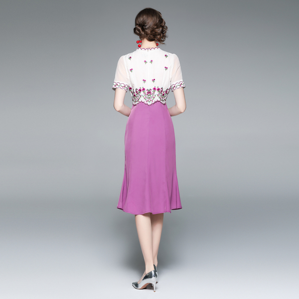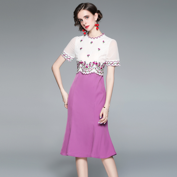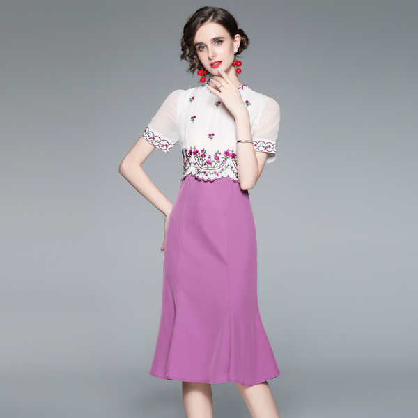 RM5806#夏女装高端轻奢法式精品垂感面料拼接鱼尾裙子重工艺刺绣连衣