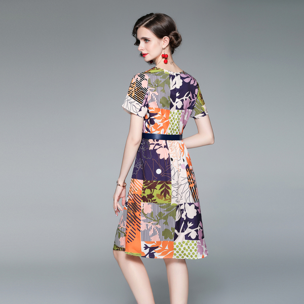 RM5807#欧洲站夏装 新款时尚印花连衣裙洋气收腰显瘦A字裙子