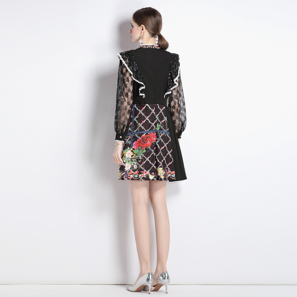 首页 > 女装批发-秋冬款 > 欧美连衣裙 > RM5811#新款女装水溶花边立领荷叶边蕾丝亮片泡泡袖印花连衣裙