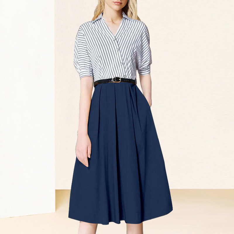 RM5657#大摆半身裙条纹V领高级感上衣两件套装夏季2023新款女装