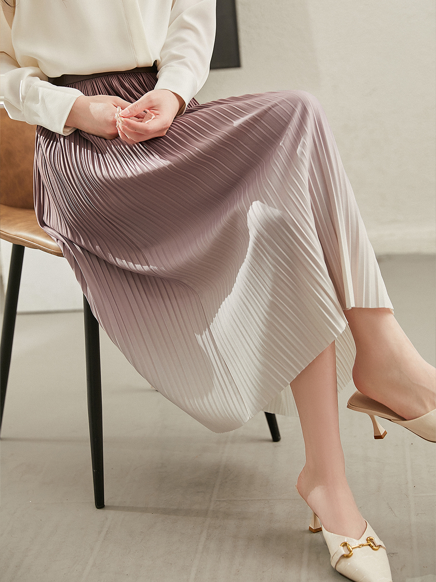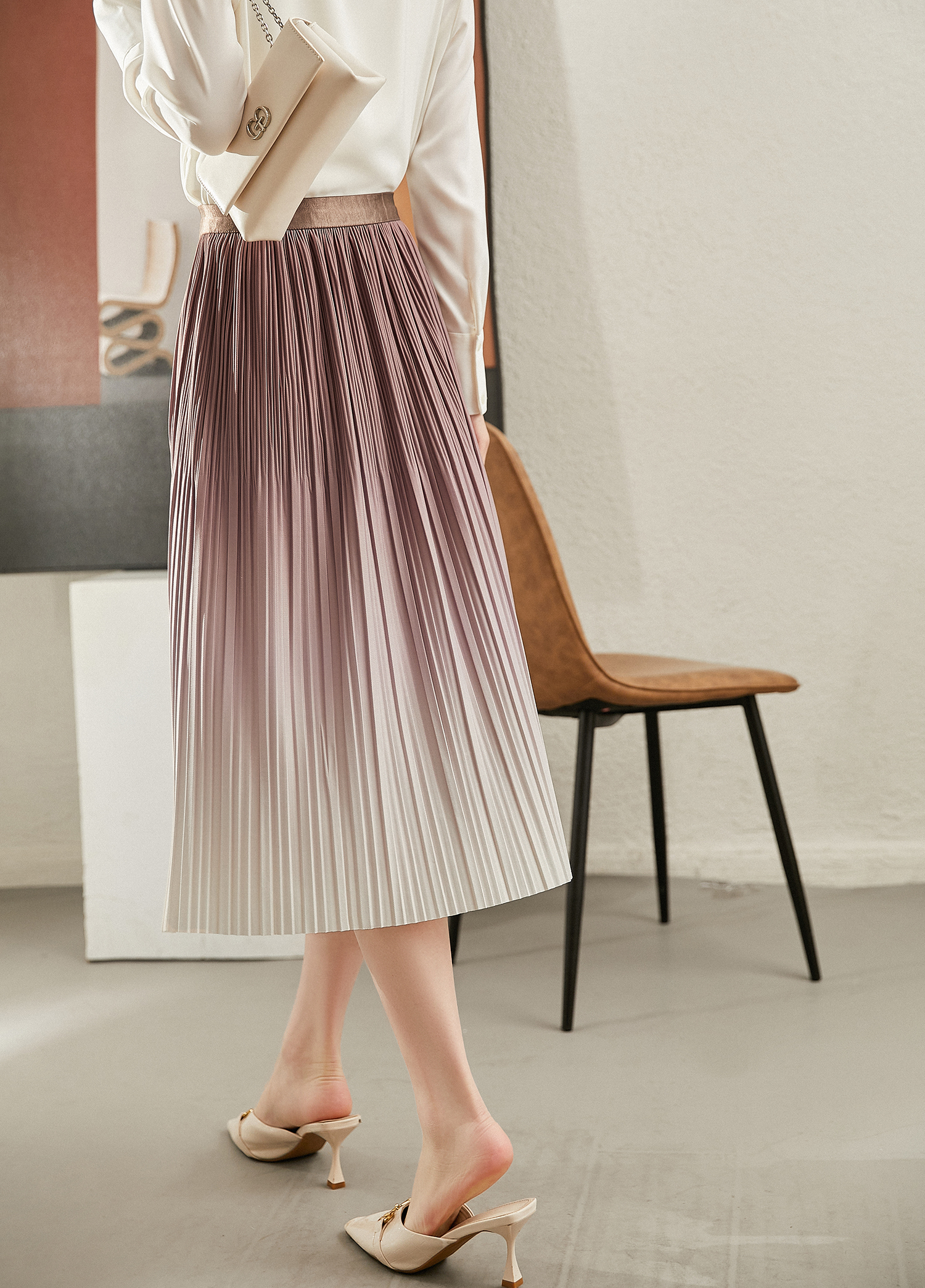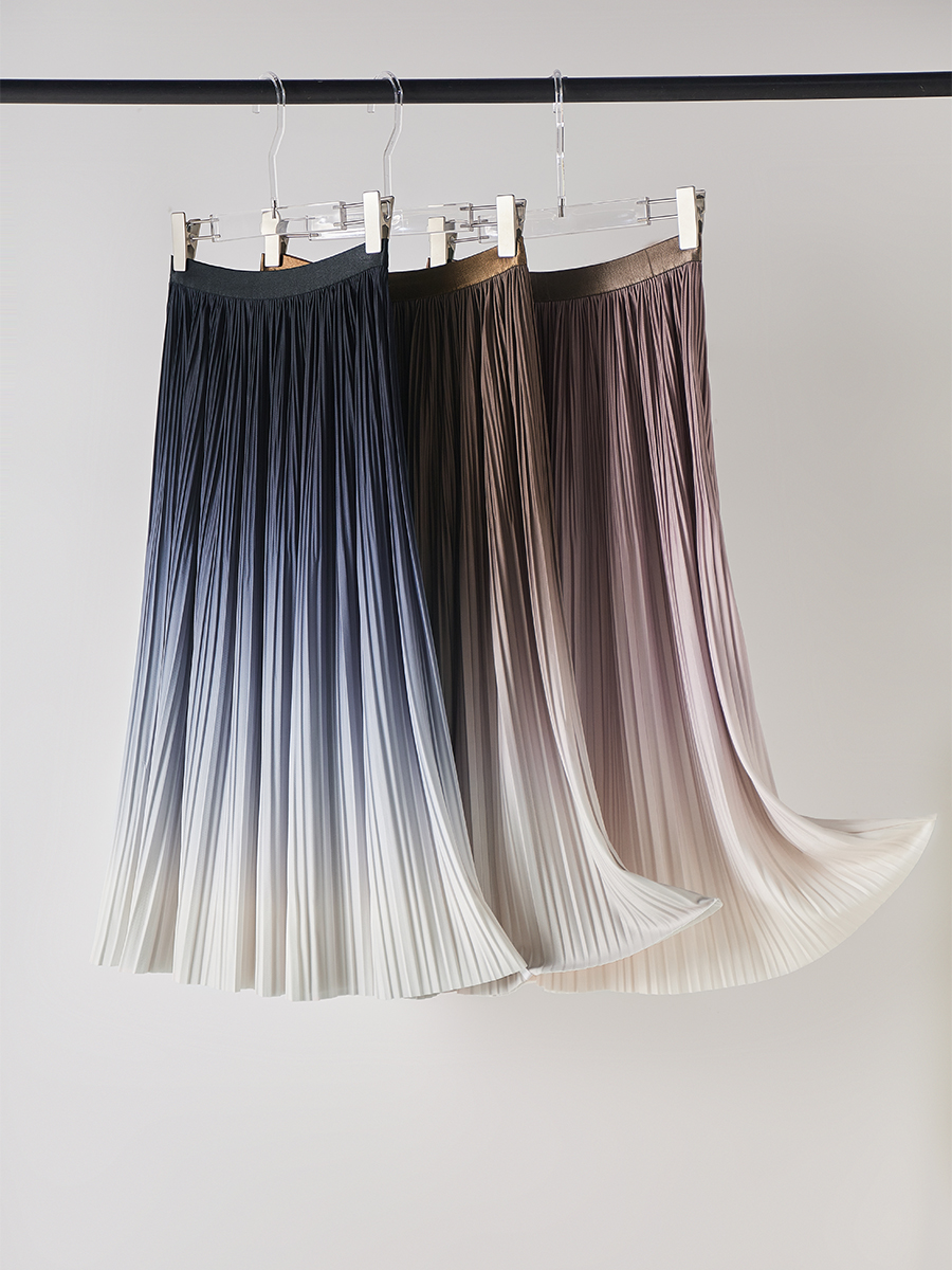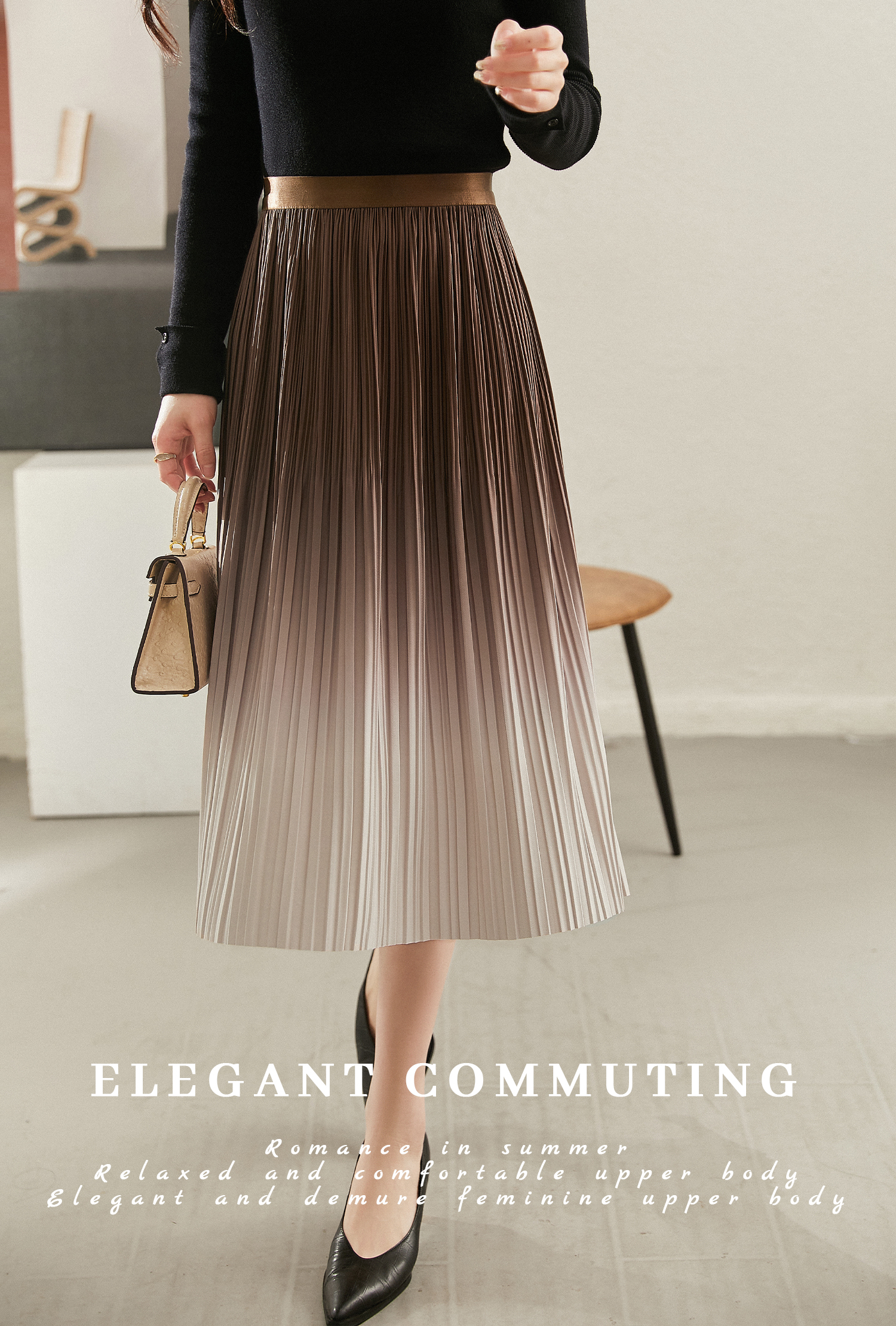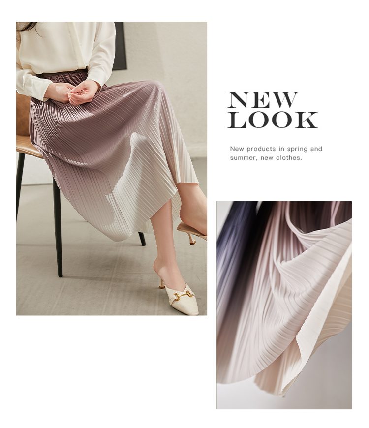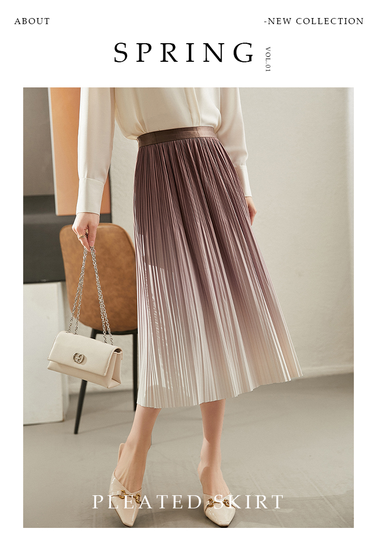 RM5751#简漫 面料升级 重工植物定染渐变色 垂坠飘逸松紧高腰百褶半身裙