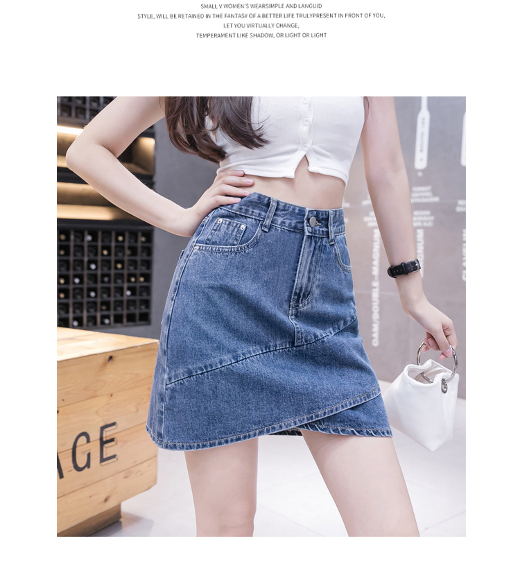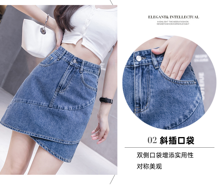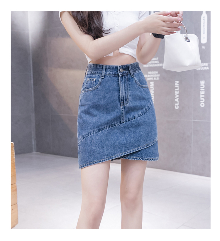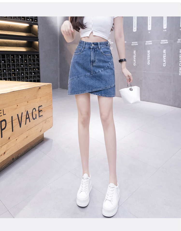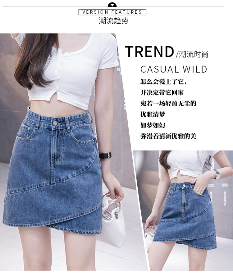 RM5795#新款不规则设计感高腰百搭a字包臀牛仔短裙女