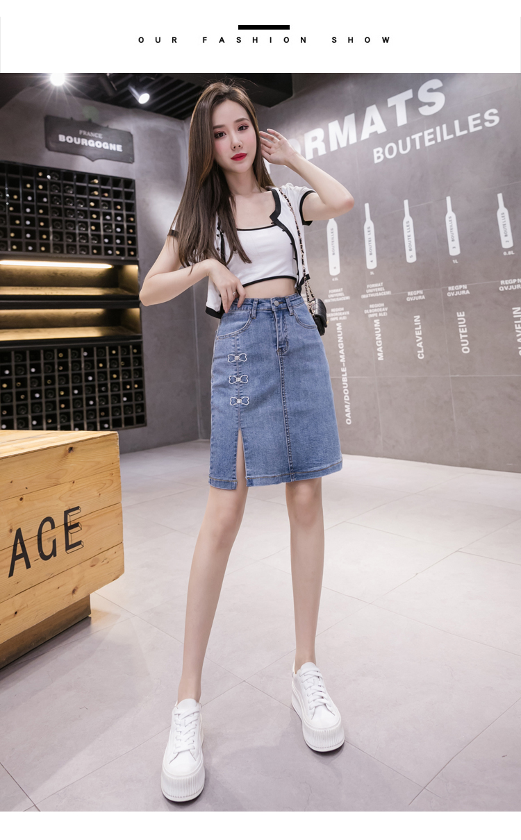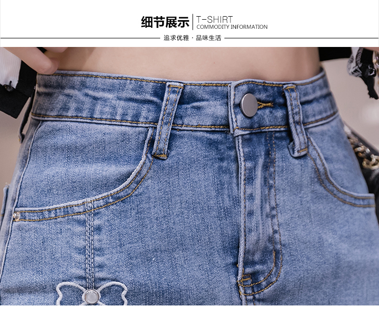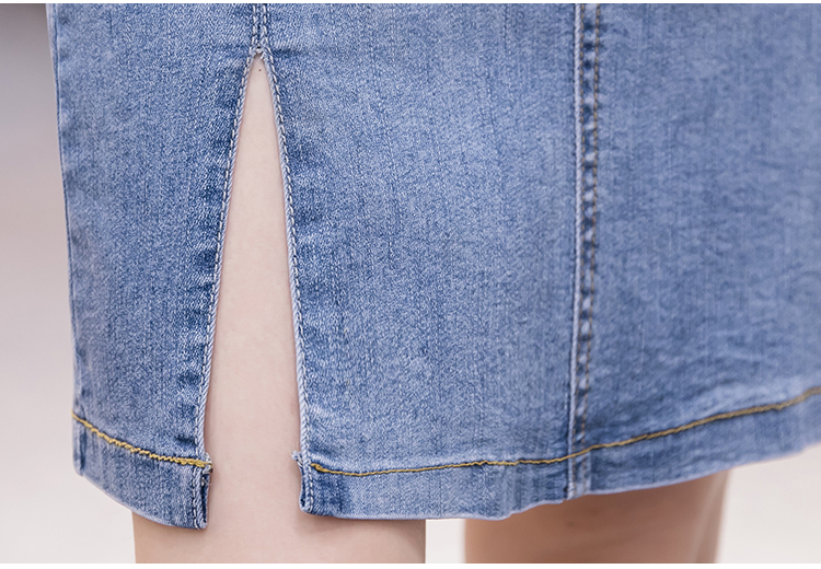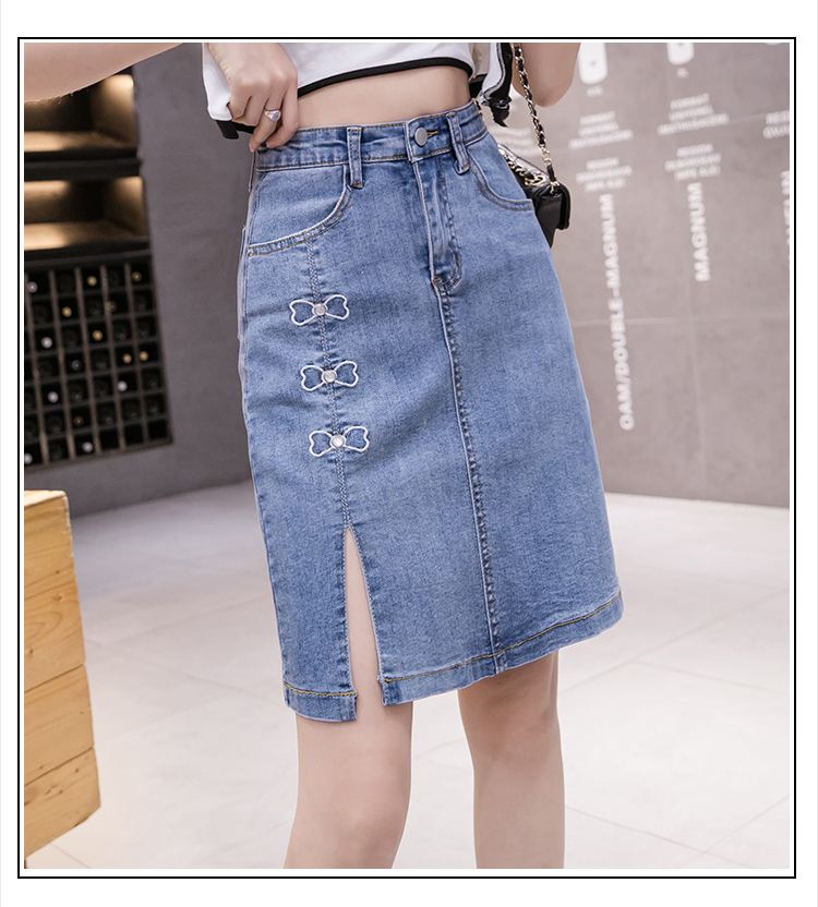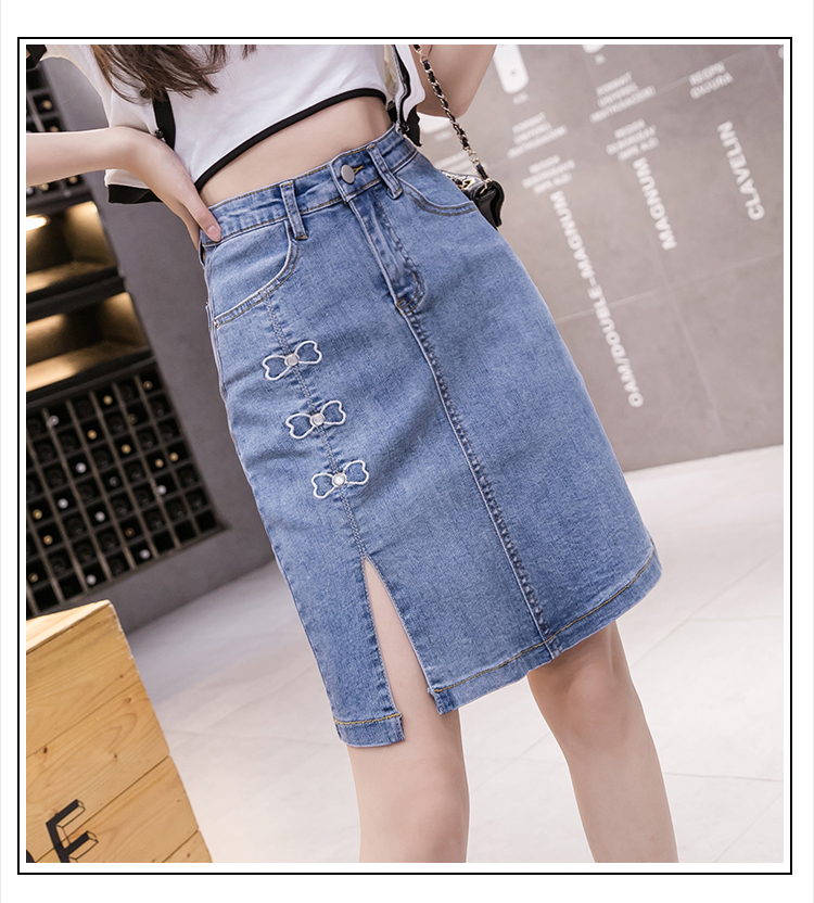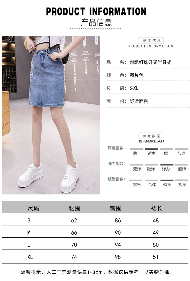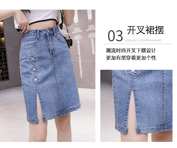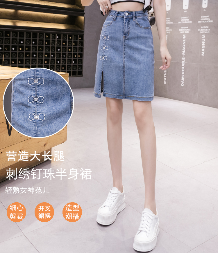 RM5797#高腰牛仔半身裙女中长款2023年新款刺绣钉珠开叉A字裙子