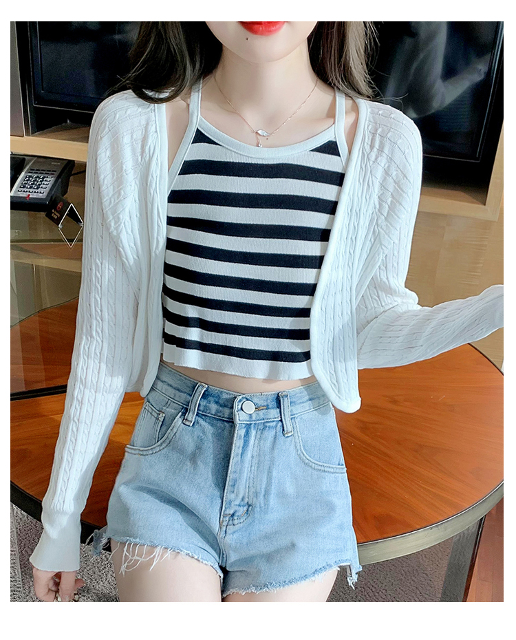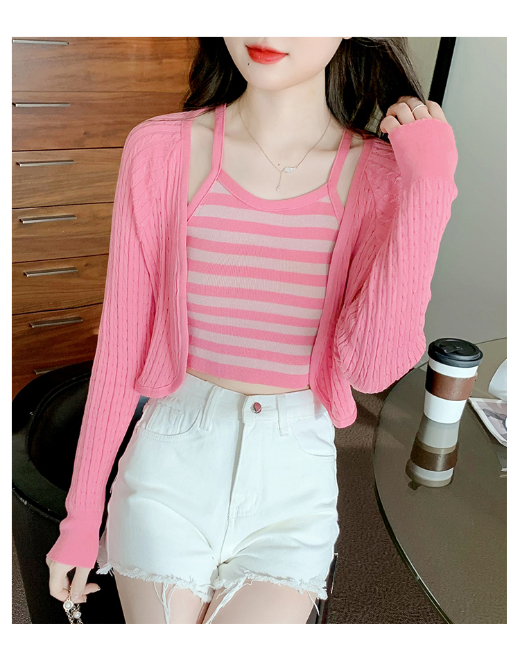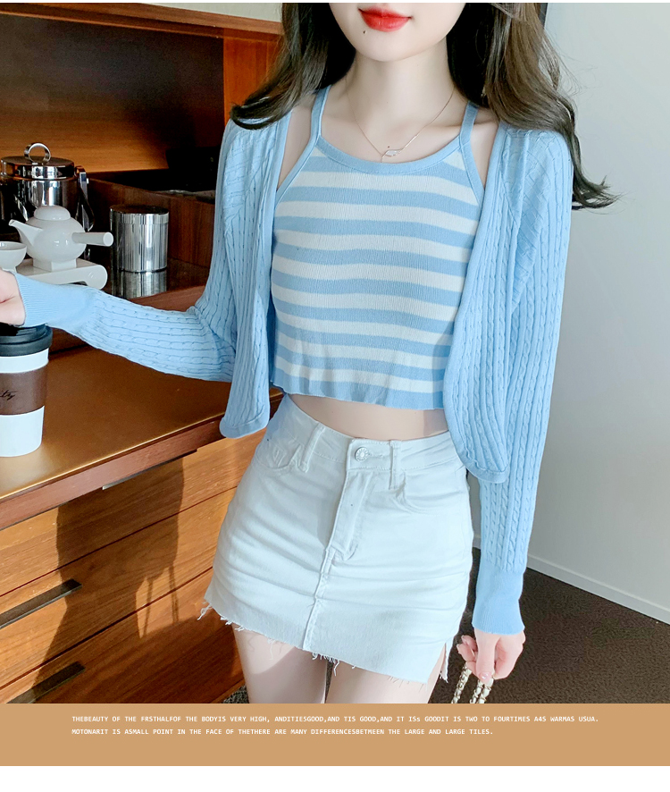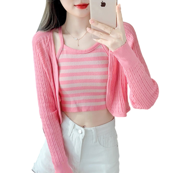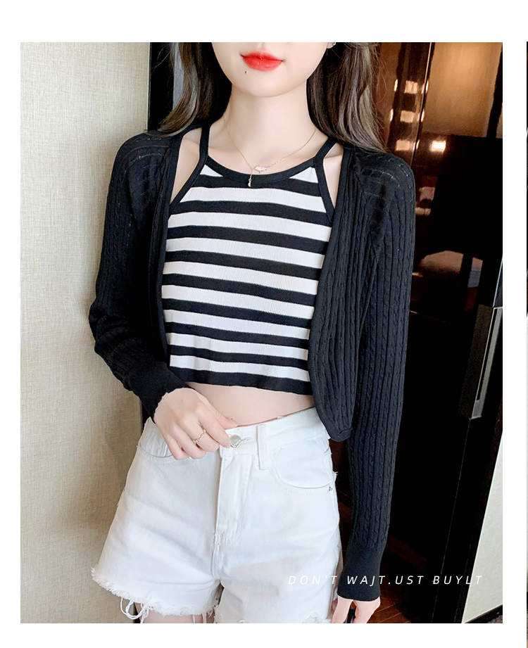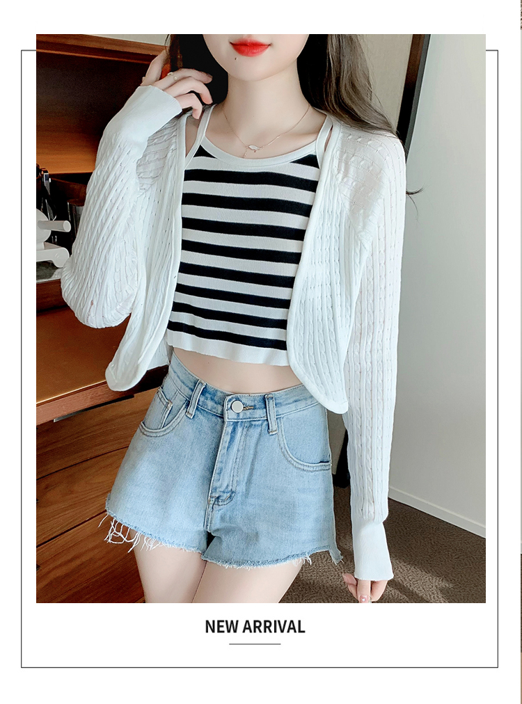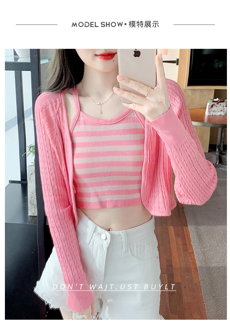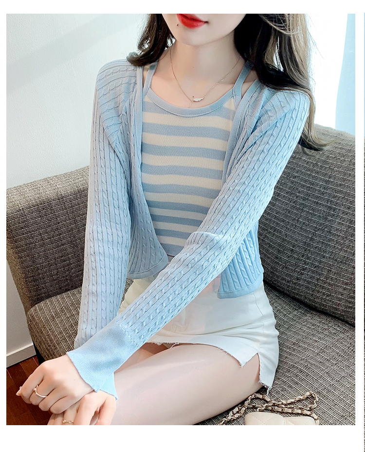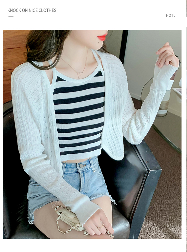 RM5828#春夏实拍大码 新款两件套短款防晒衣毛针织衫