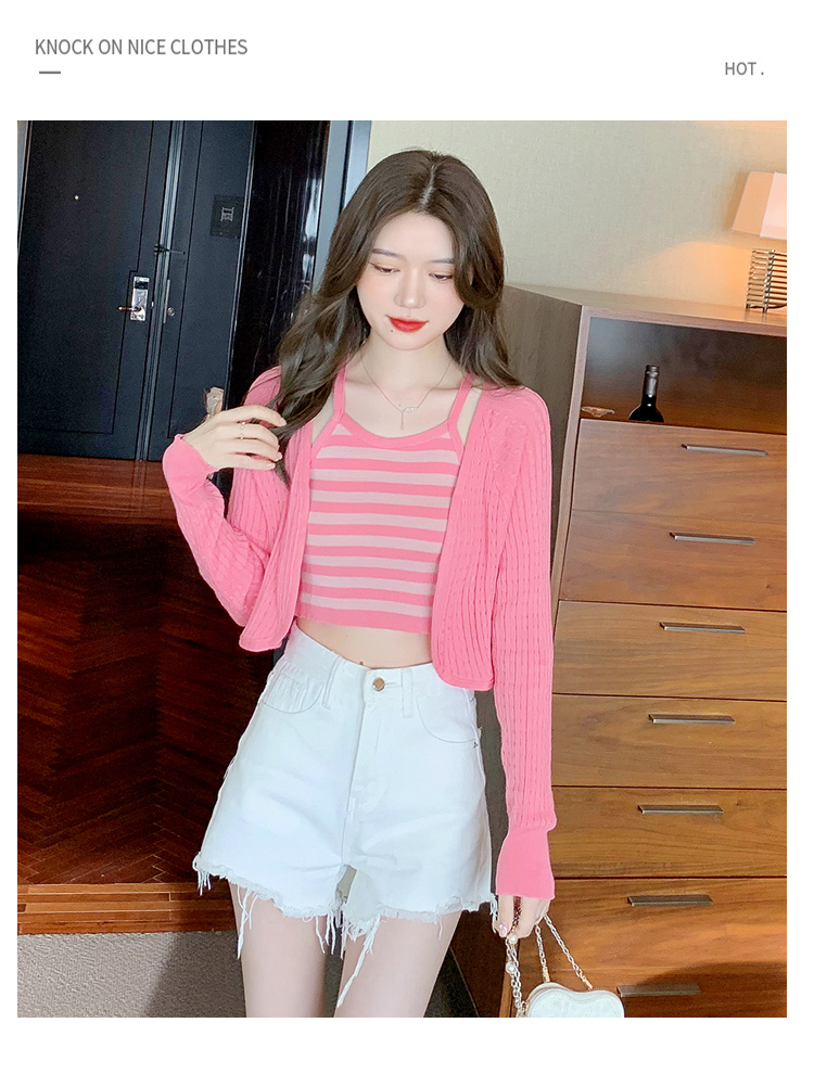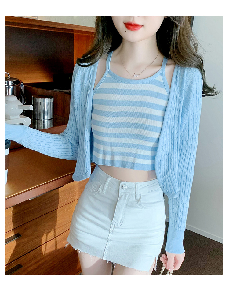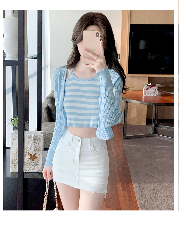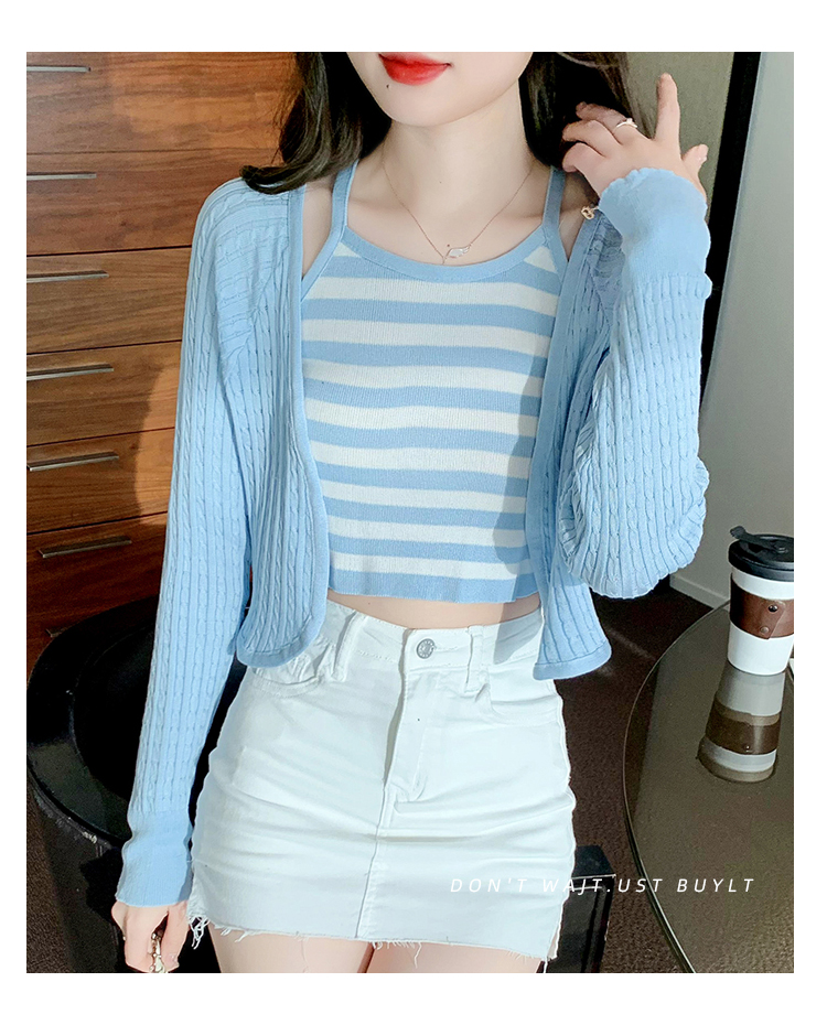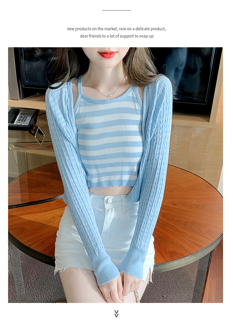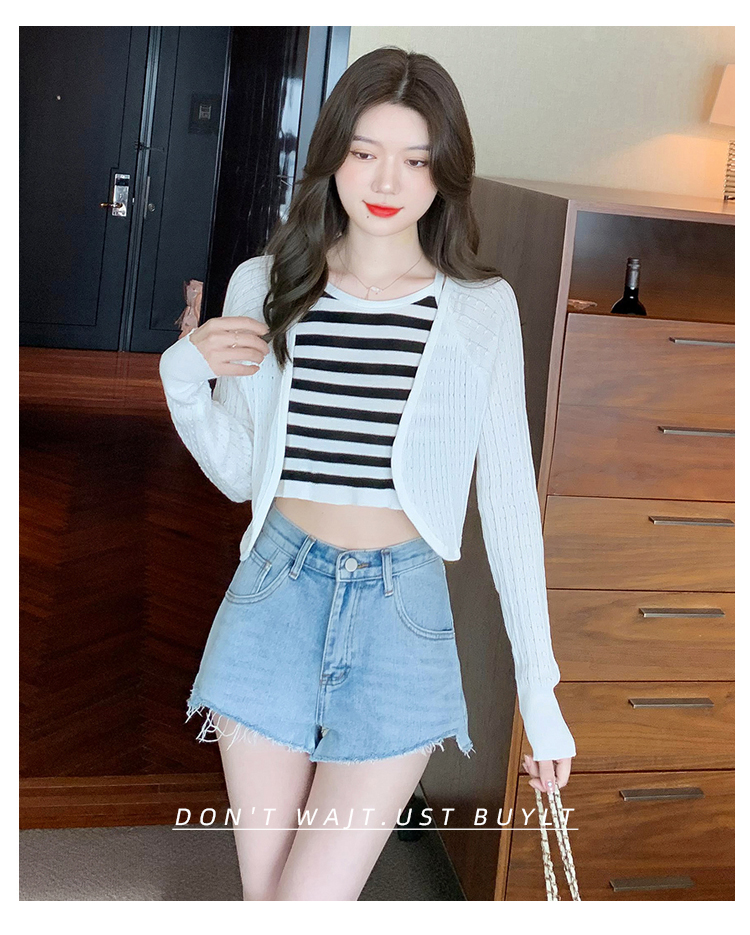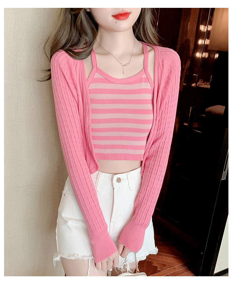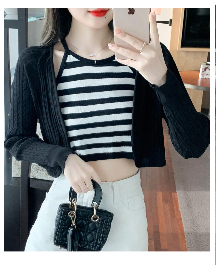 RM5828#春夏实拍大码 新款两件套短款防晒衣毛针织衫