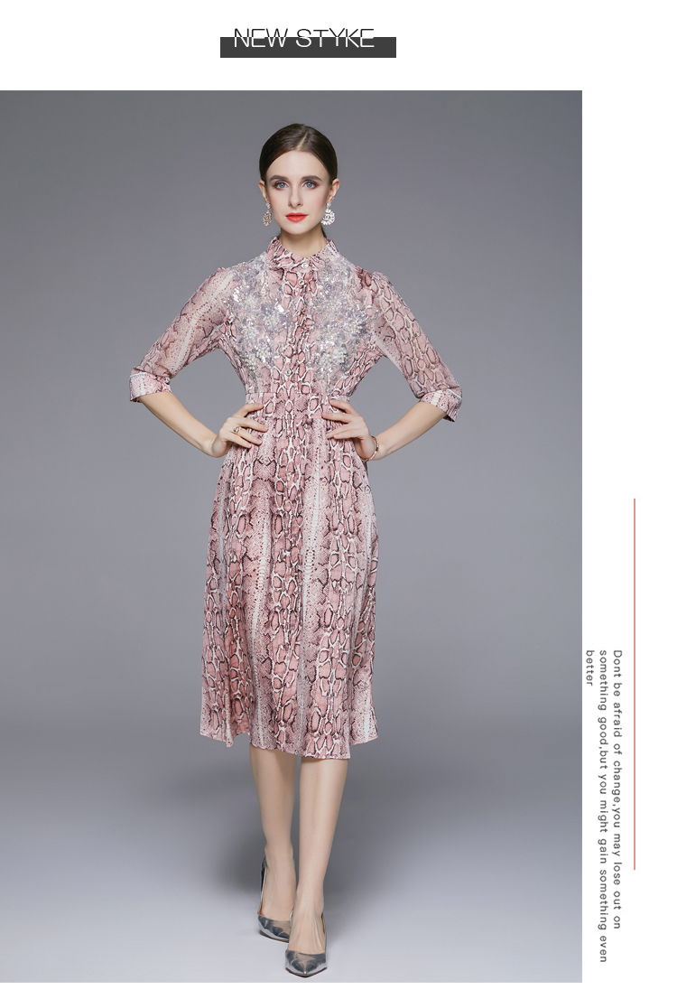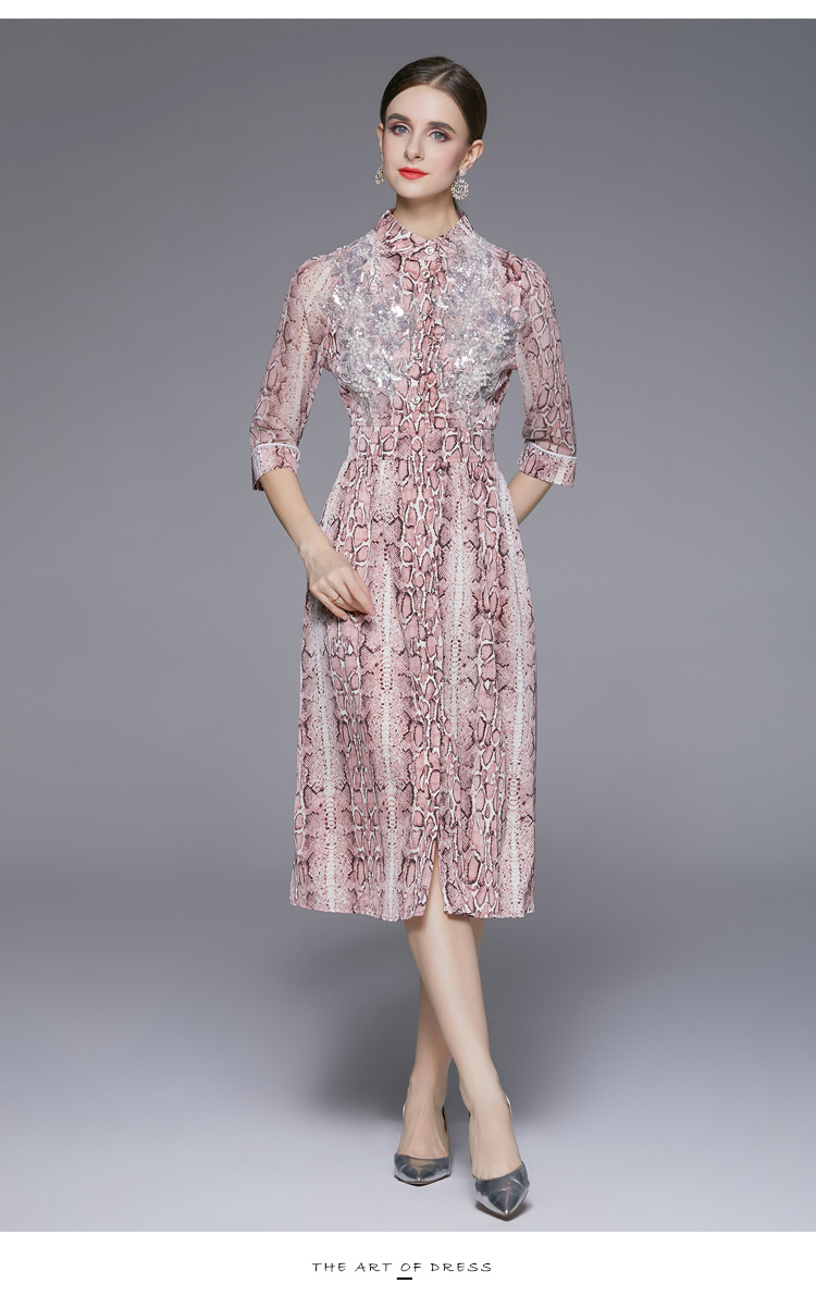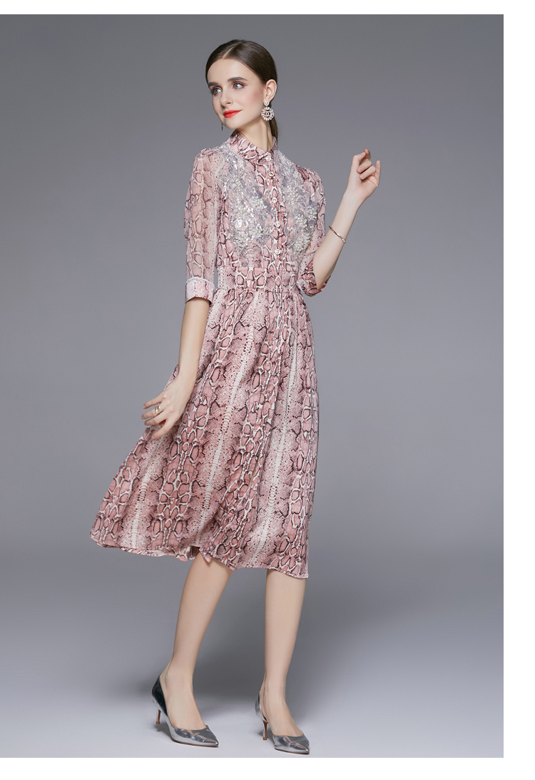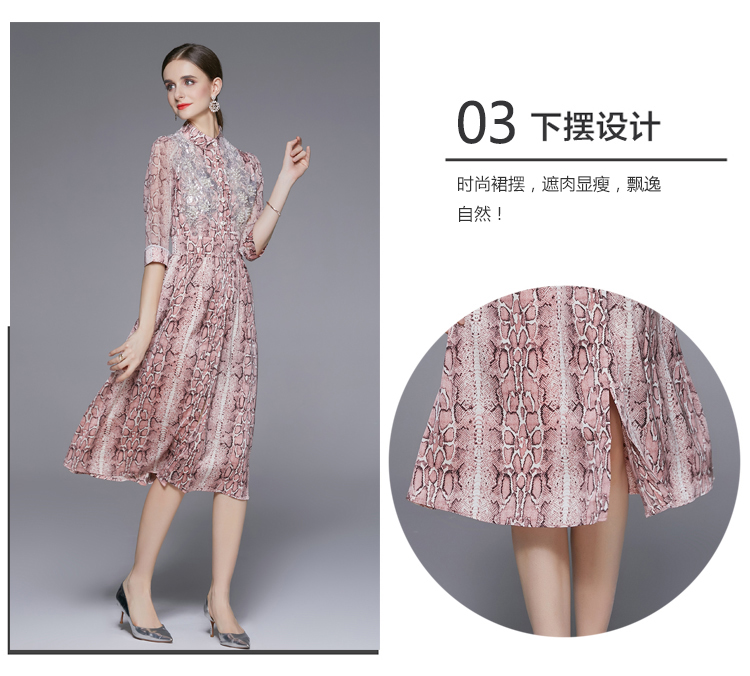 RM6172#新款重工艺印花立领系带修身连衣裙