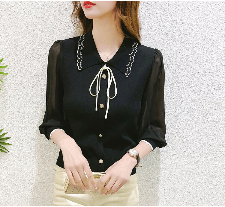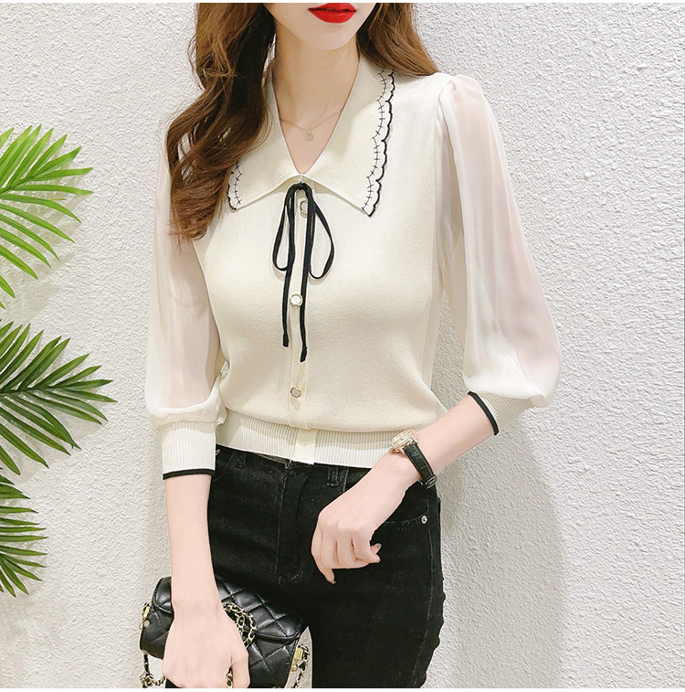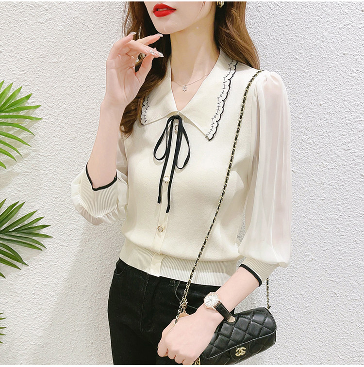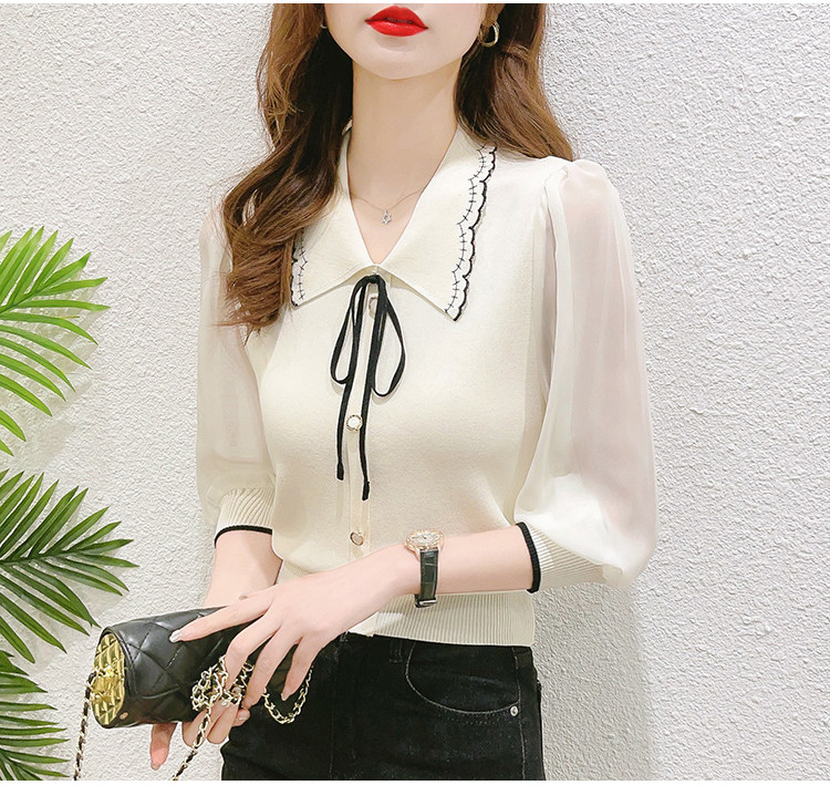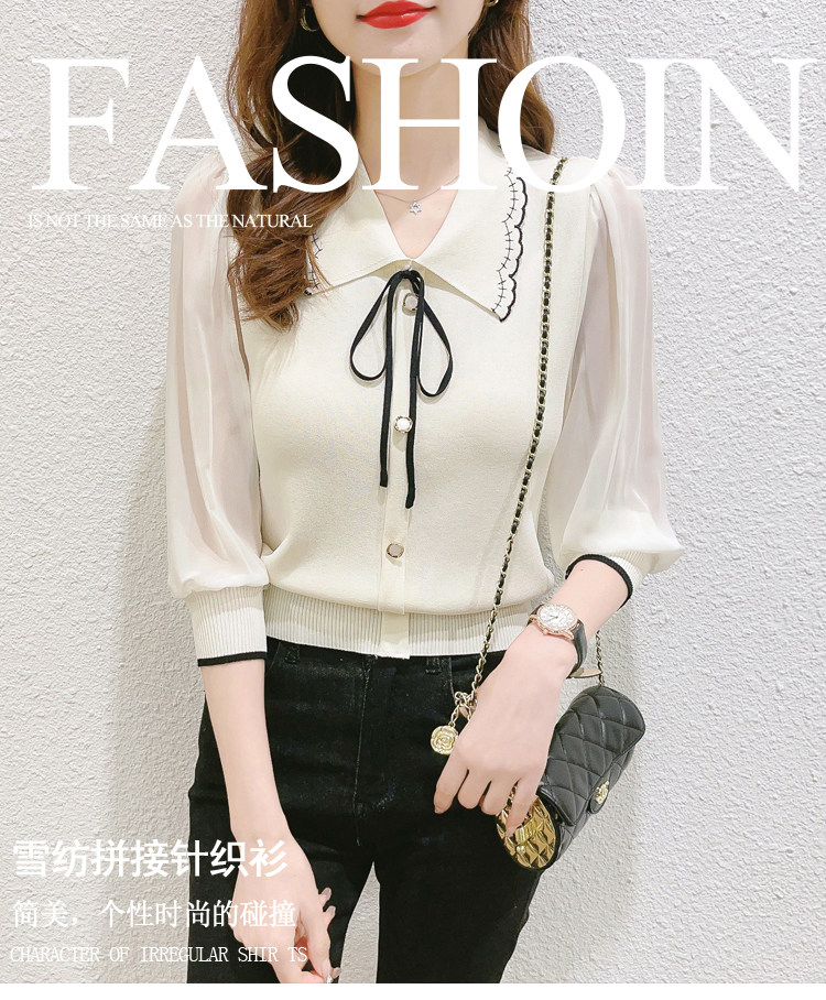 RM6336#小香风春夏上衣女2023春装新款v领针织短袖内搭宽松短款洋气小衫