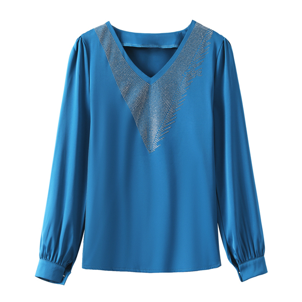 RM6410#本命年红小衫烫钻真丝时尚小衫V领上衣女洋气 女装雪纺衫