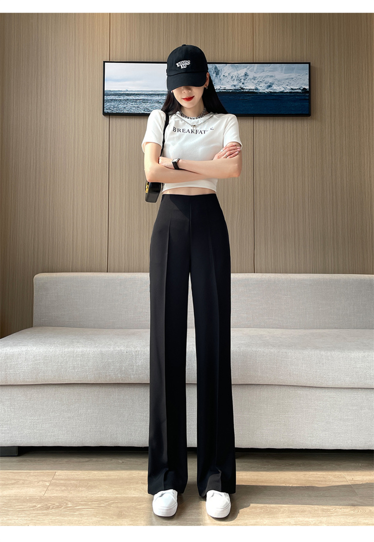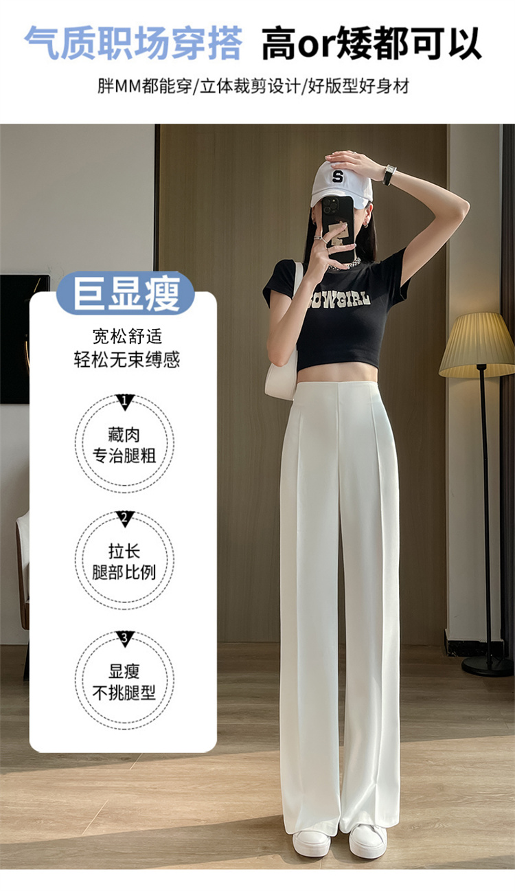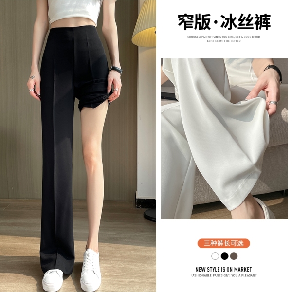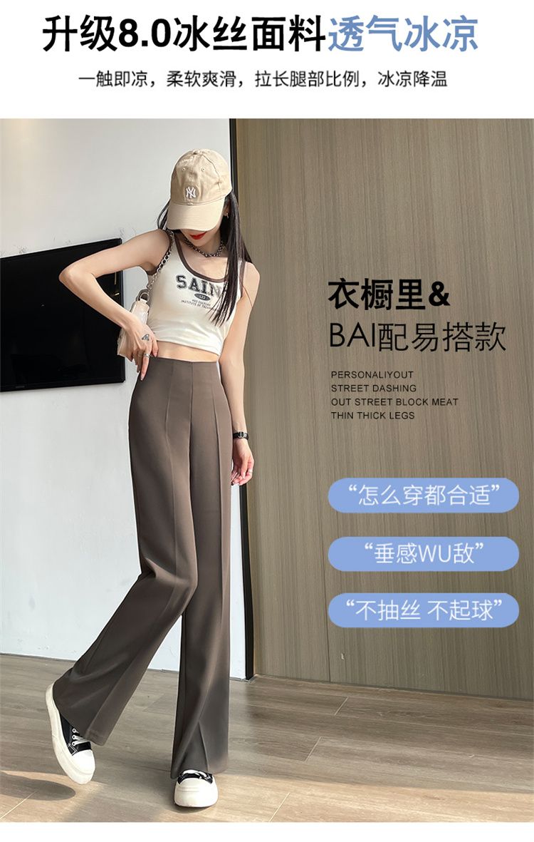 RM6582#夏季冰丝裤西装裤高腰窄版垂感直筒薄阔腿裤拖地裤女