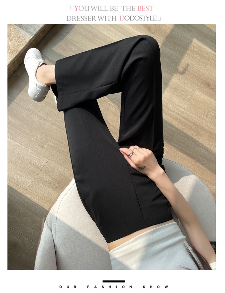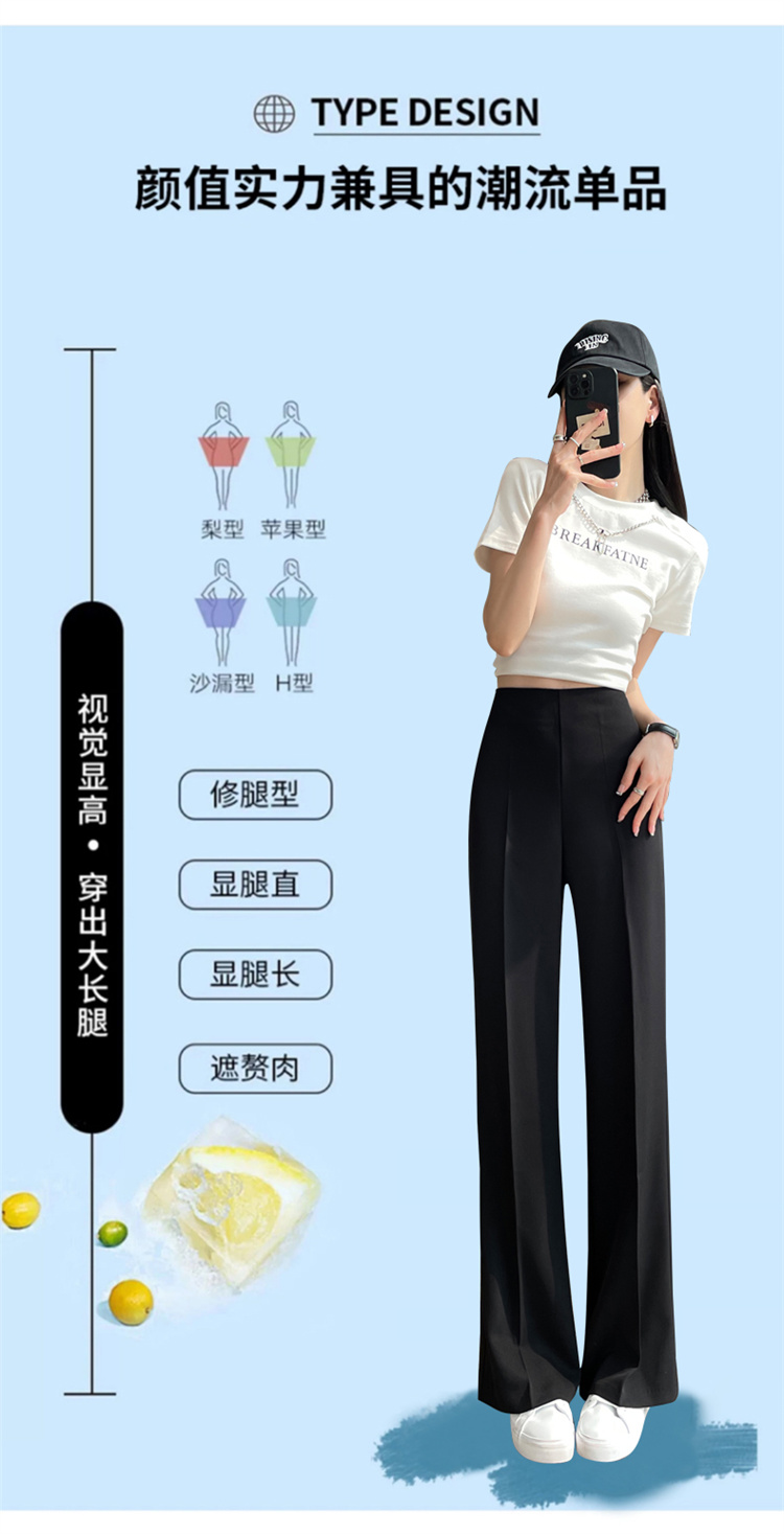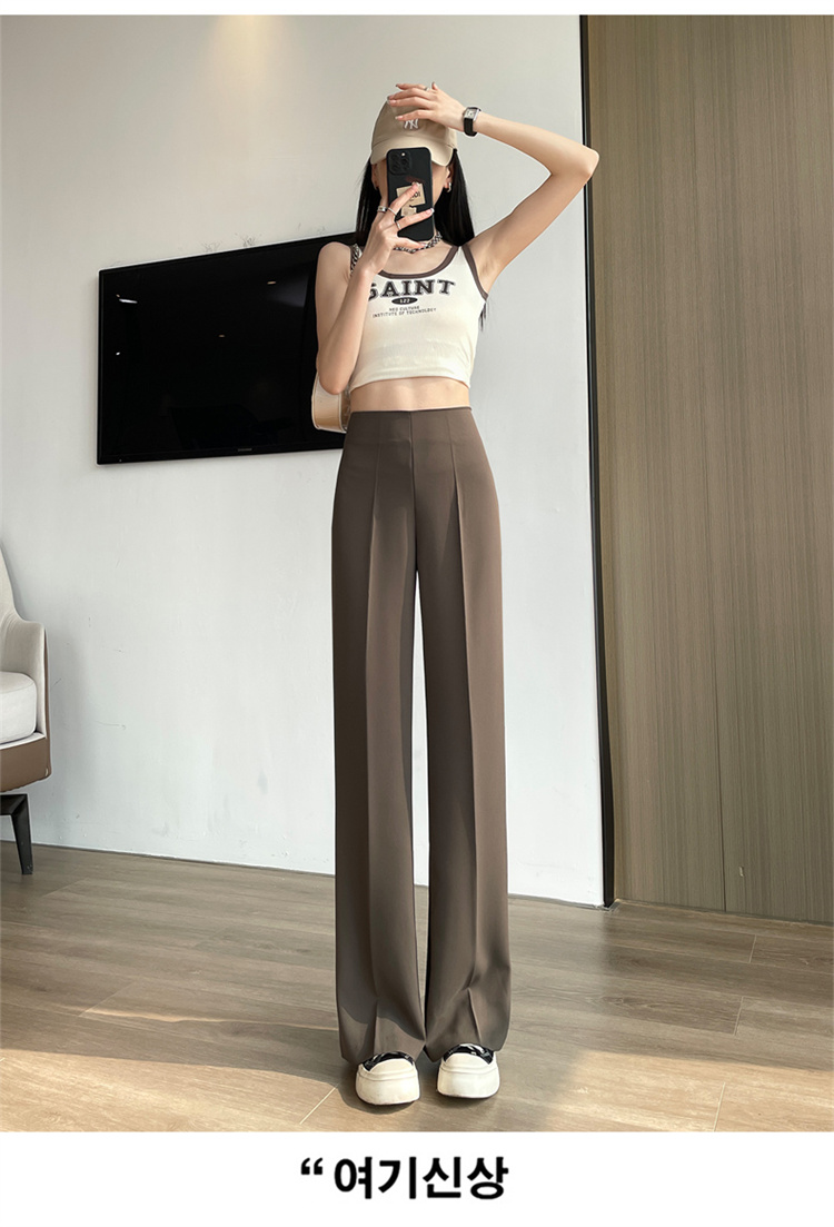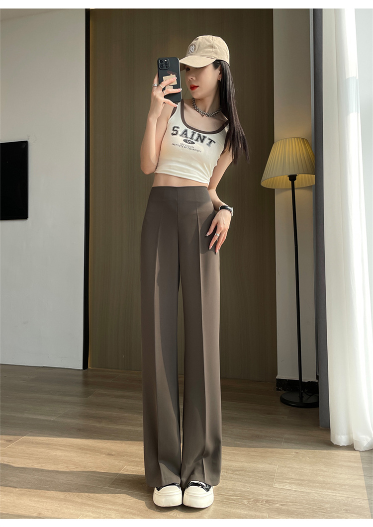 RM6582#夏季冰丝裤西装裤高腰窄版垂感直筒薄阔腿裤拖地裤女