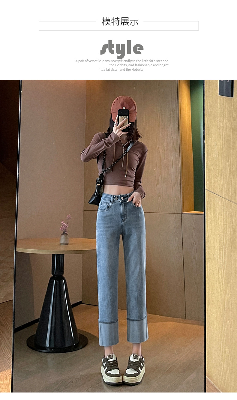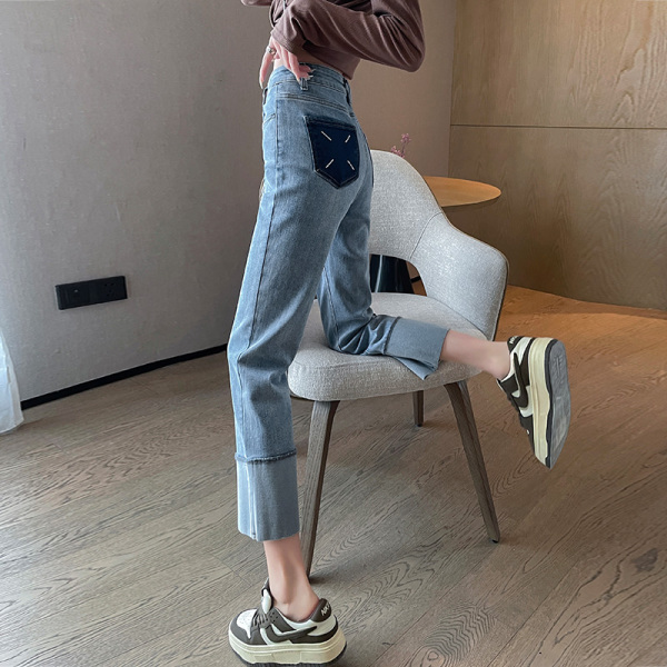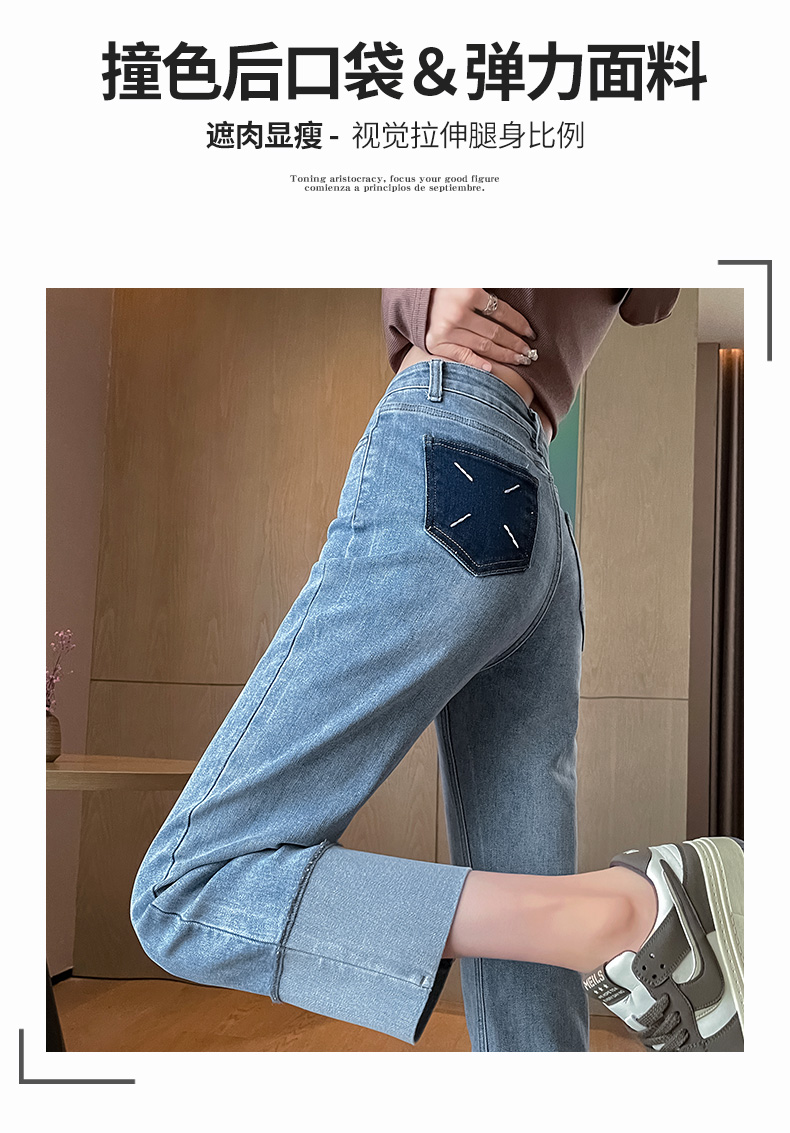 RM6626#窄版直筒牛仔裤女夏2023年新款高腰显瘦小个子九分烟管裤子