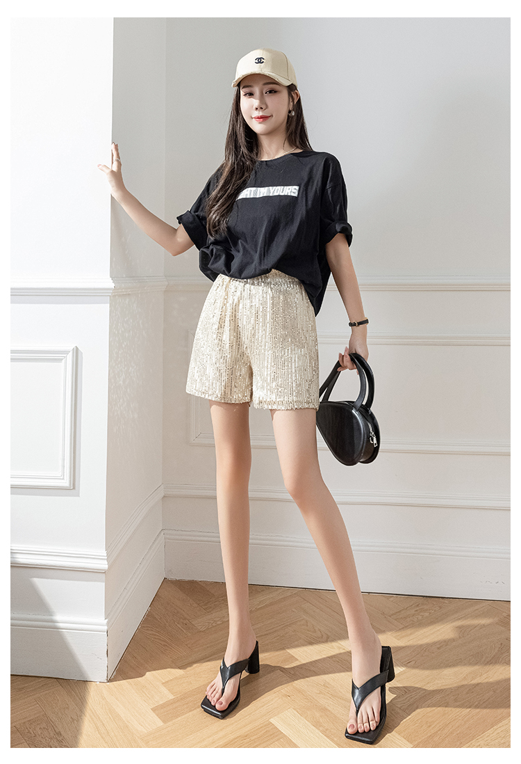 RM7060#舒适弹力腰百搭全身亮片阔腿短裤2023夏季新款女裤子休闲宽松