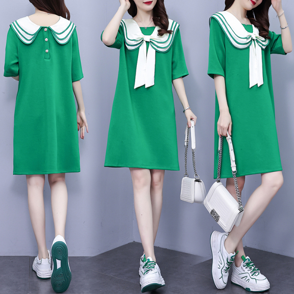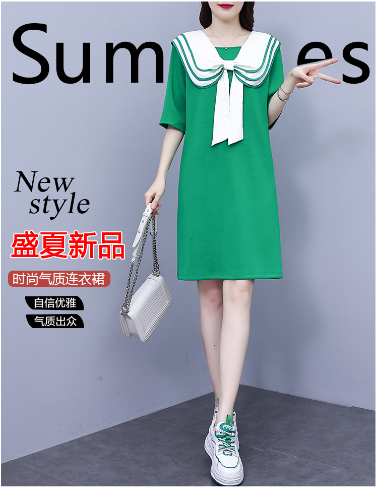 RM7134#高品质前后两穿翻领连衣裙2023新款夏季大码遮肉显瘦裙子