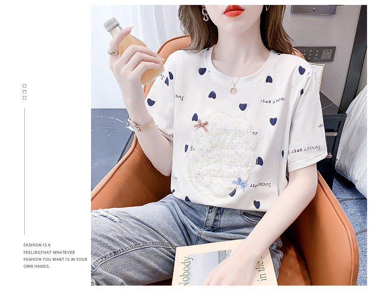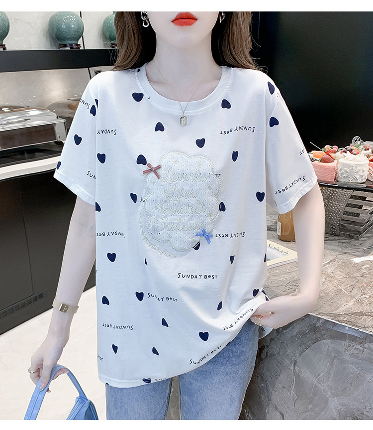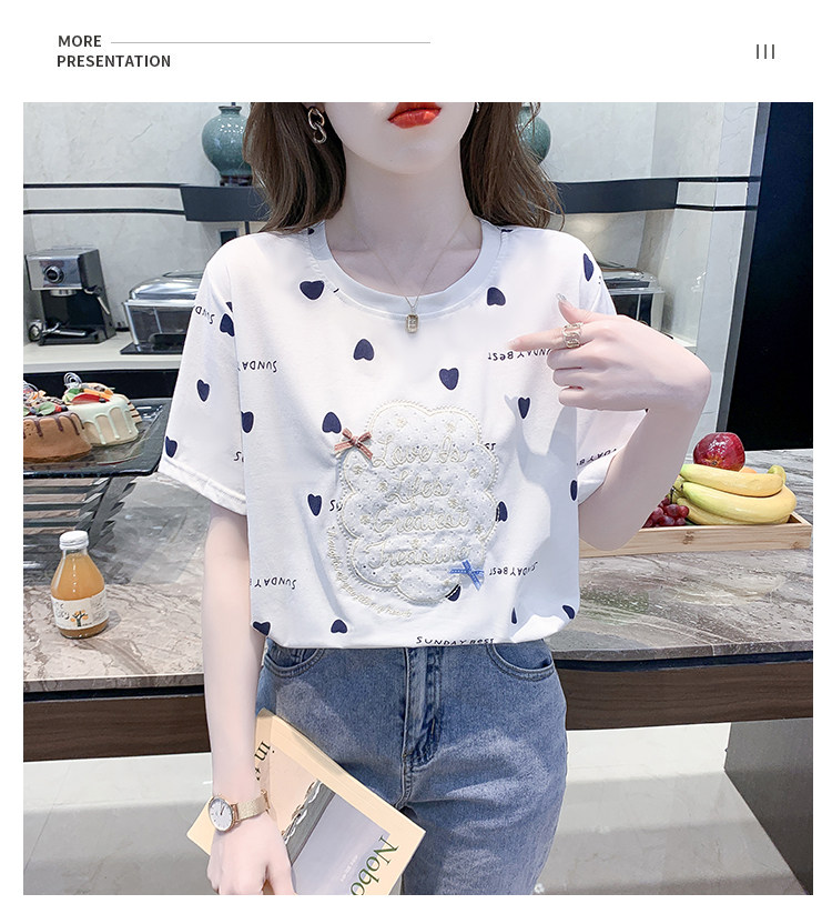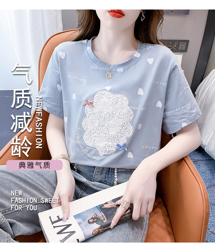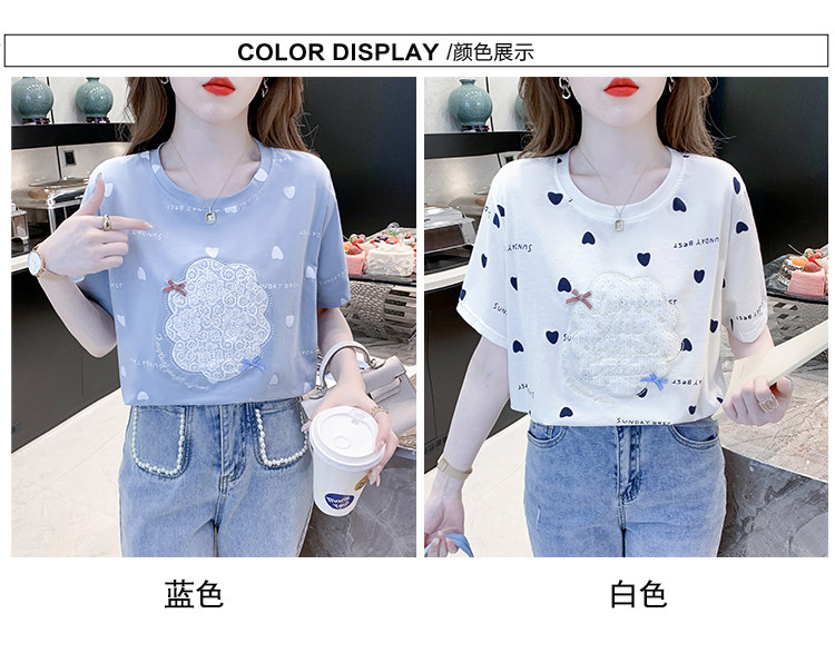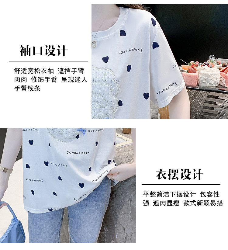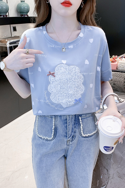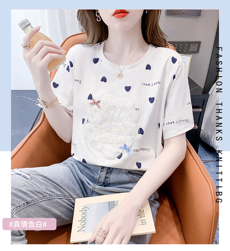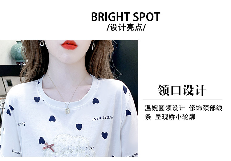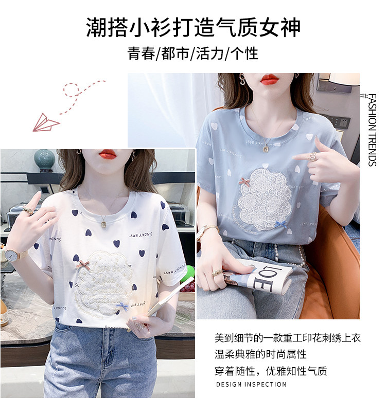 RM7248#纯棉短袖t恤女夏季女装2023年新品印花刺绣宽松半袖慵懒风衣