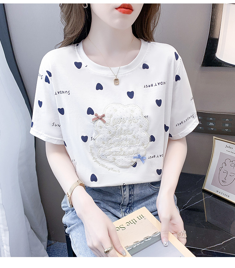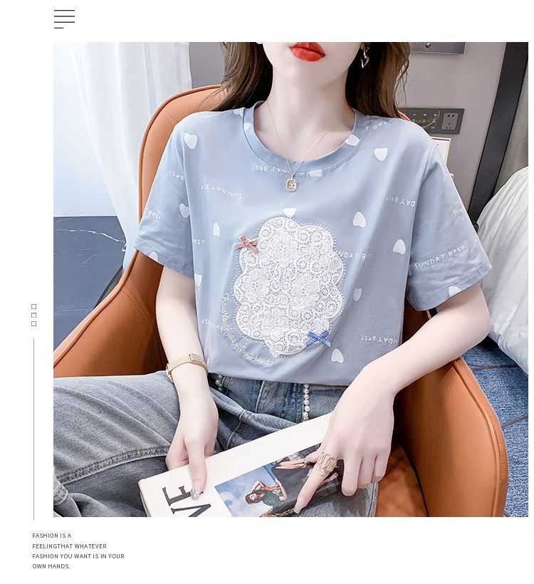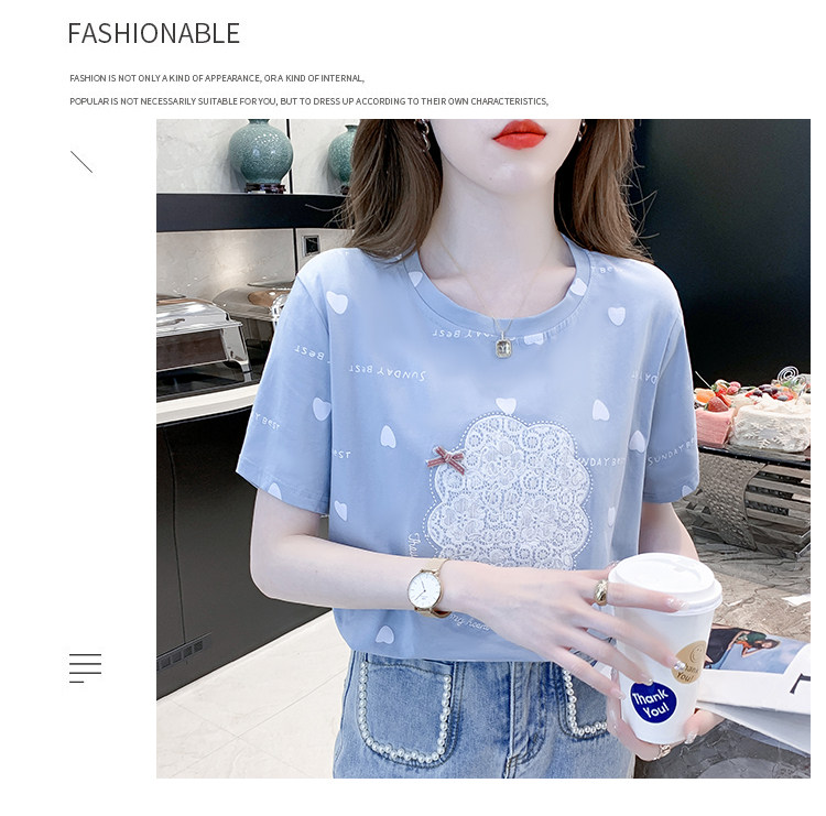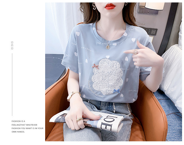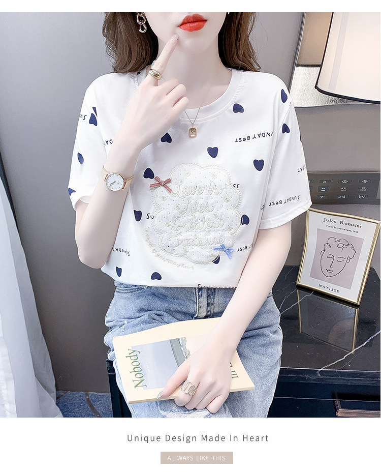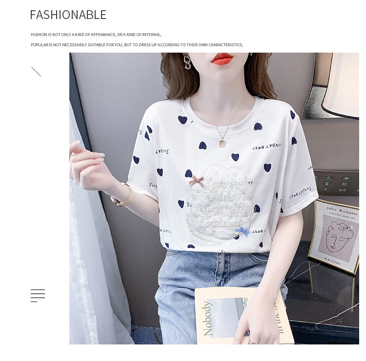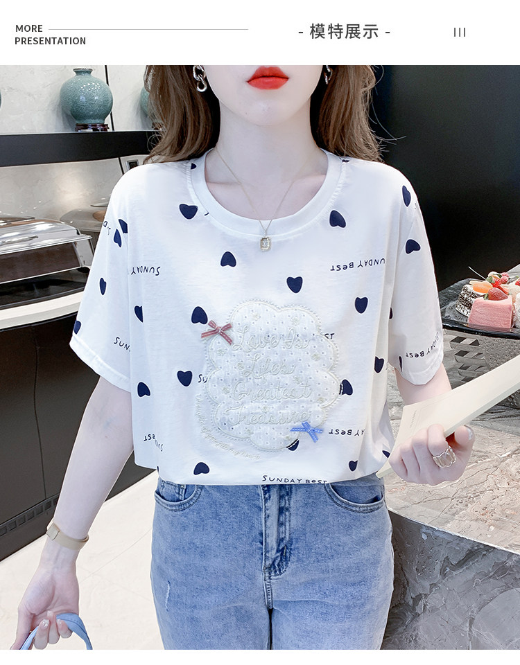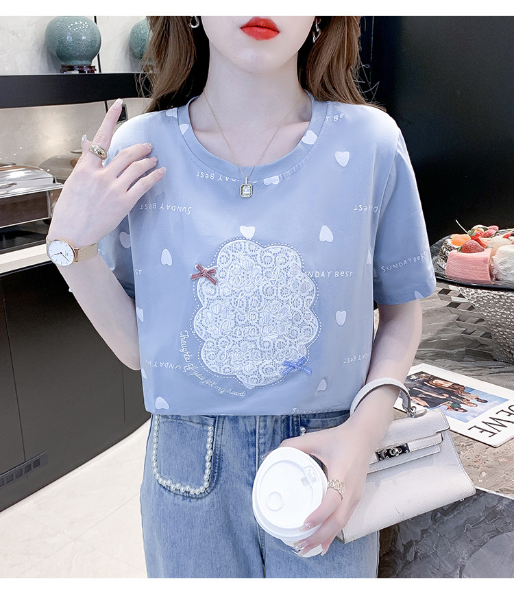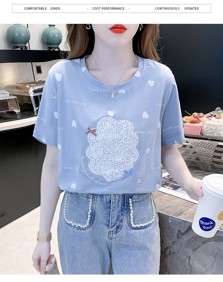 RM7248#纯棉短袖t恤女夏季女装2023年新品印花刺绣宽松半袖慵懒风衣