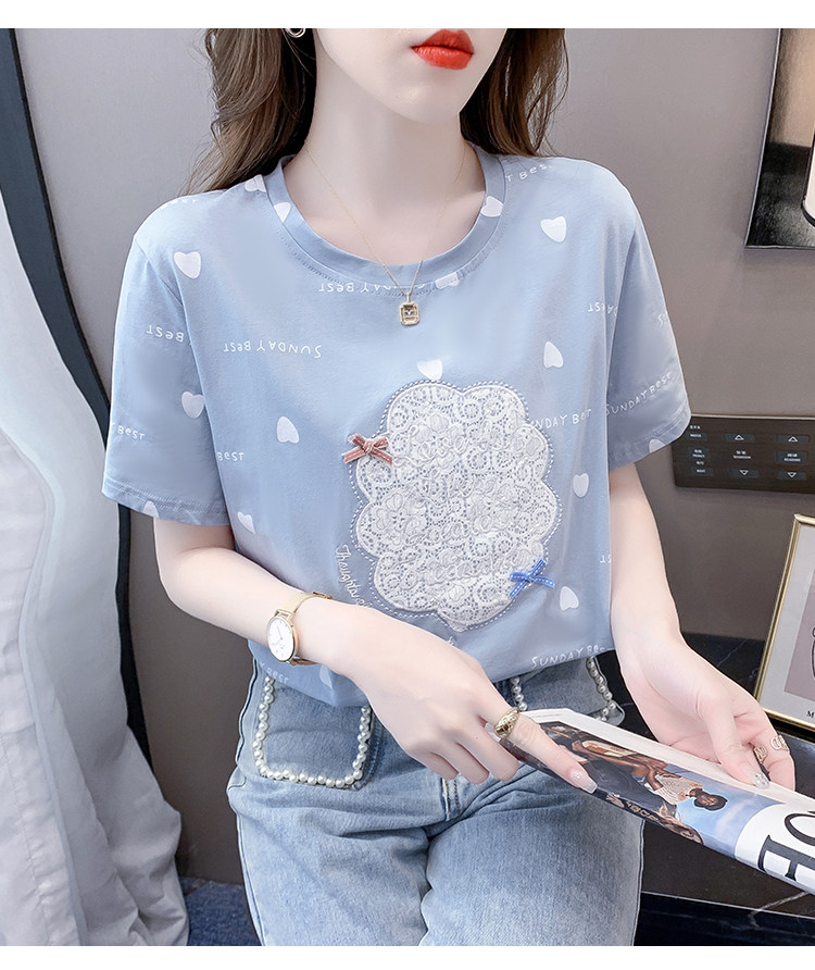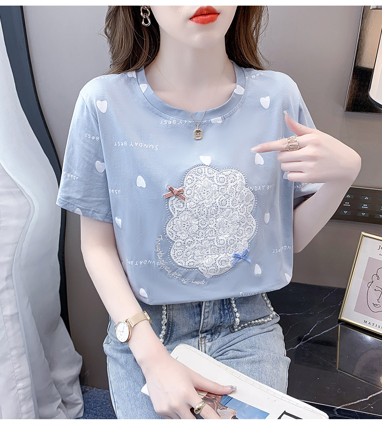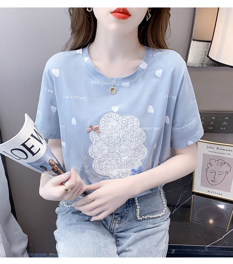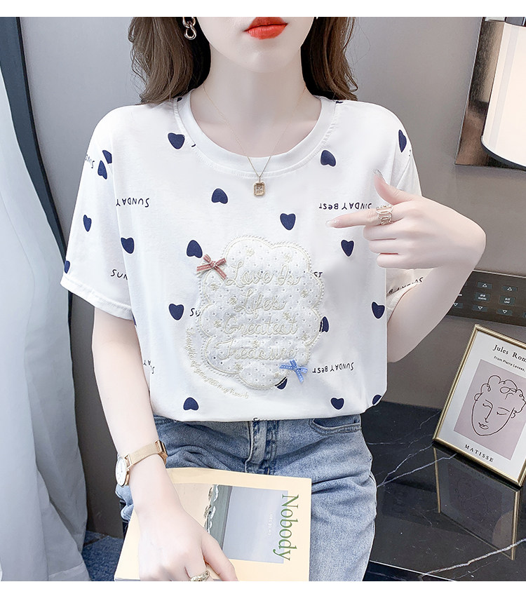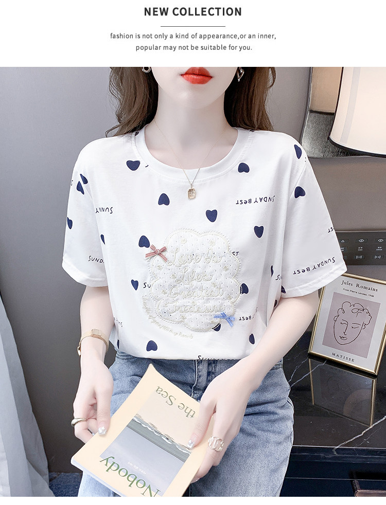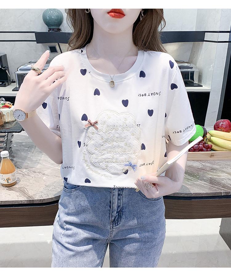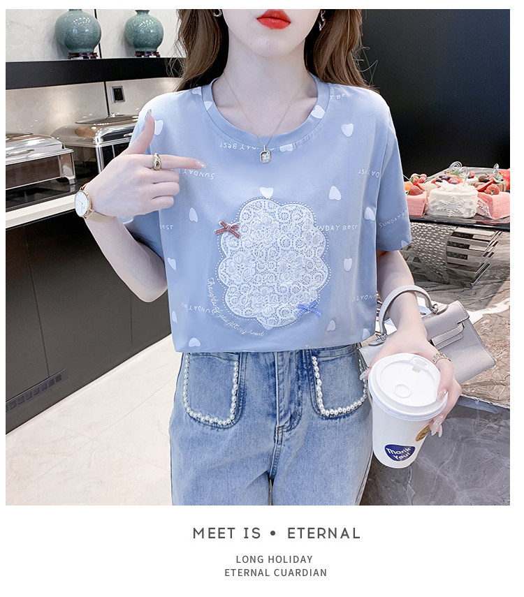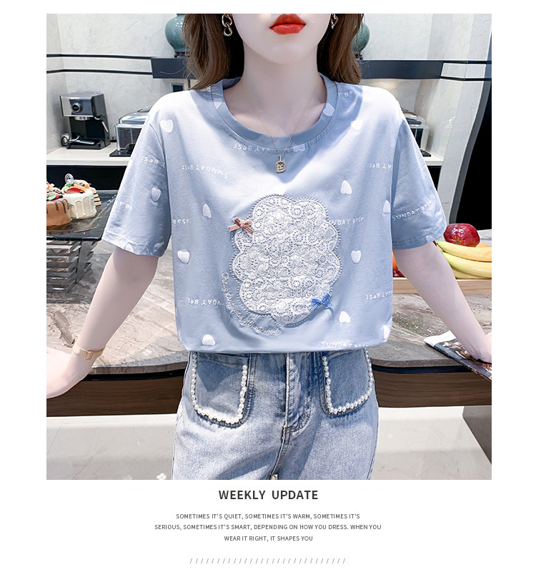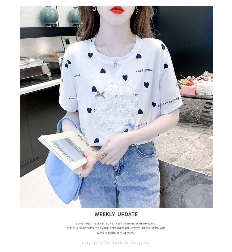 RM7248#纯棉短袖t恤女夏季女装2023年新品印花刺绣宽松半袖慵懒风衣