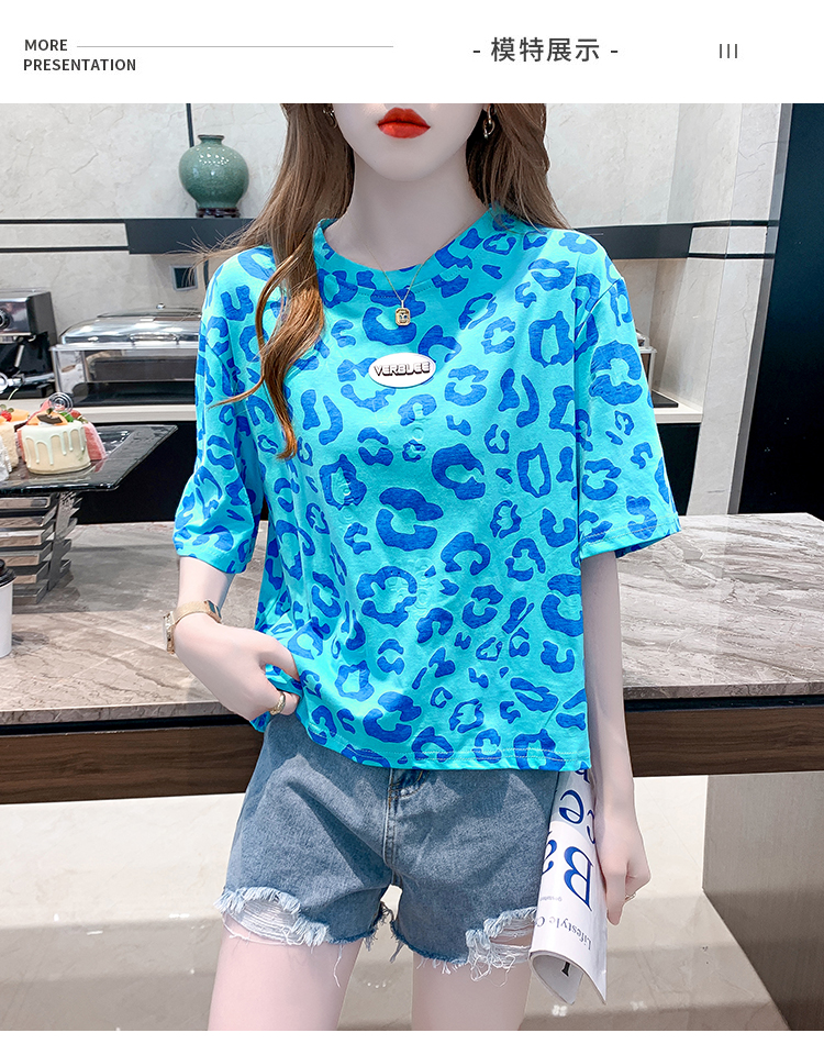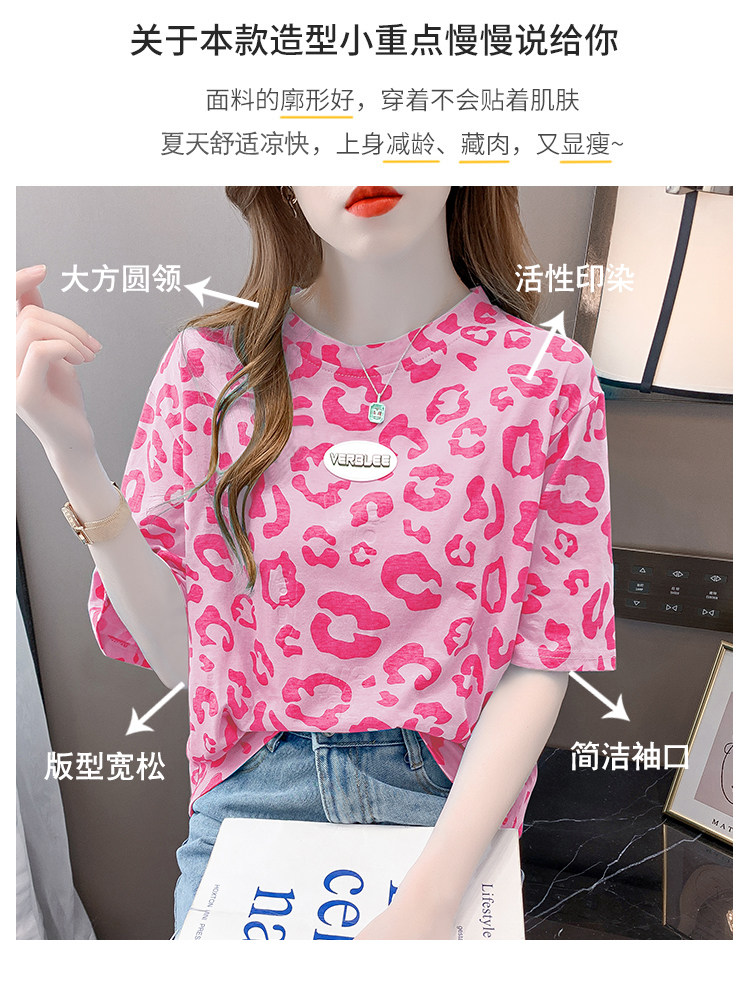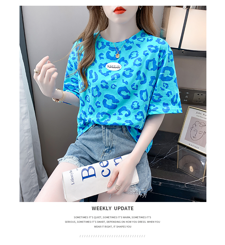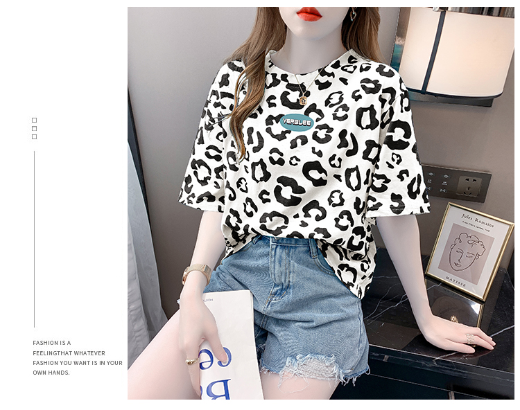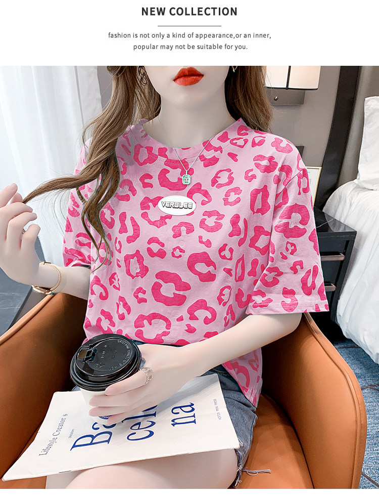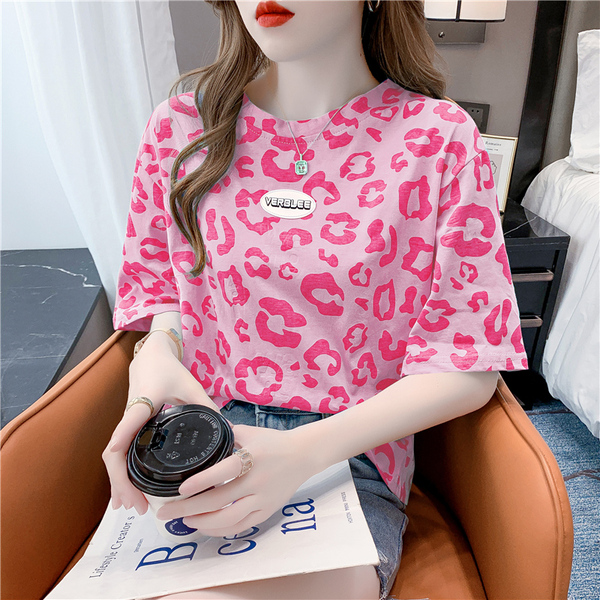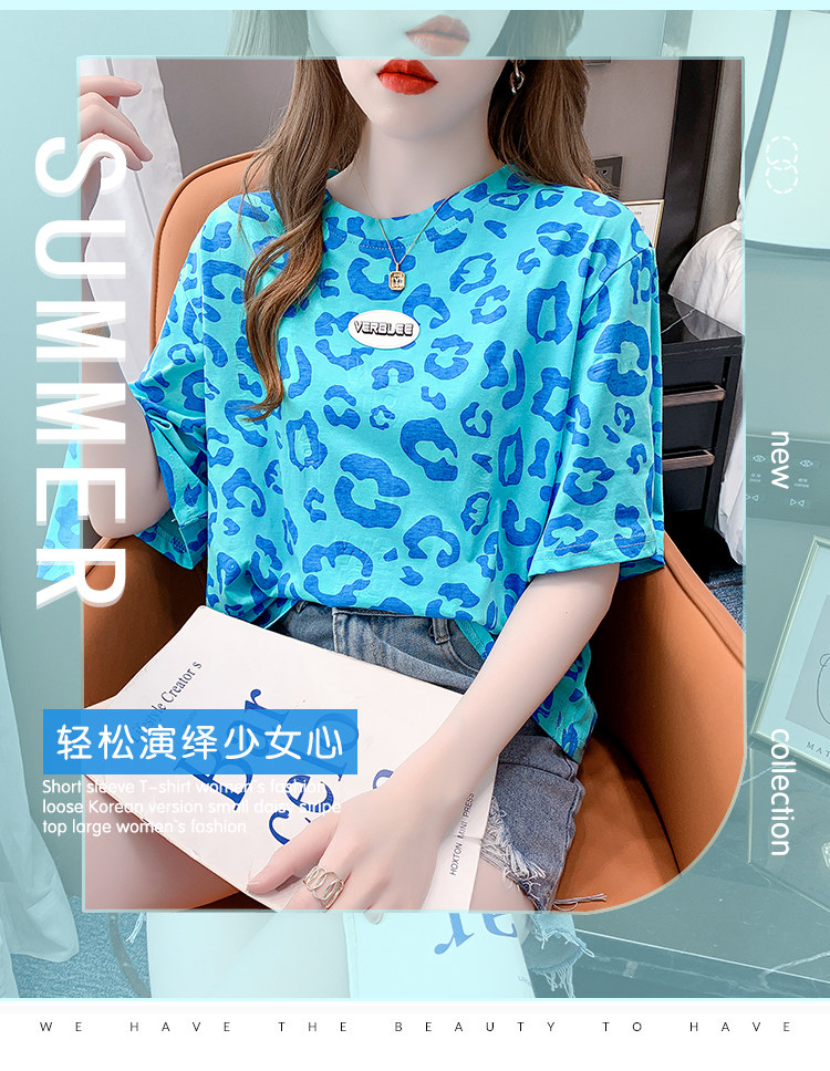 RM7249#豹纹印花短袖t恤女 夏季新款韩版ins设计感宽松洋气百搭上衣