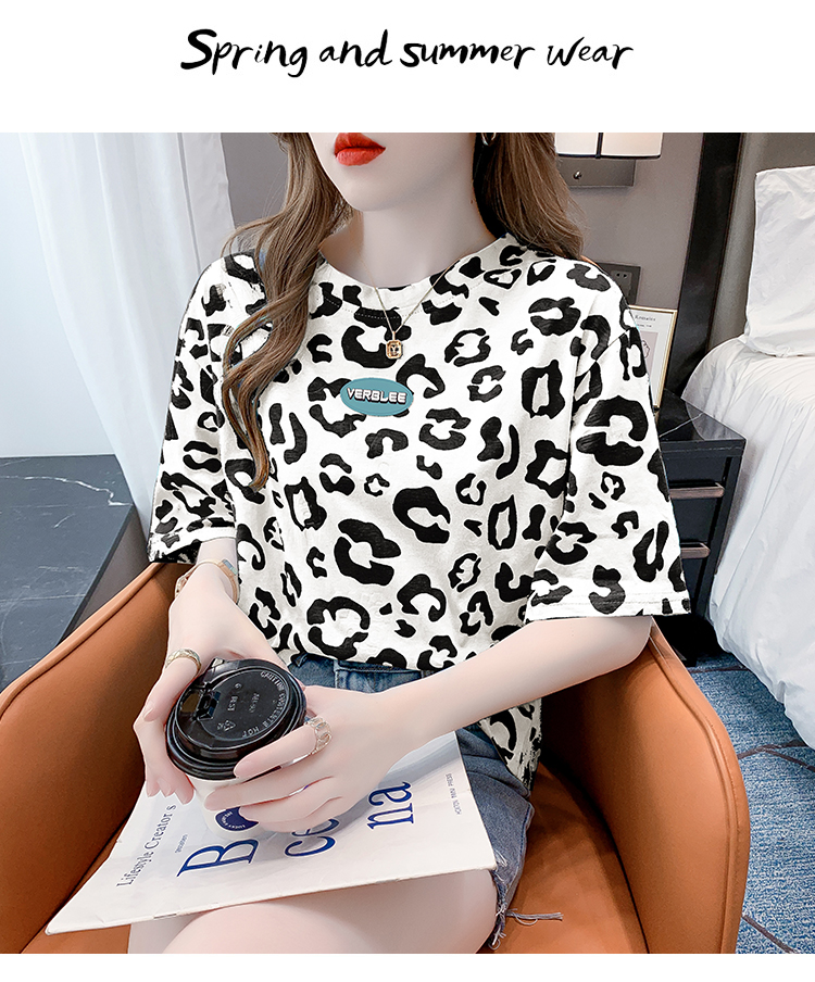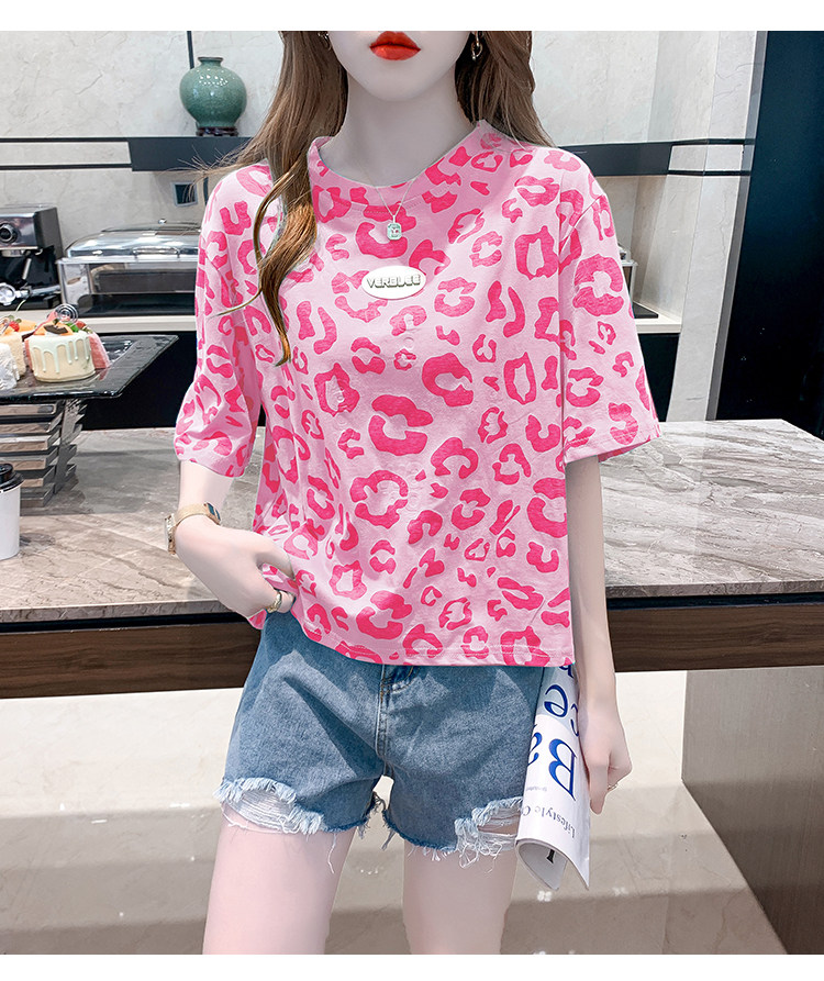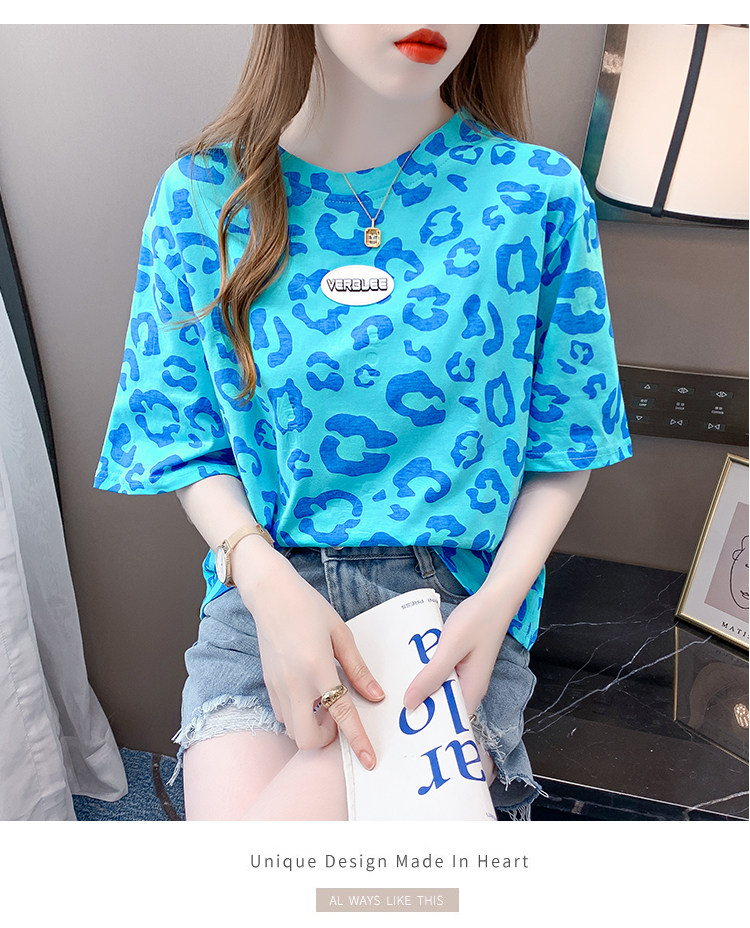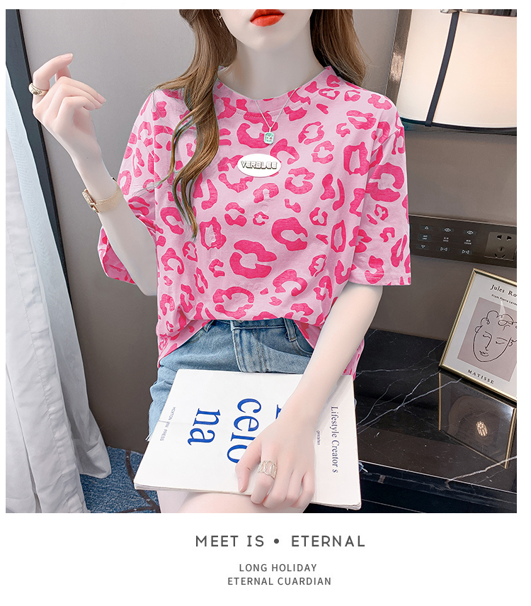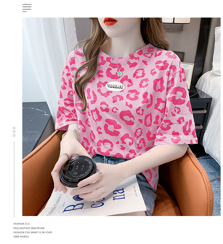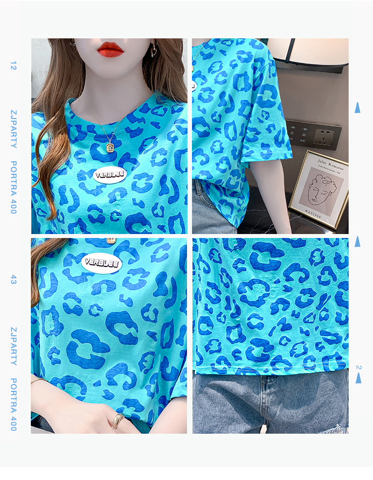 RM7249#豹纹印花短袖t恤女 夏季新款韩版ins设计感宽松洋气百搭上衣