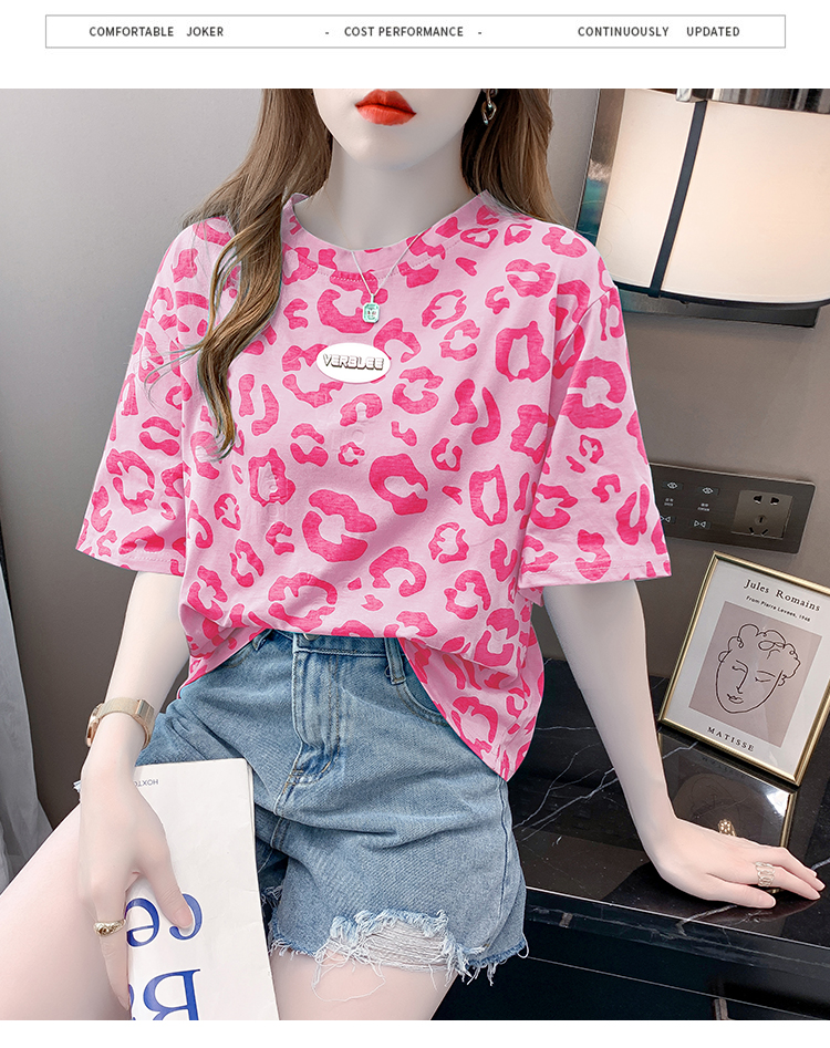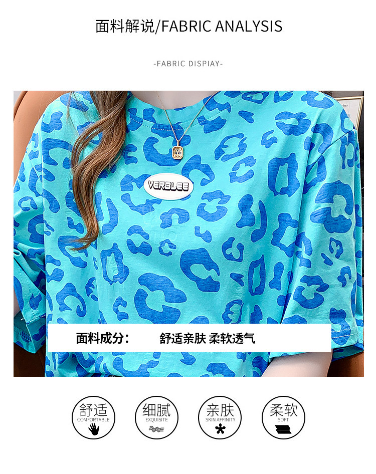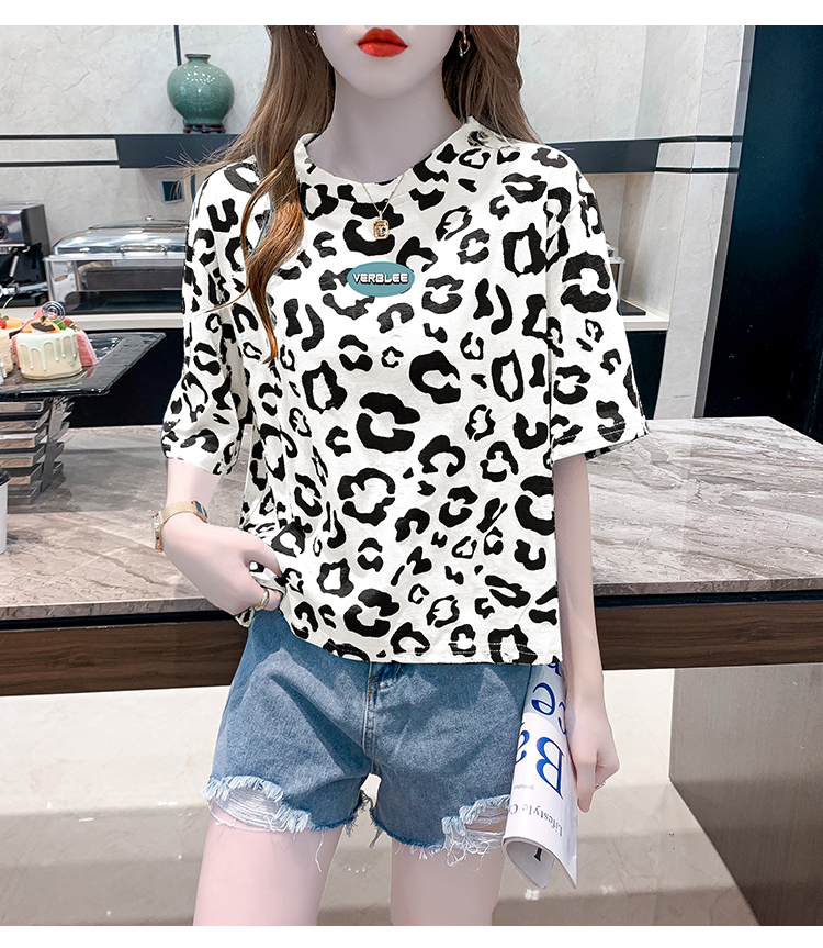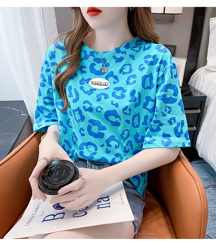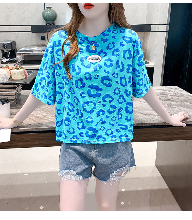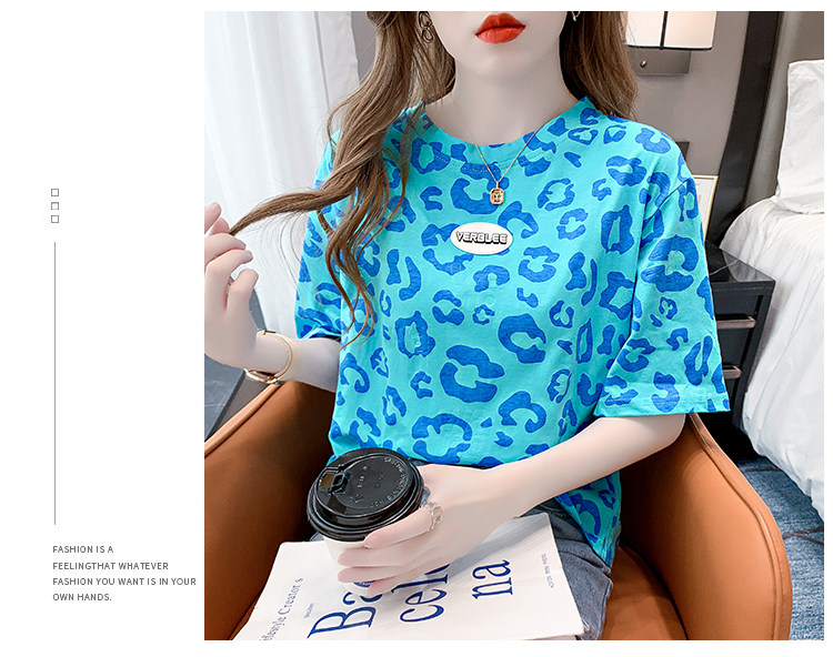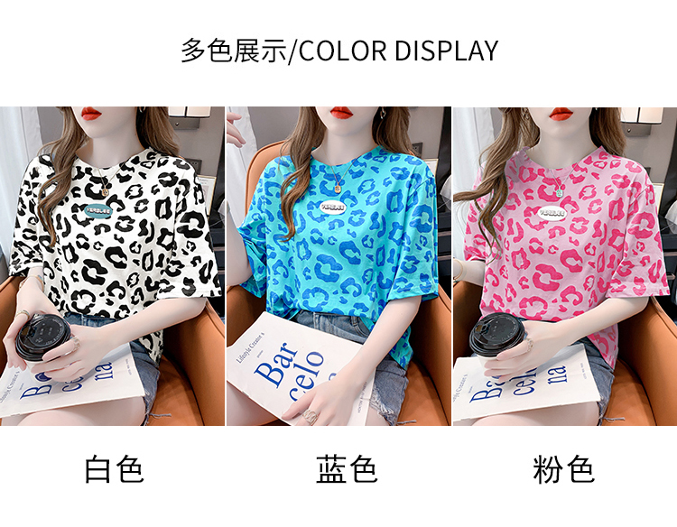 RM7249#豹纹印花短袖t恤女 夏季新款韩版ins设计感宽松洋气百搭上衣