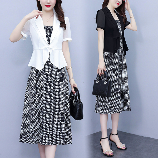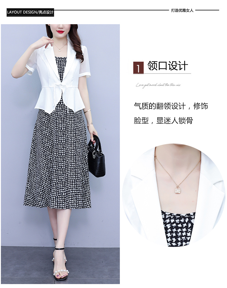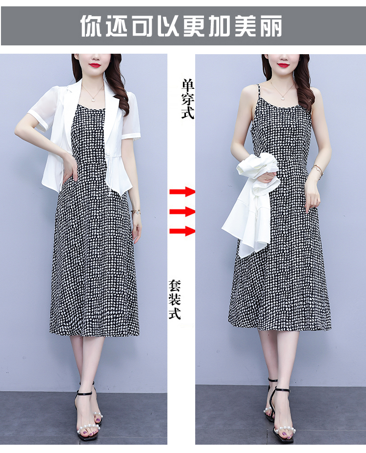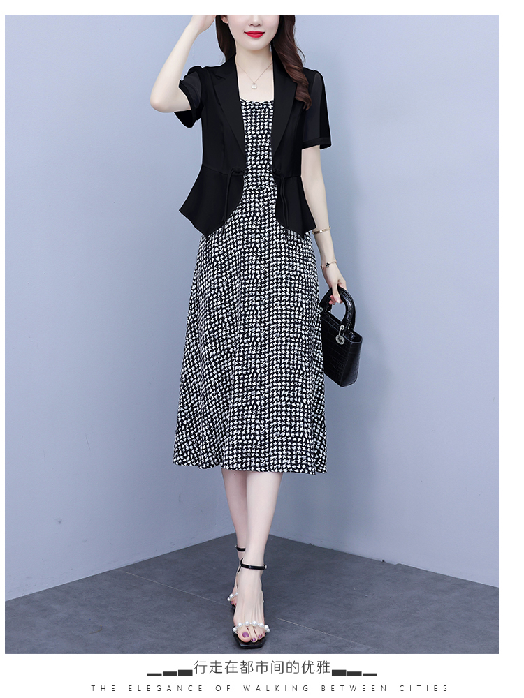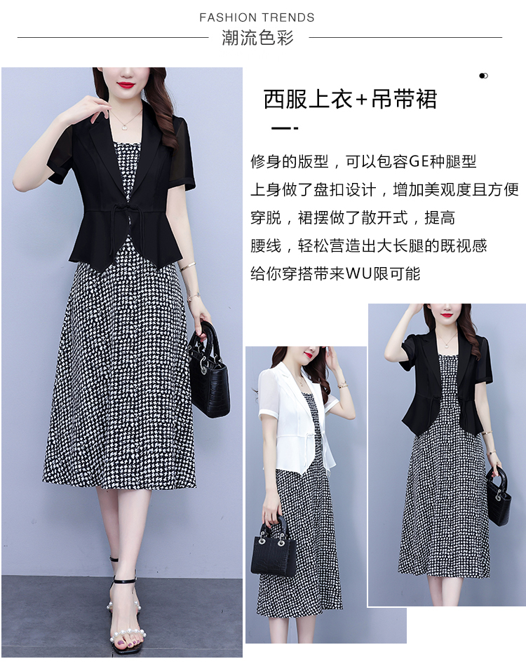 RM7363#大码女装西服女2023夏季新款气质两件套垂感显瘦吊带连衣裙