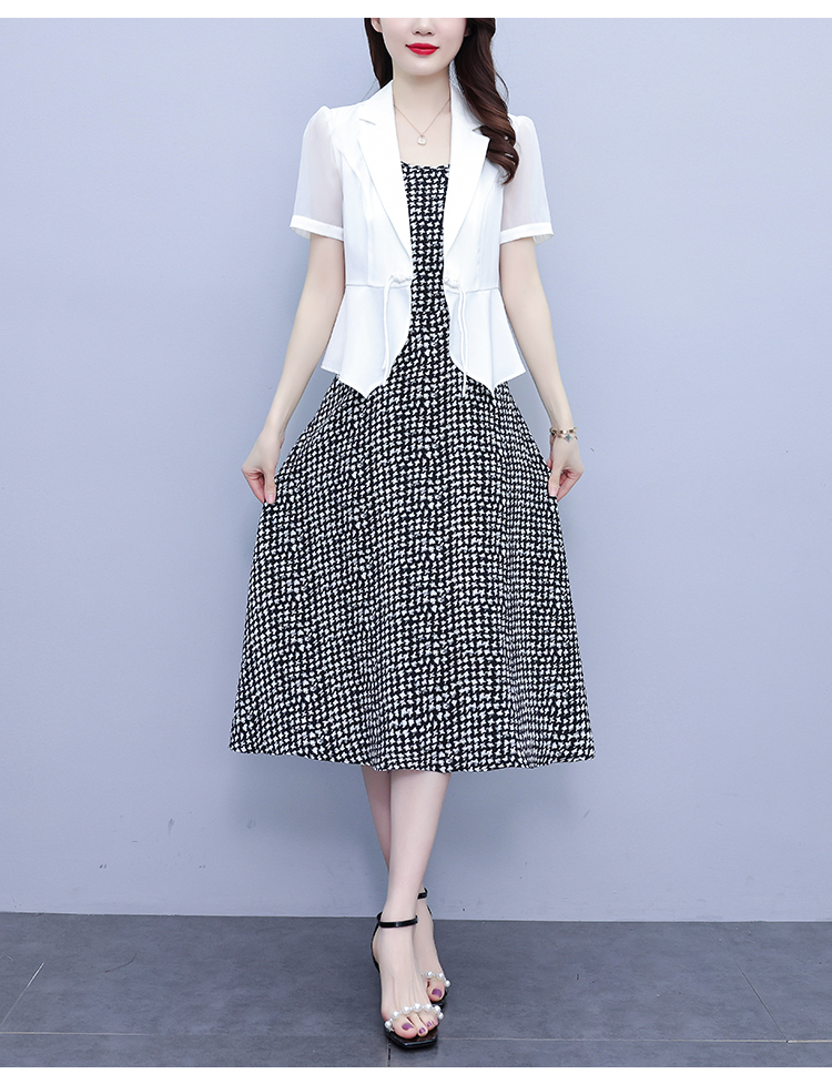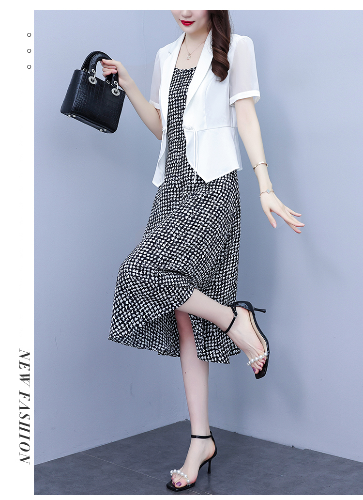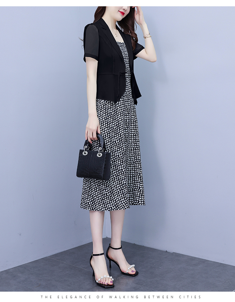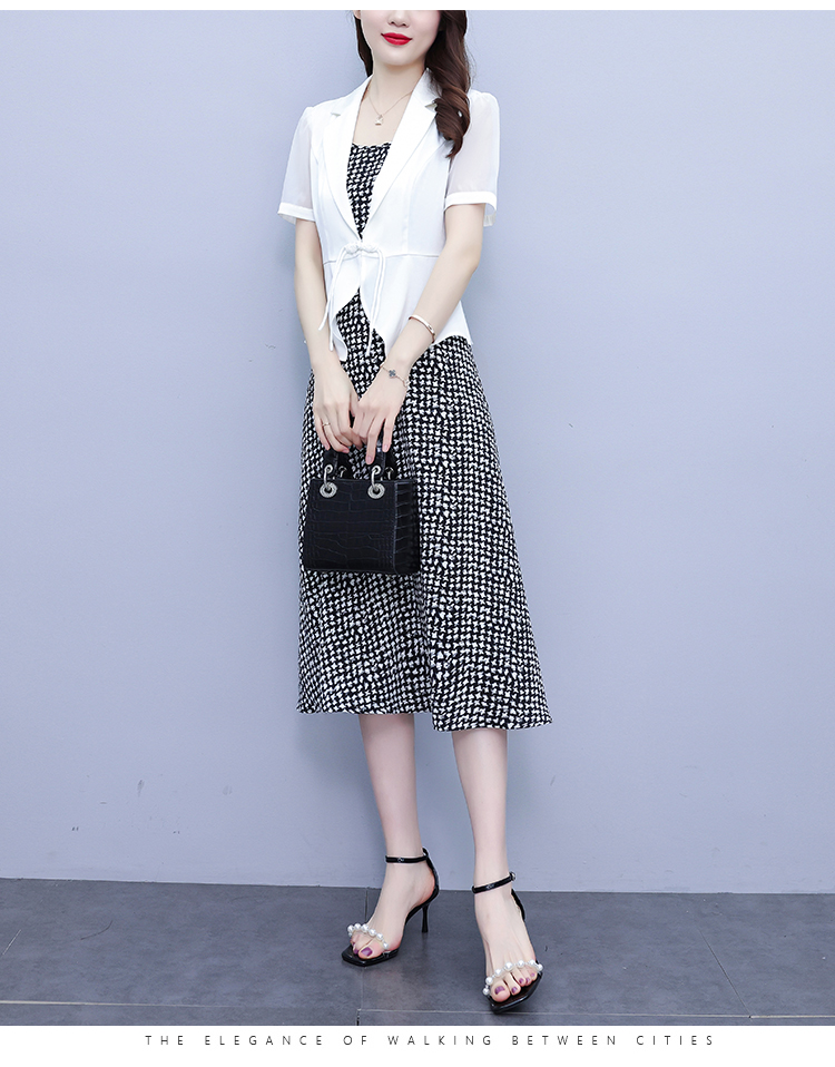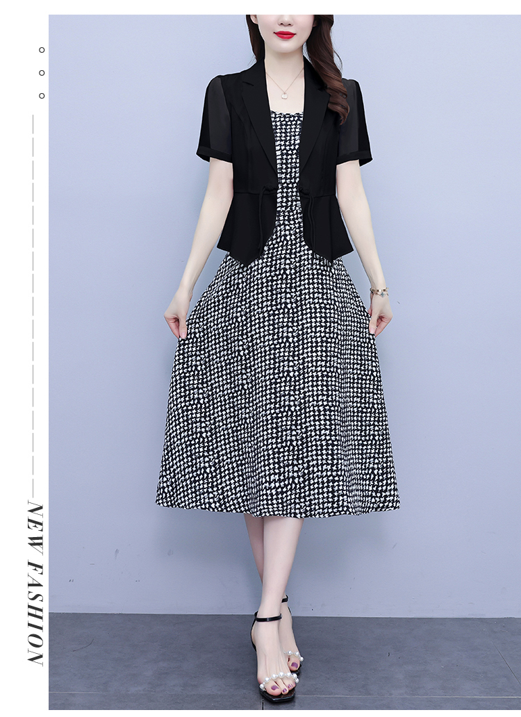 RM7363#大码女装西服女2023夏季新款气质两件套垂感显瘦吊带连衣裙
