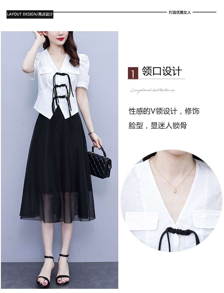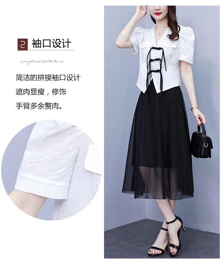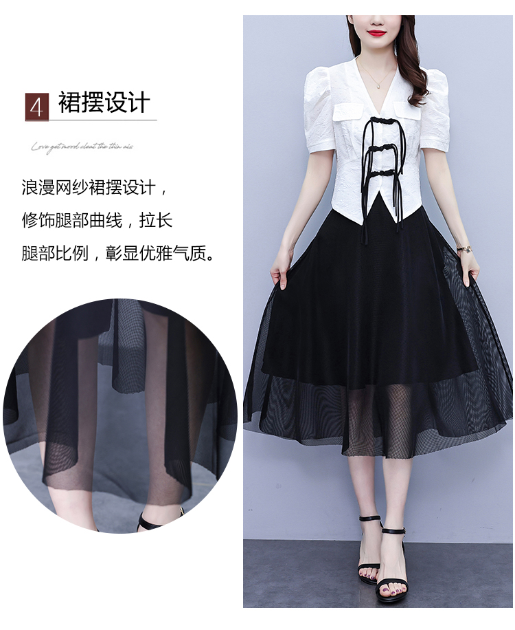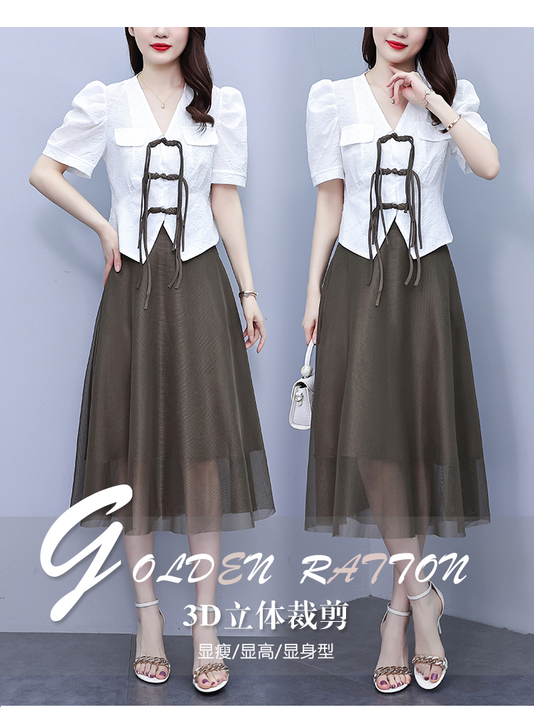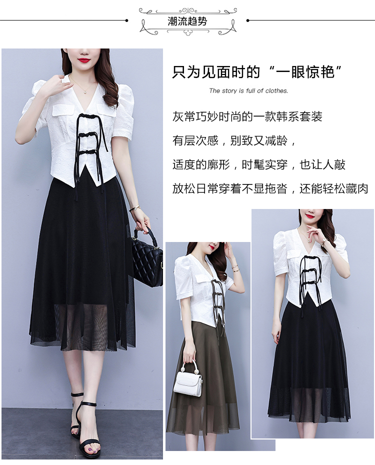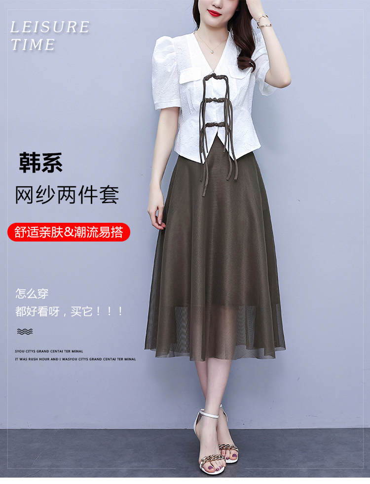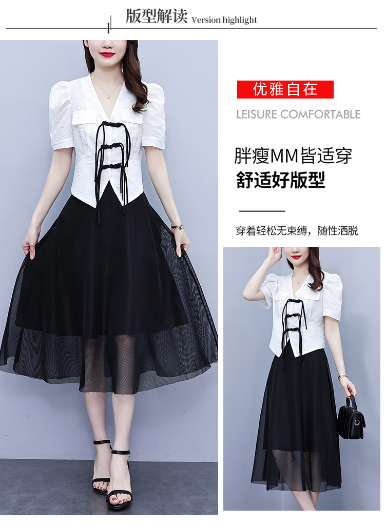 RM7364#夏季大码女装复古显瘦西服+仙气网纱吊带连衣裙两件套装