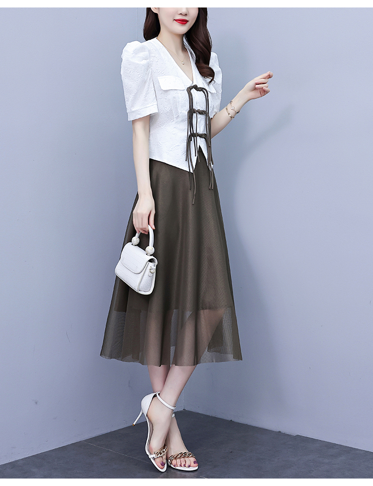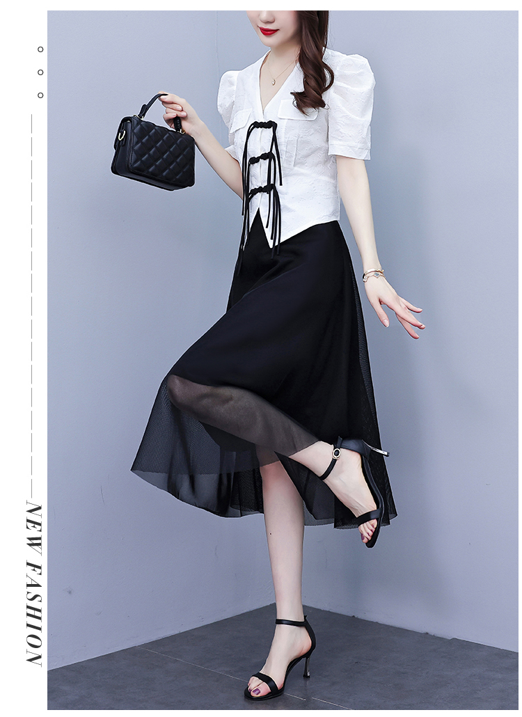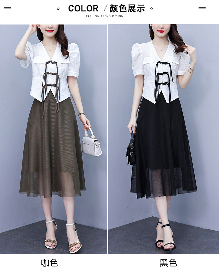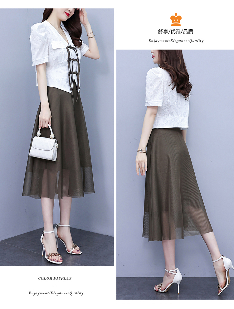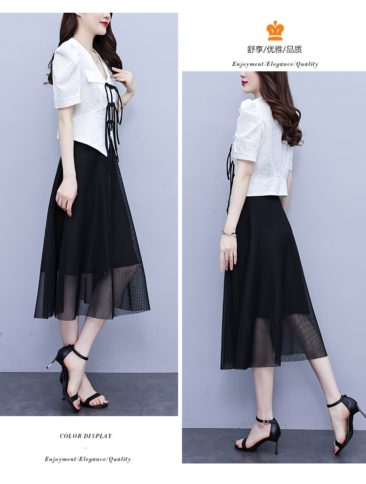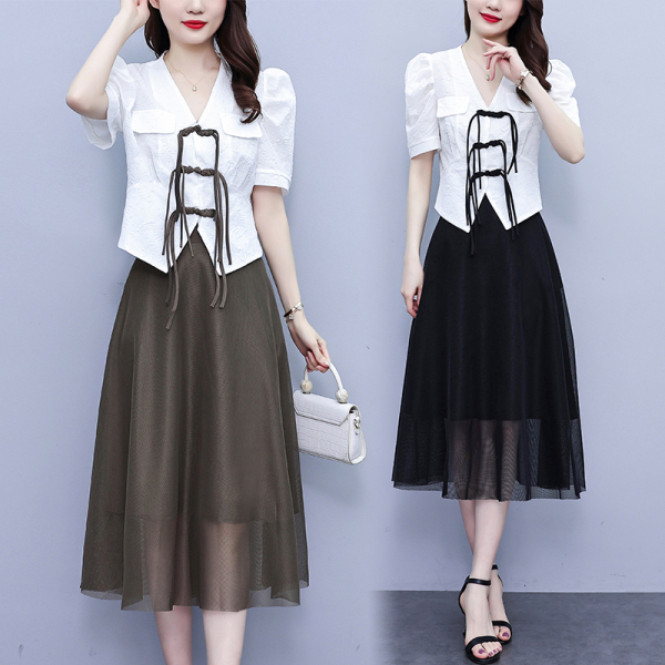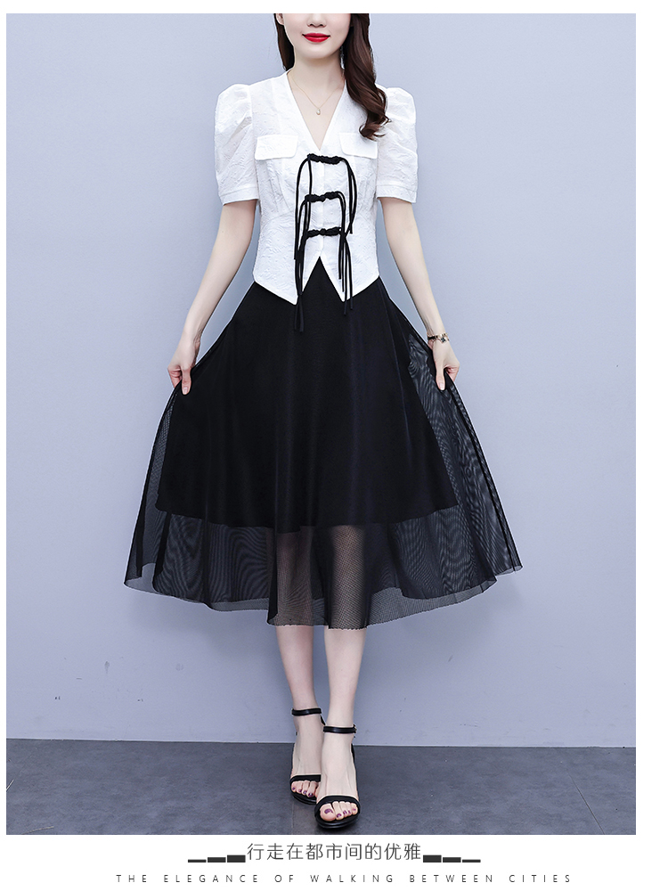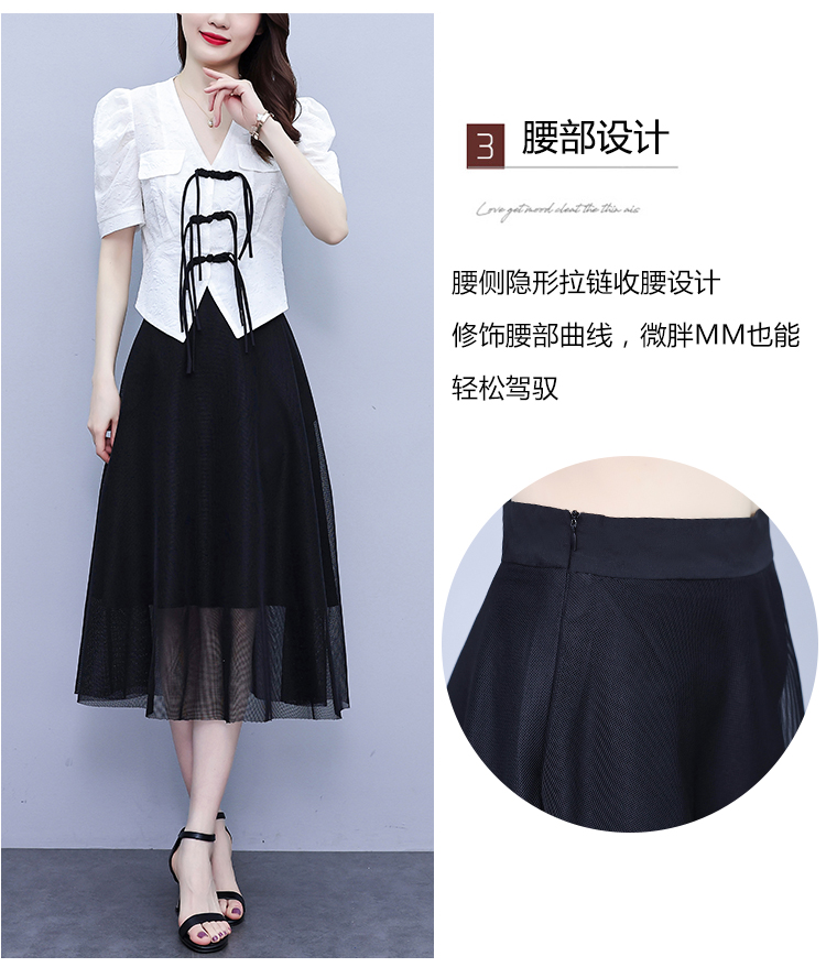 RM7364#夏季大码女装复古显瘦西服+仙气网纱吊带连衣裙两件套装