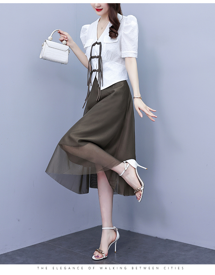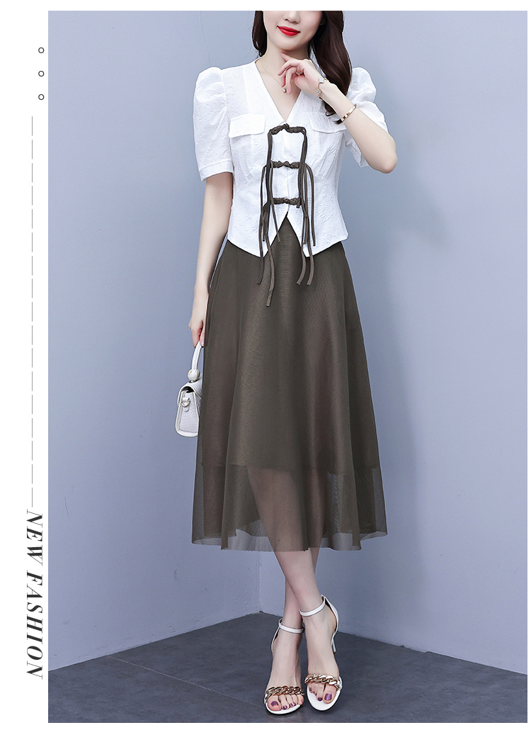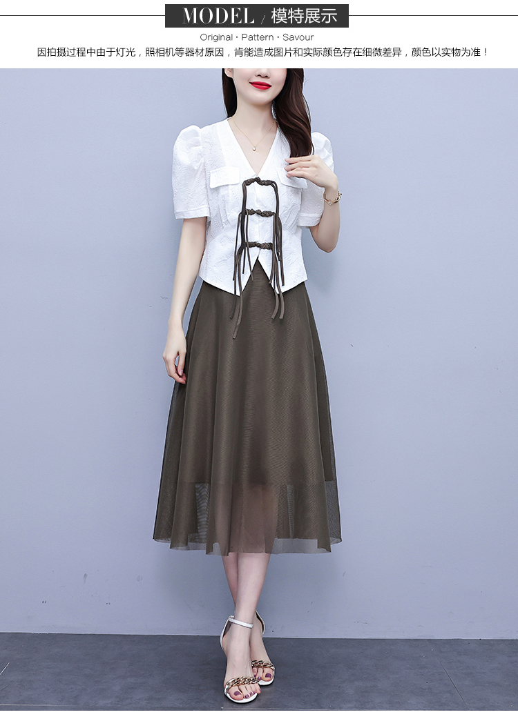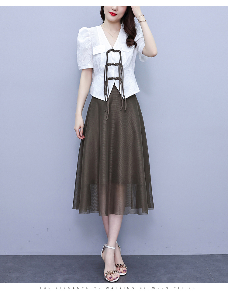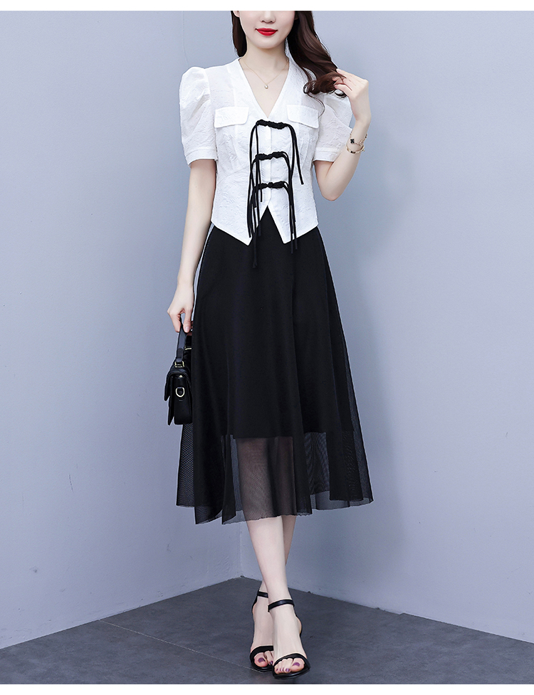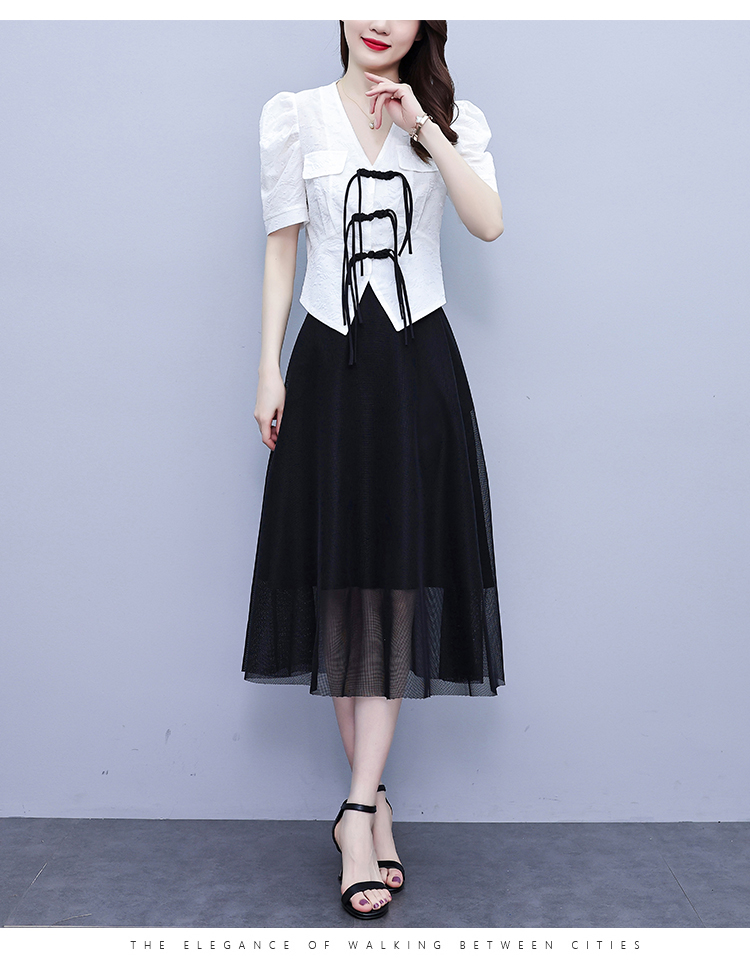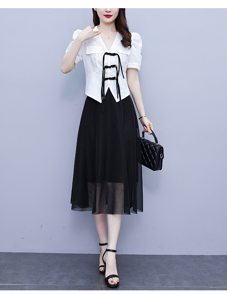RM7364#夏季大码女装复古显瘦西服+仙气网纱吊带连衣裙两件套装