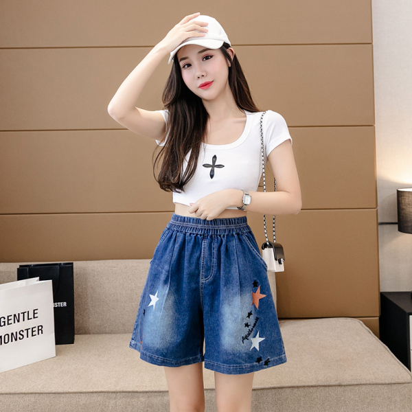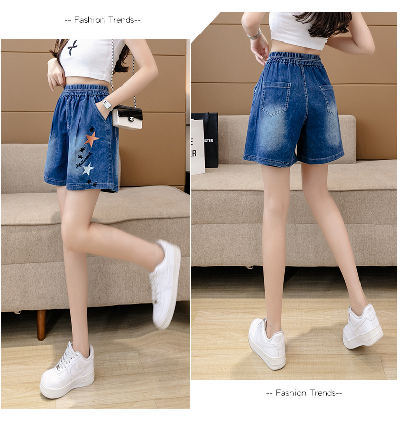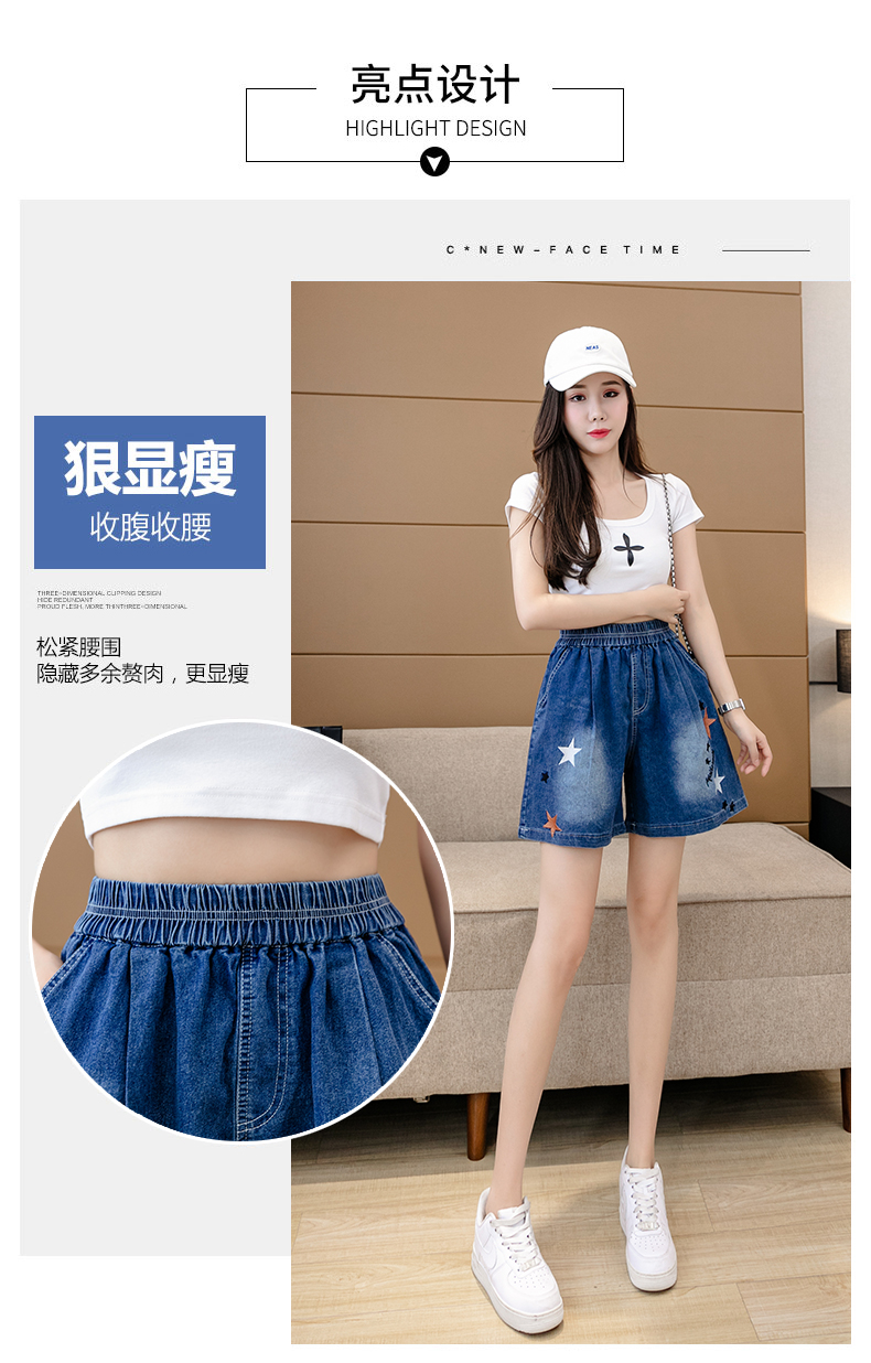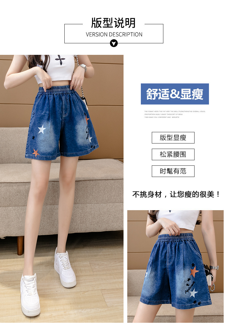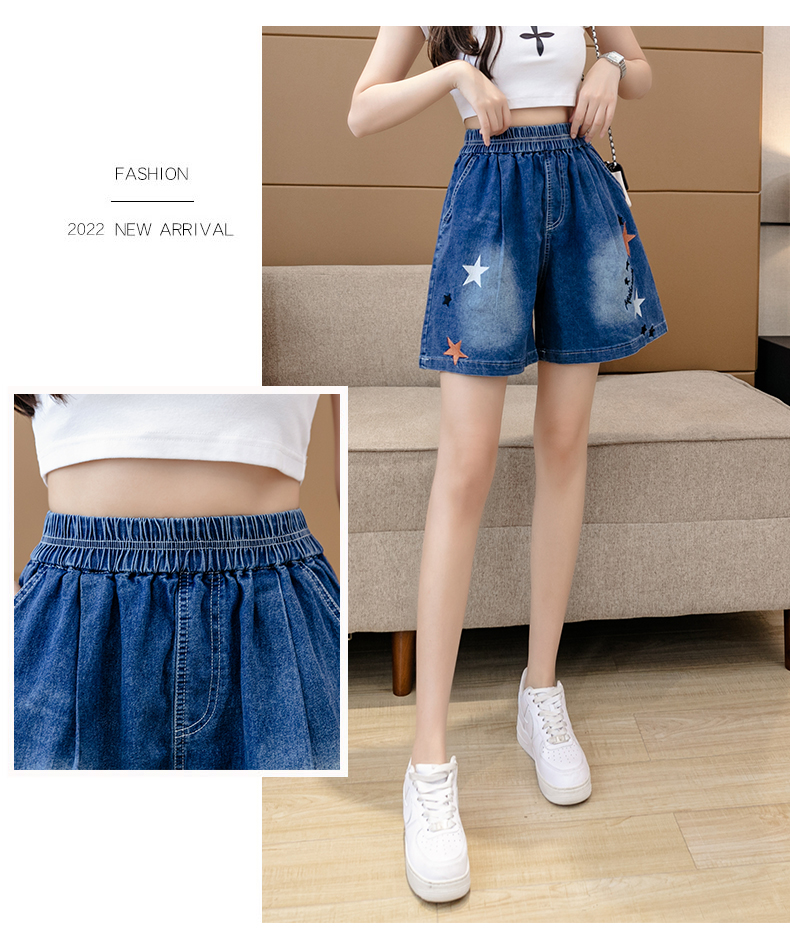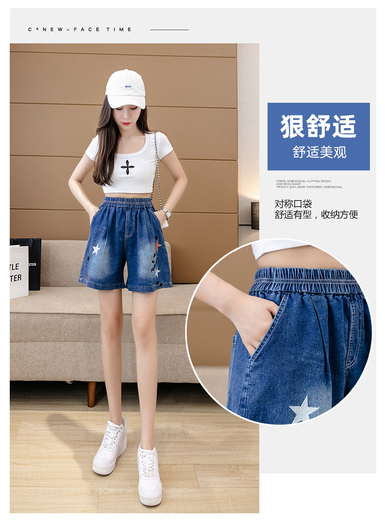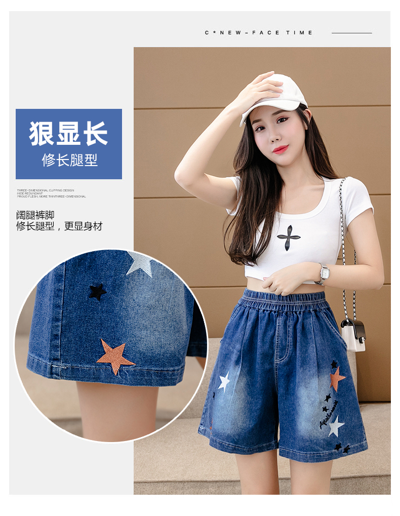 RM7342#刺绣星星牛仔短裤女2023夏季百搭时尚高腰休闲宽松阔腿裤