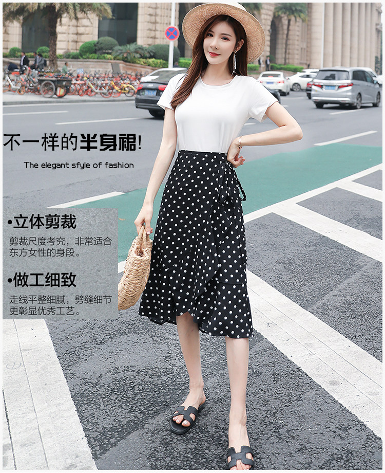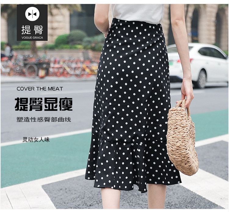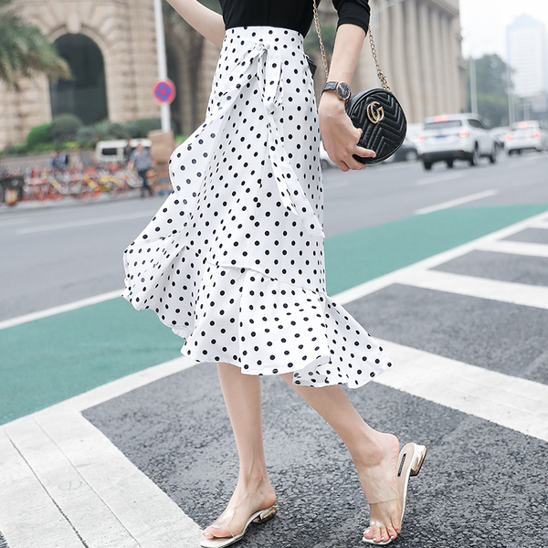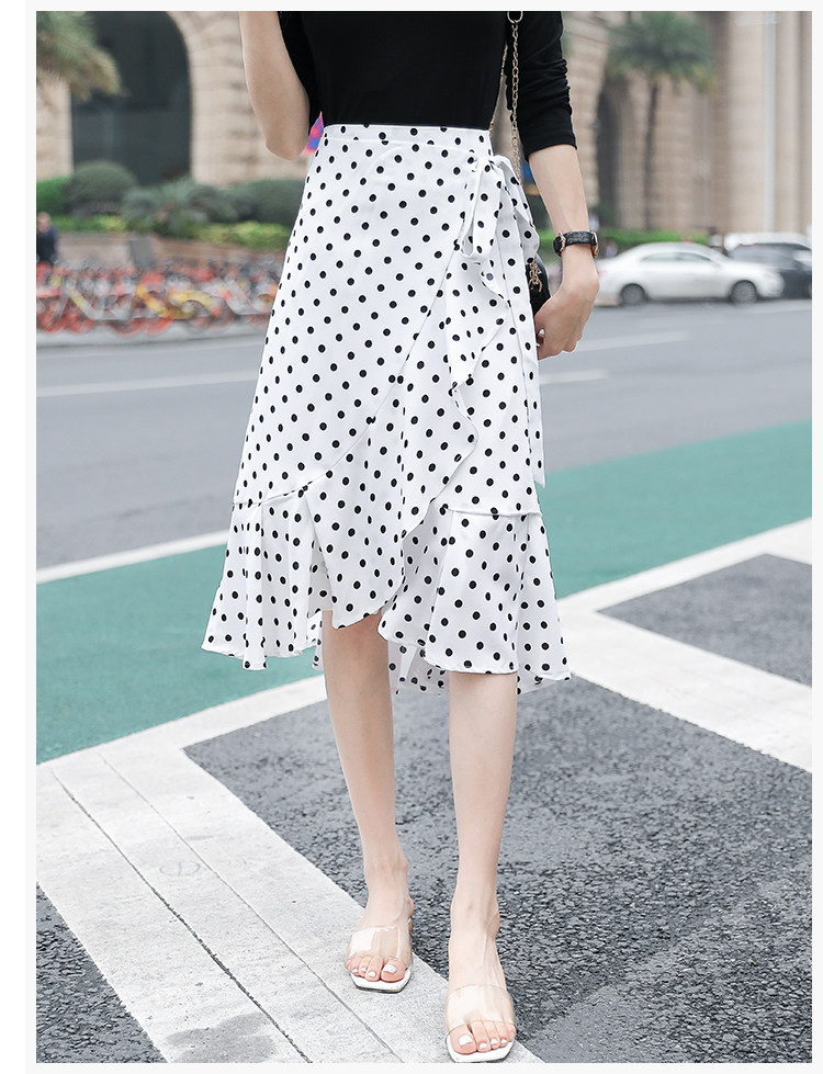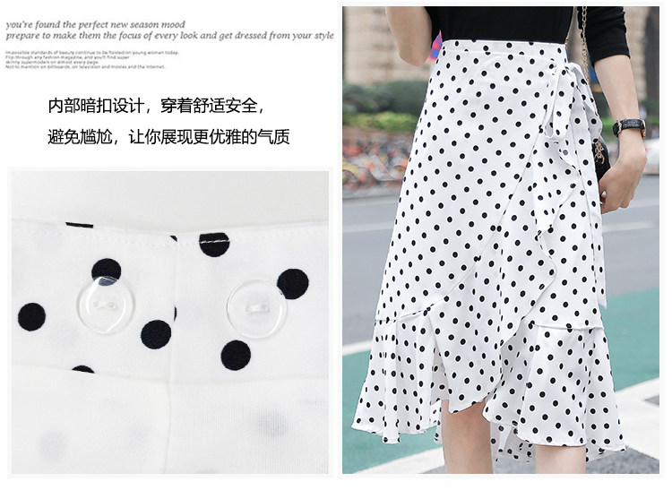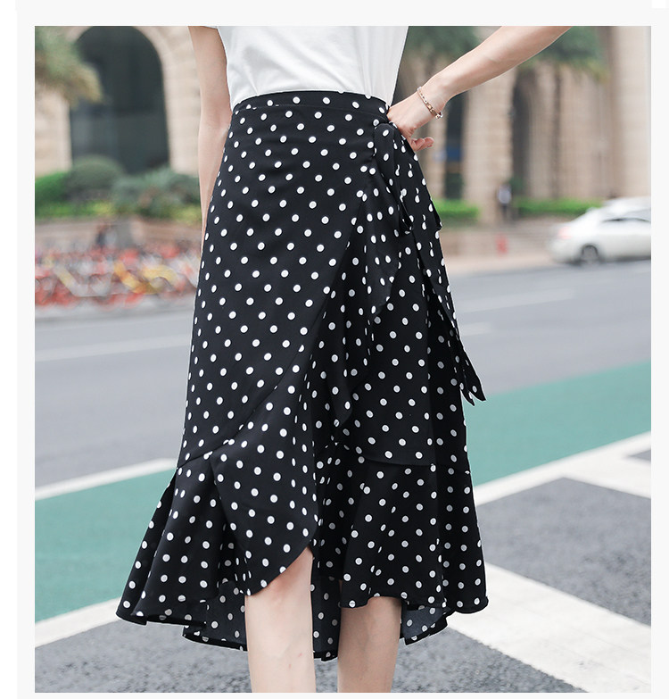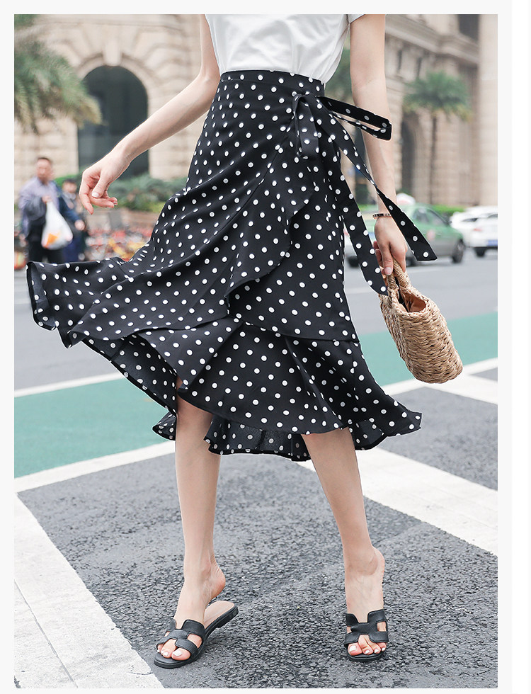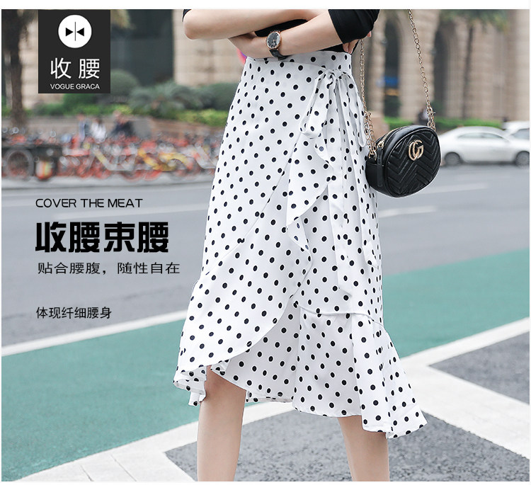 RM7346#夏季波点印花半身裙百搭一片式系带裹裙中长款鱼尾裙