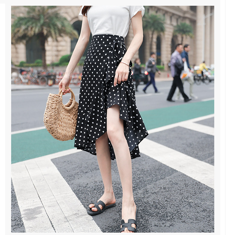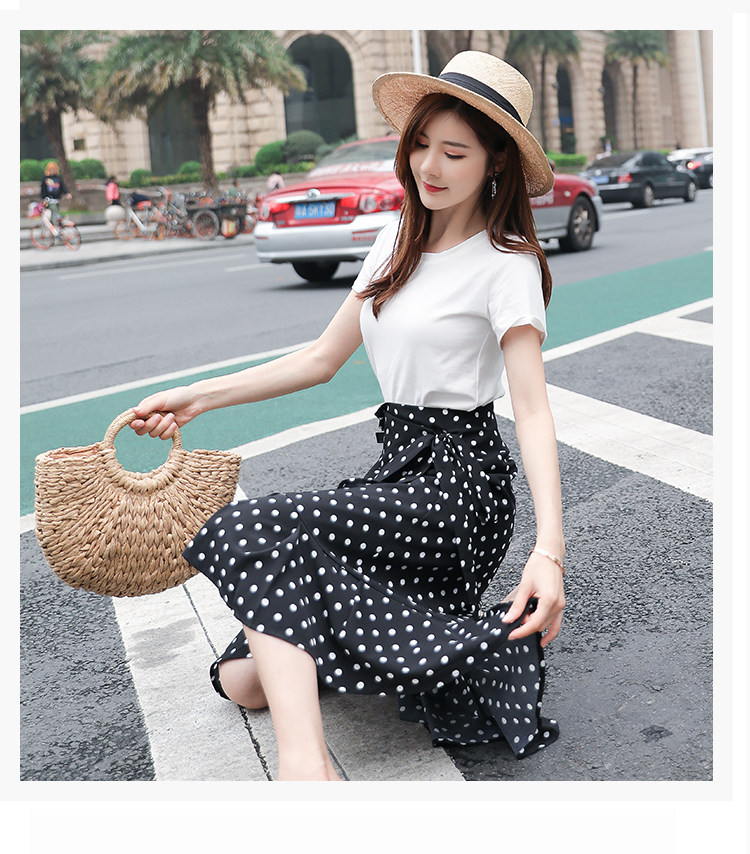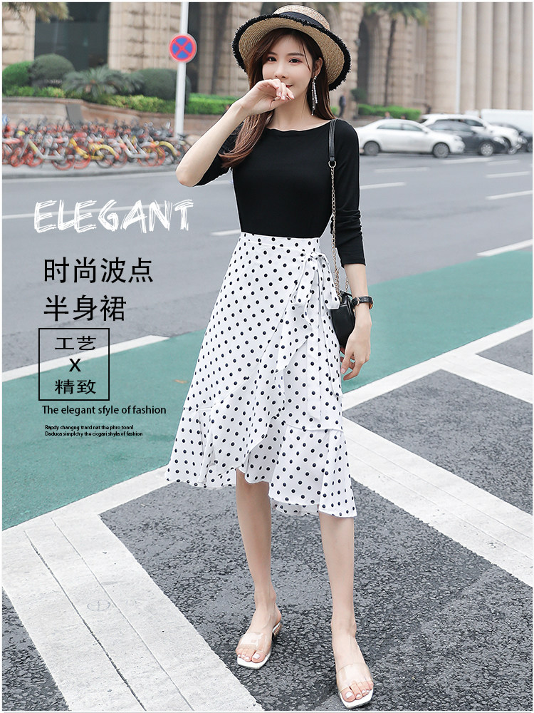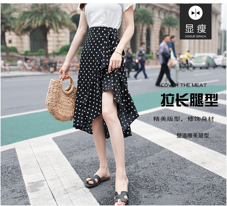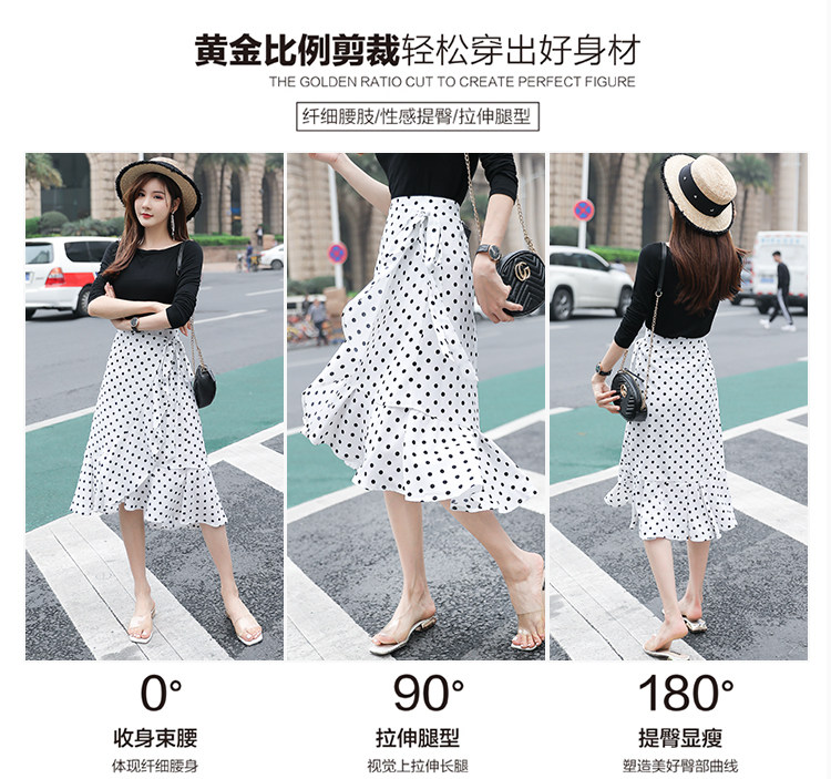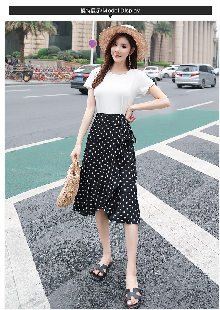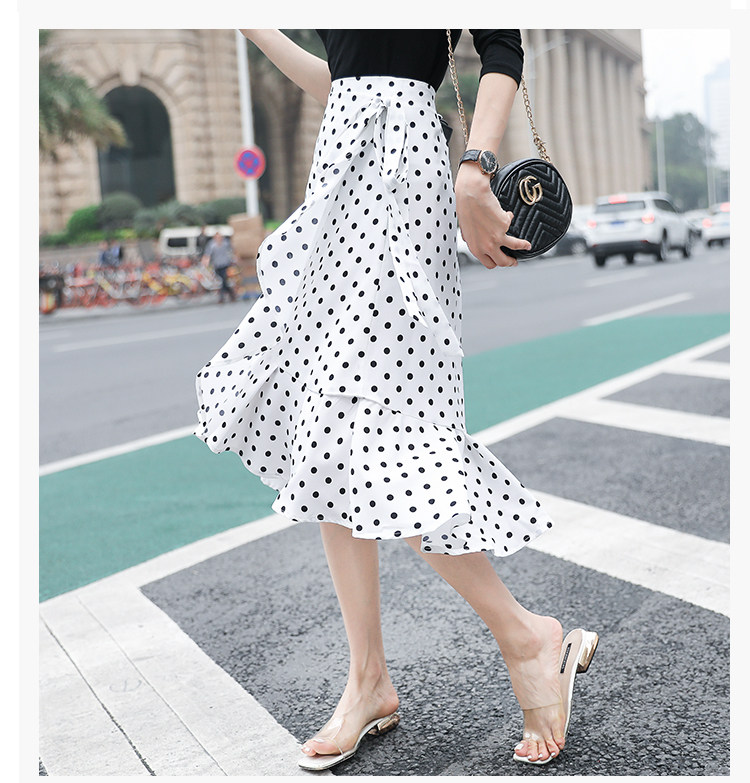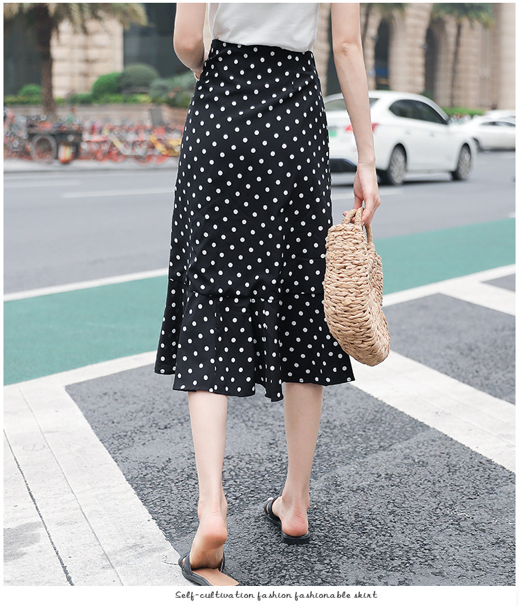 RM7346#夏季波点印花半身裙百搭一片式系带裹裙中长款鱼尾裙