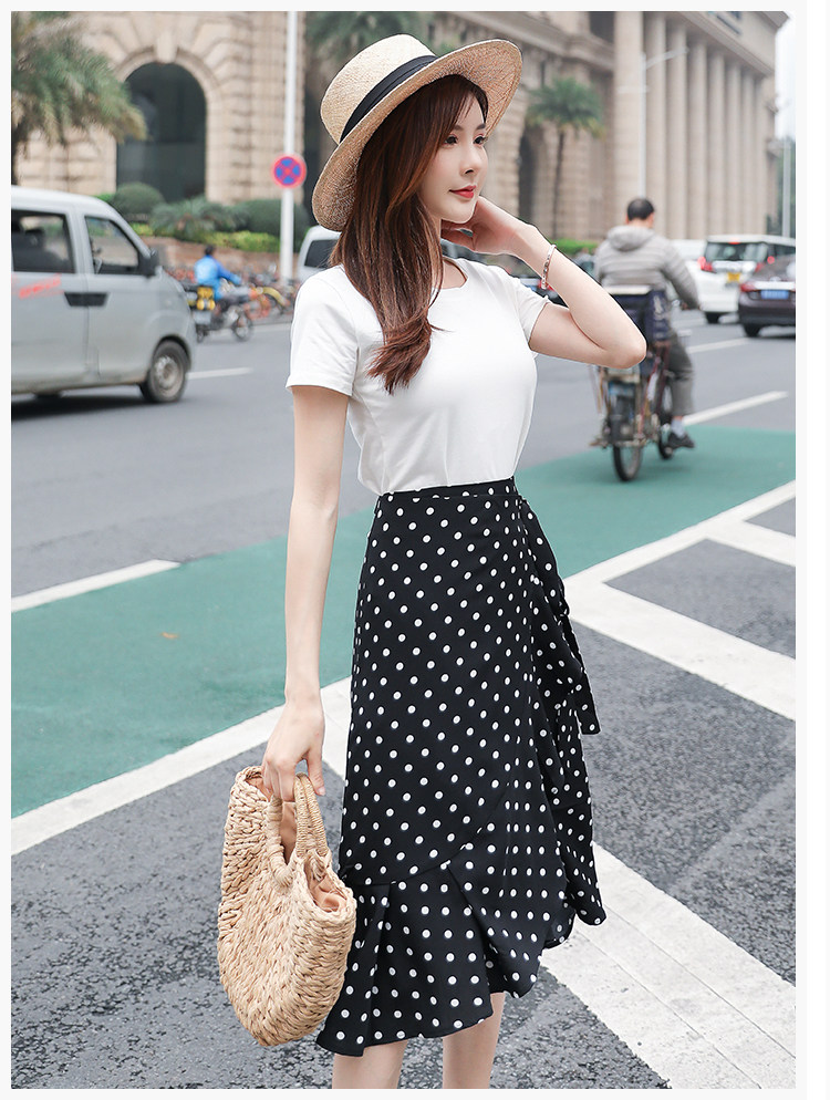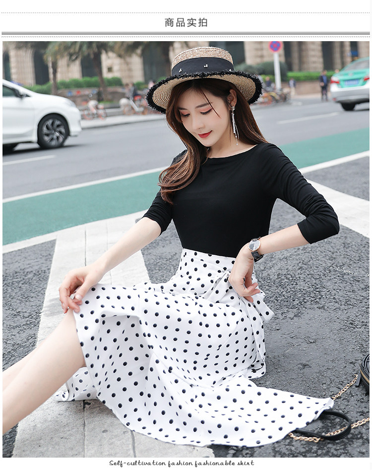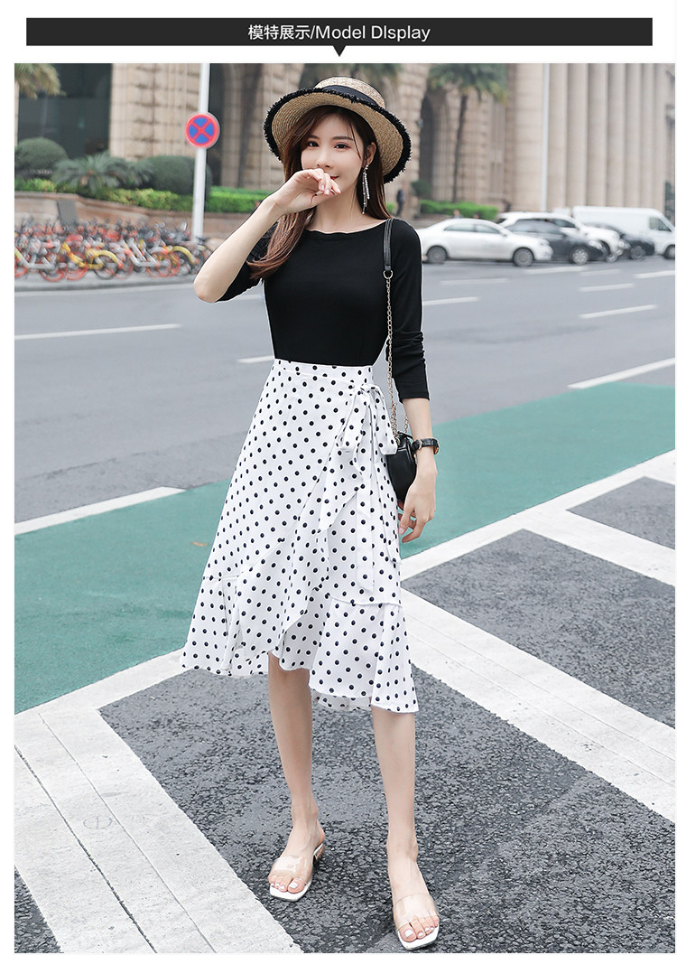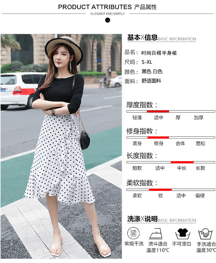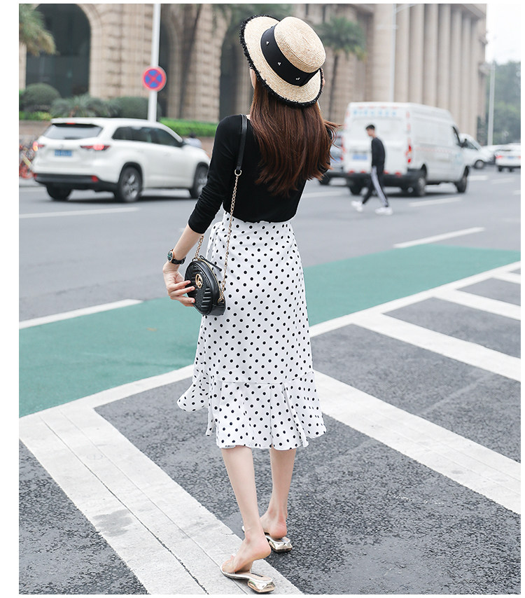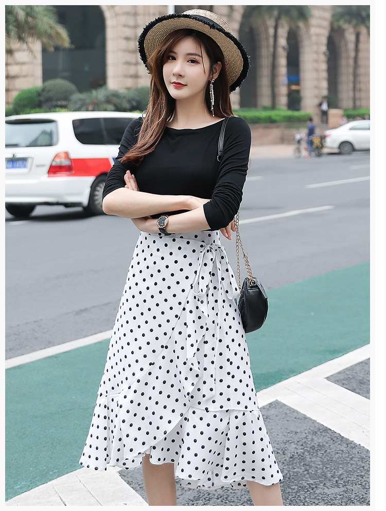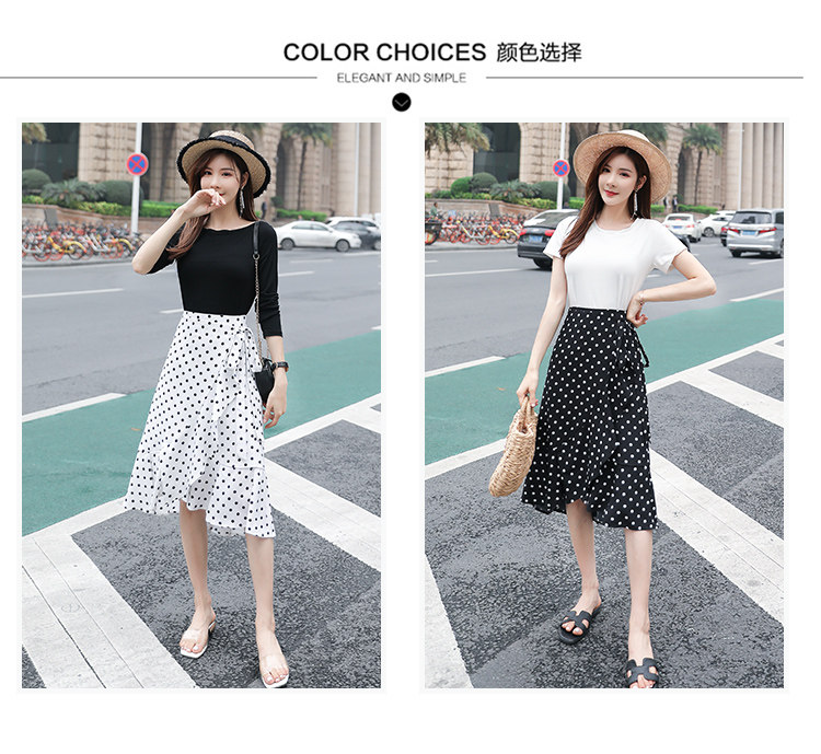 RM7346#夏季波点印花半身裙百搭一片式系带裹裙中长款鱼尾裙