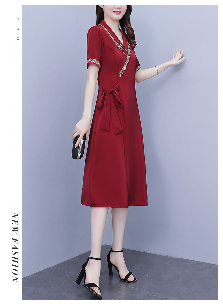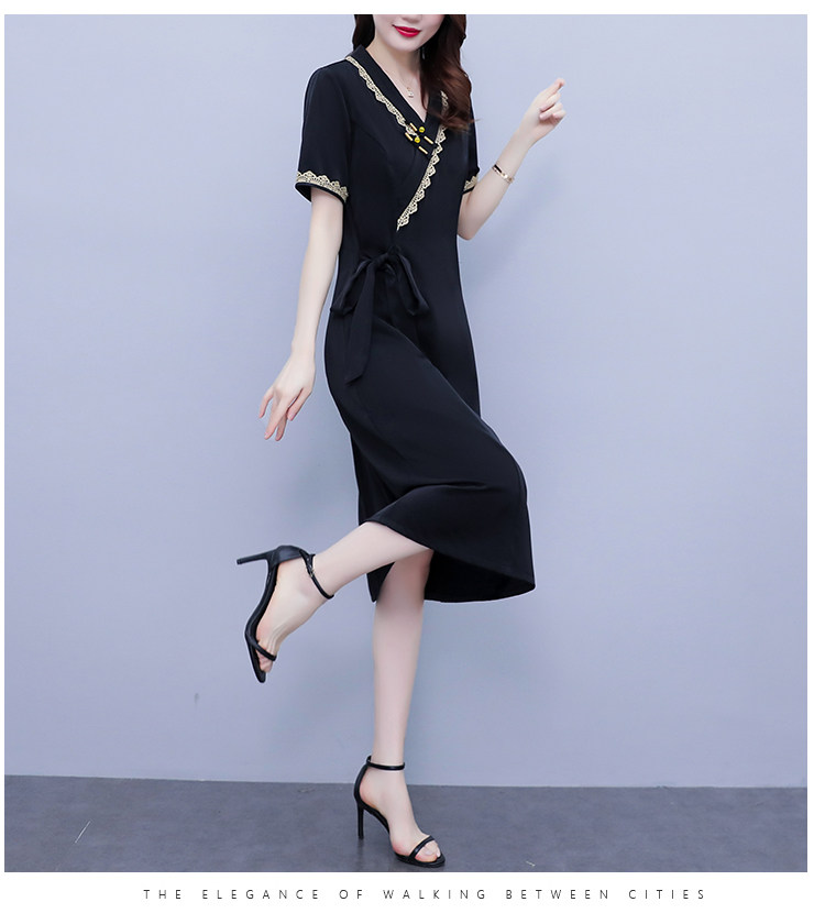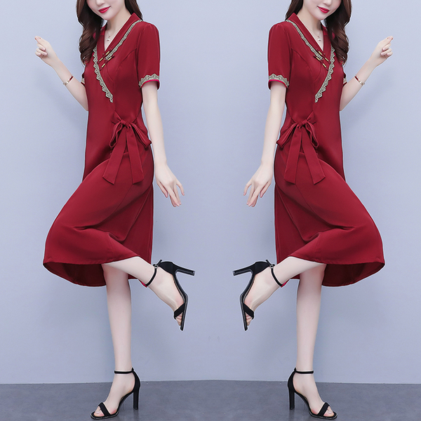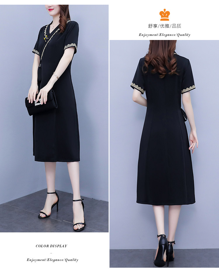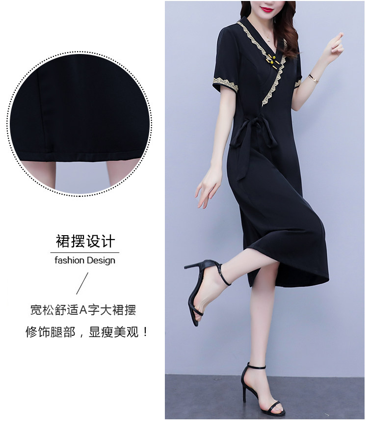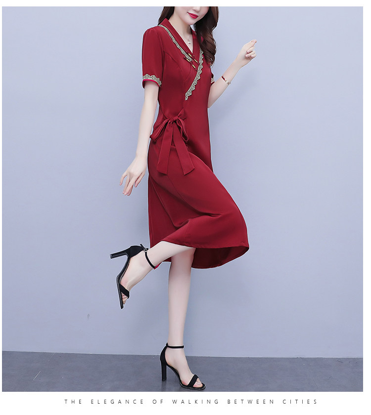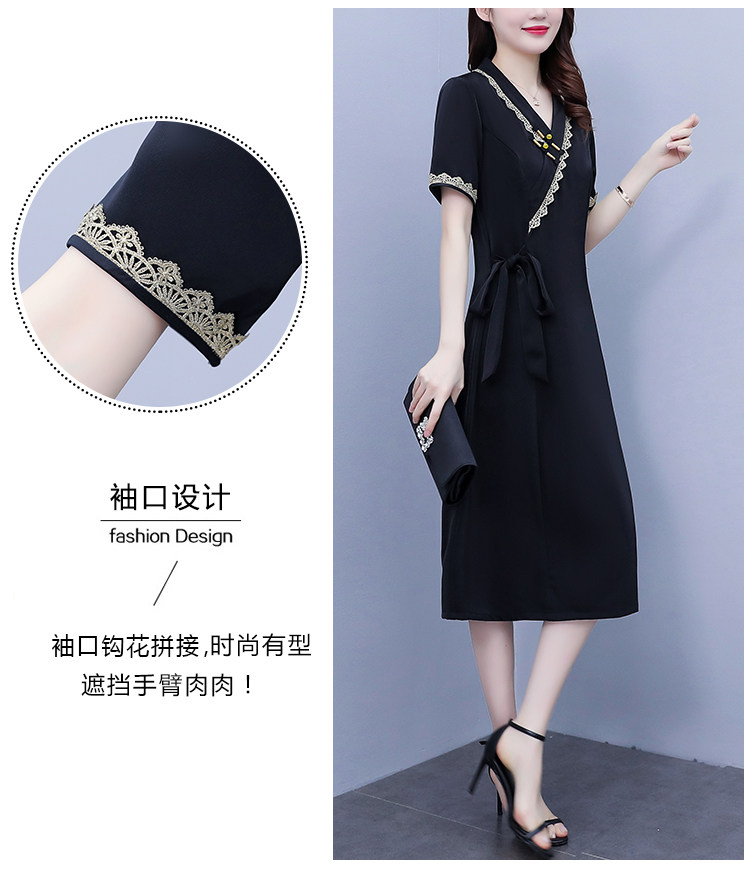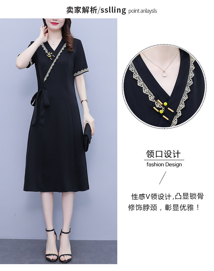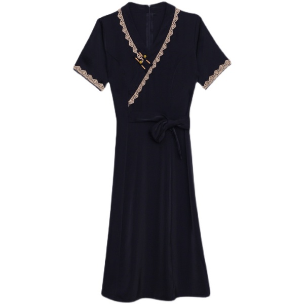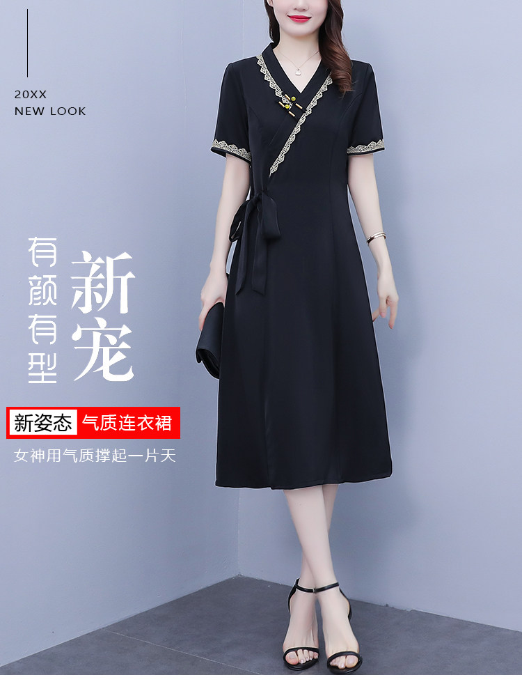 RM7371#新款复古醋酸旗袍改良版V领收腰显瘦气质大裙摆连衣裙