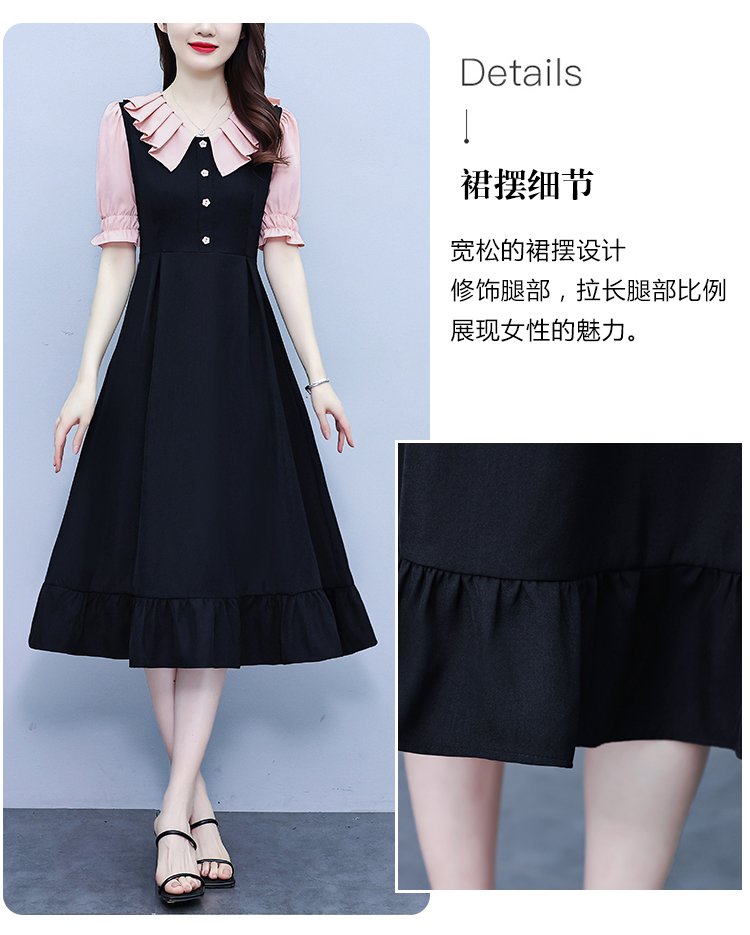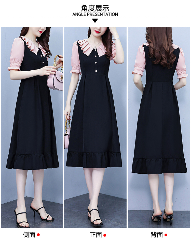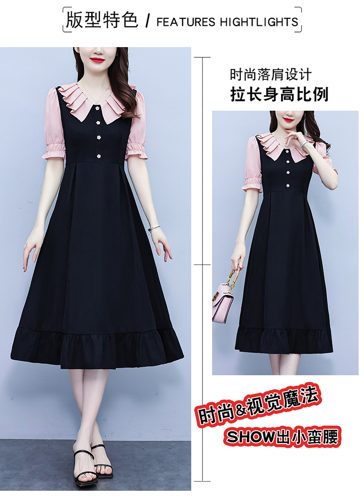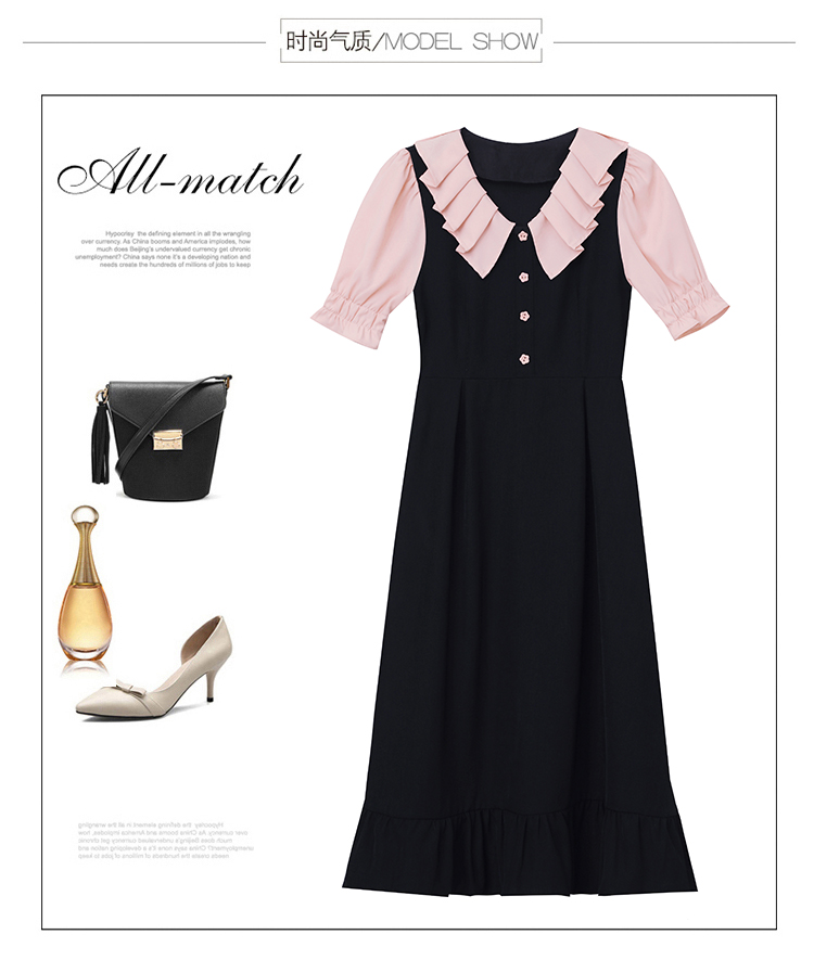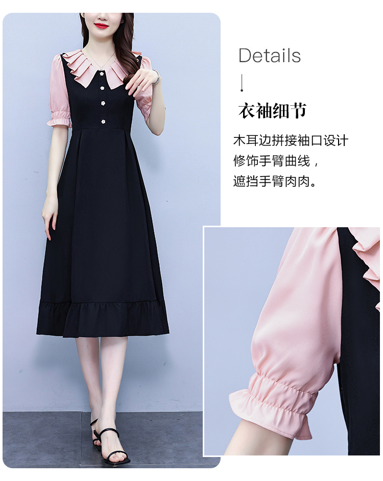 RM7377#大码女装淑女超修身夏季单排扣荷叶边裙中长裙公主袖连衣裙