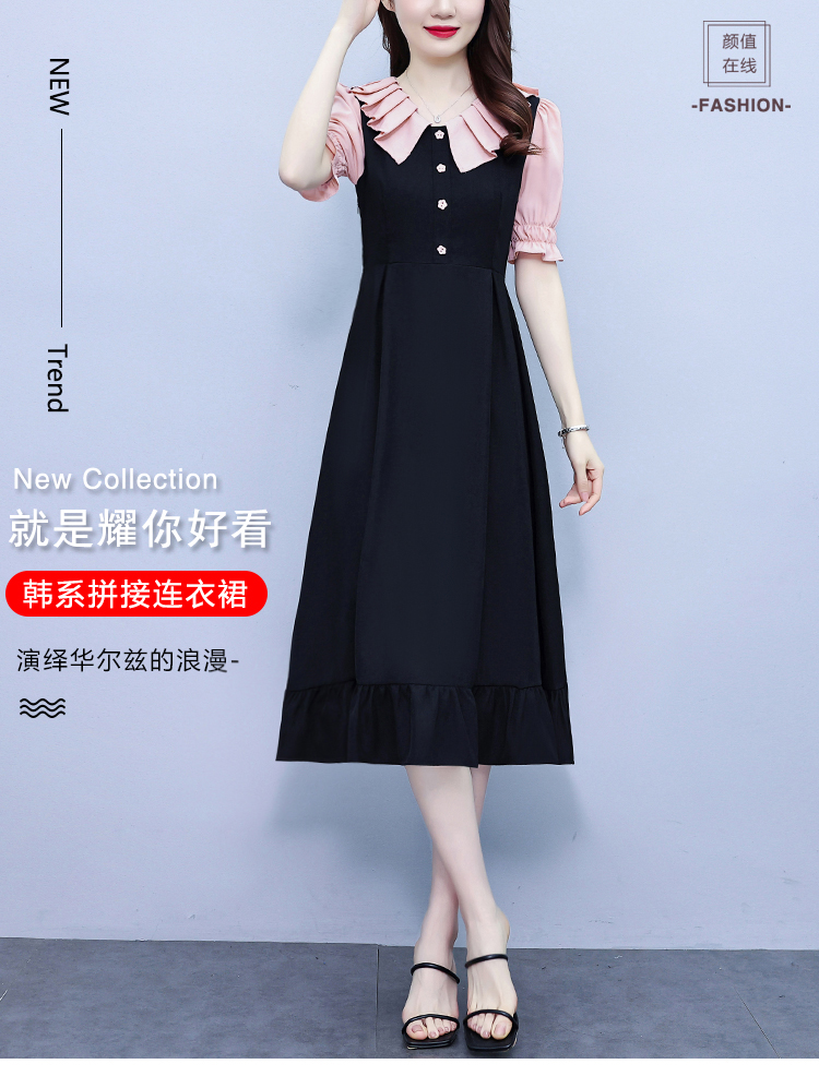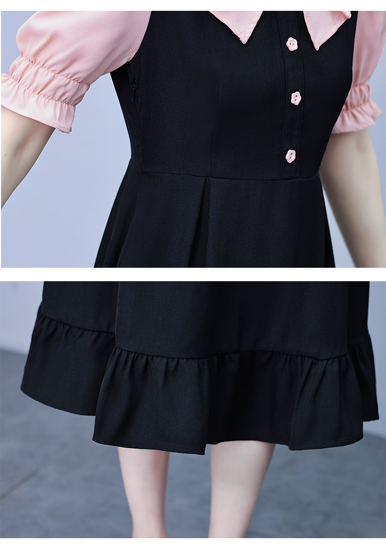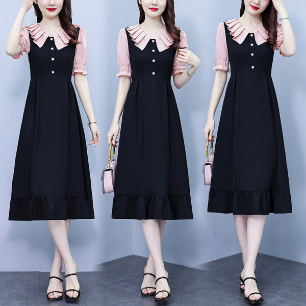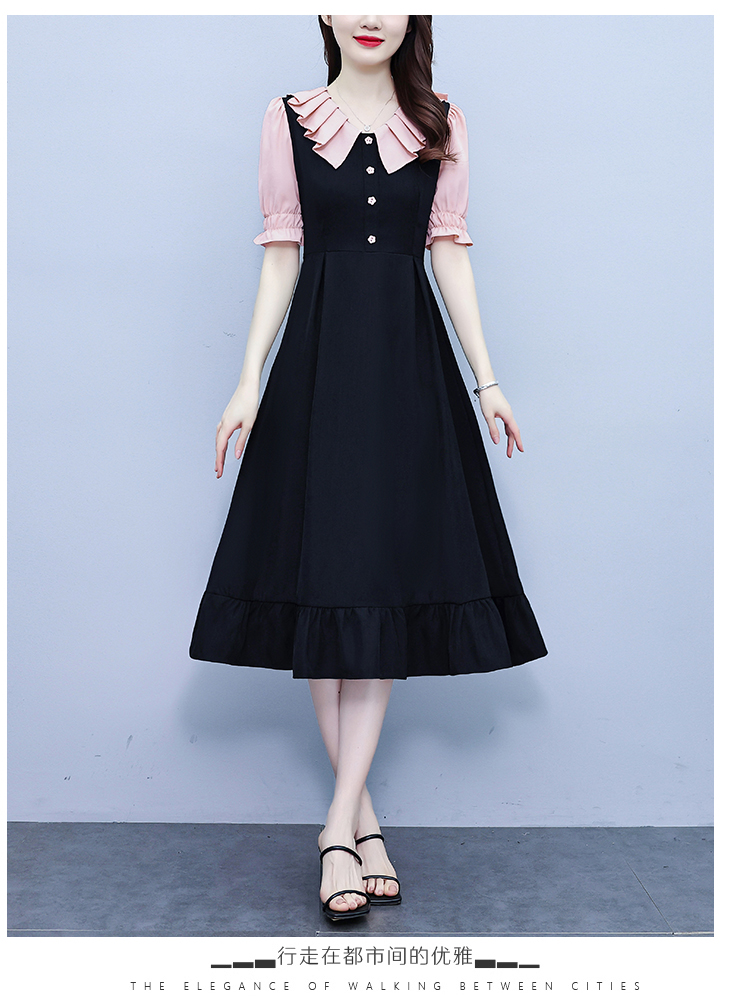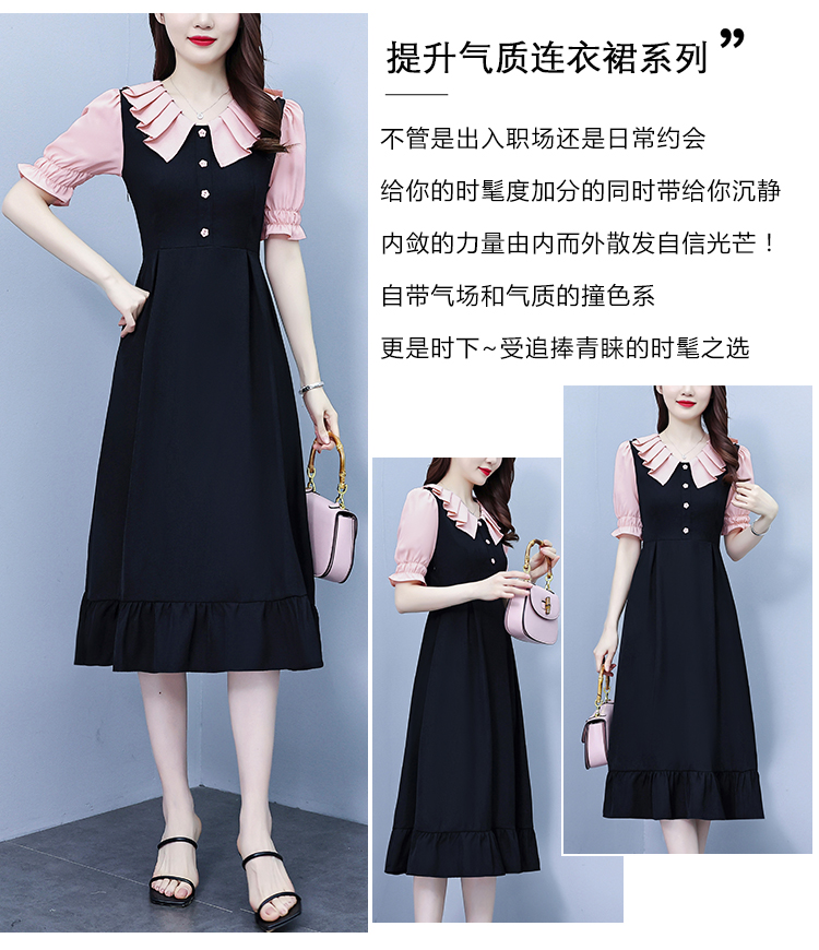 RM7377#大码女装淑女超修身夏季单排扣荷叶边裙中长裙公主袖连衣裙