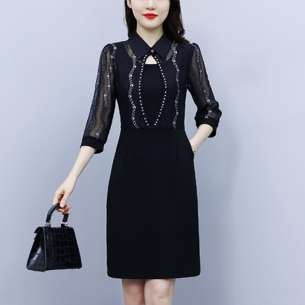 RM7391#胖mm大码女装2023夏季新款洋气显瘦减龄蕾丝拼接遮肉连衣裙