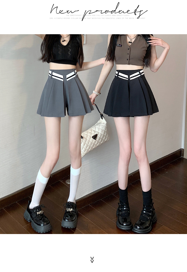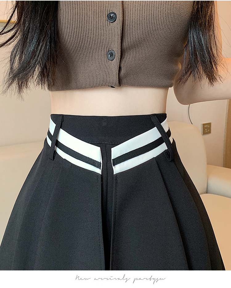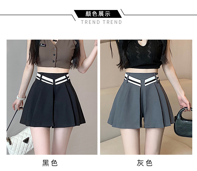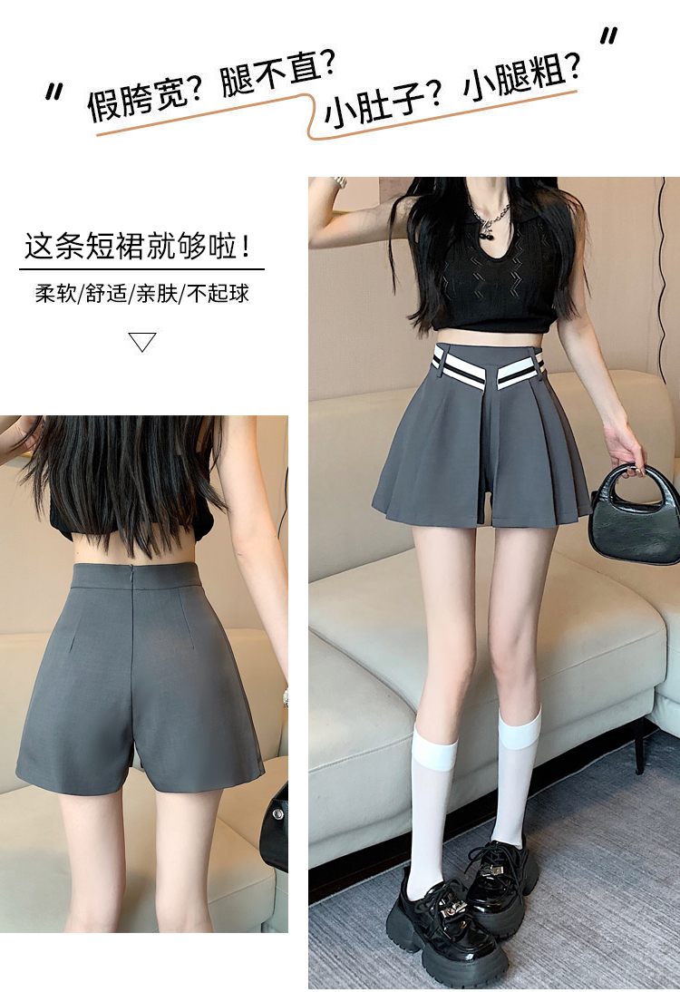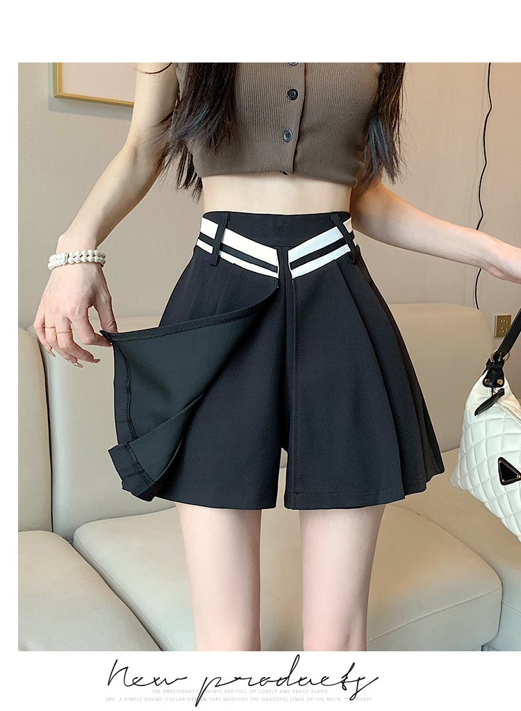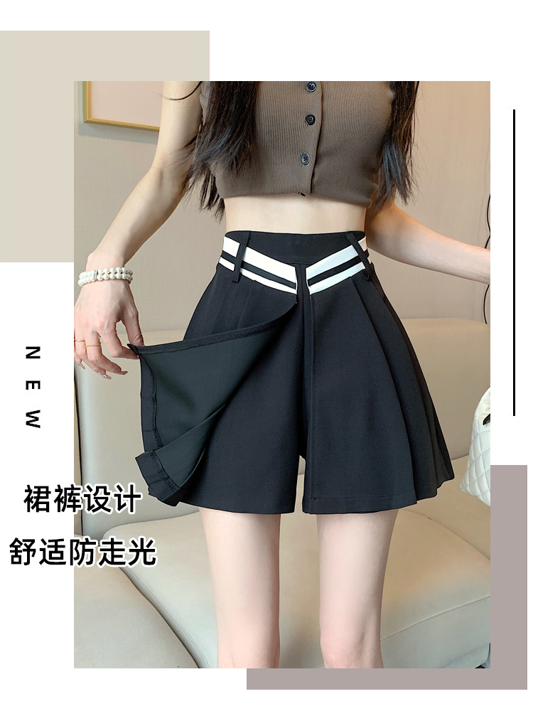 RM7457#学院风气质撞色高腰显瘦a字阔腿休闲西装短裤女百褶裙裤