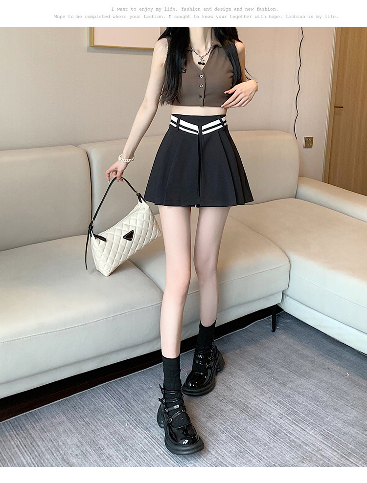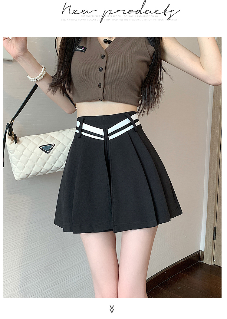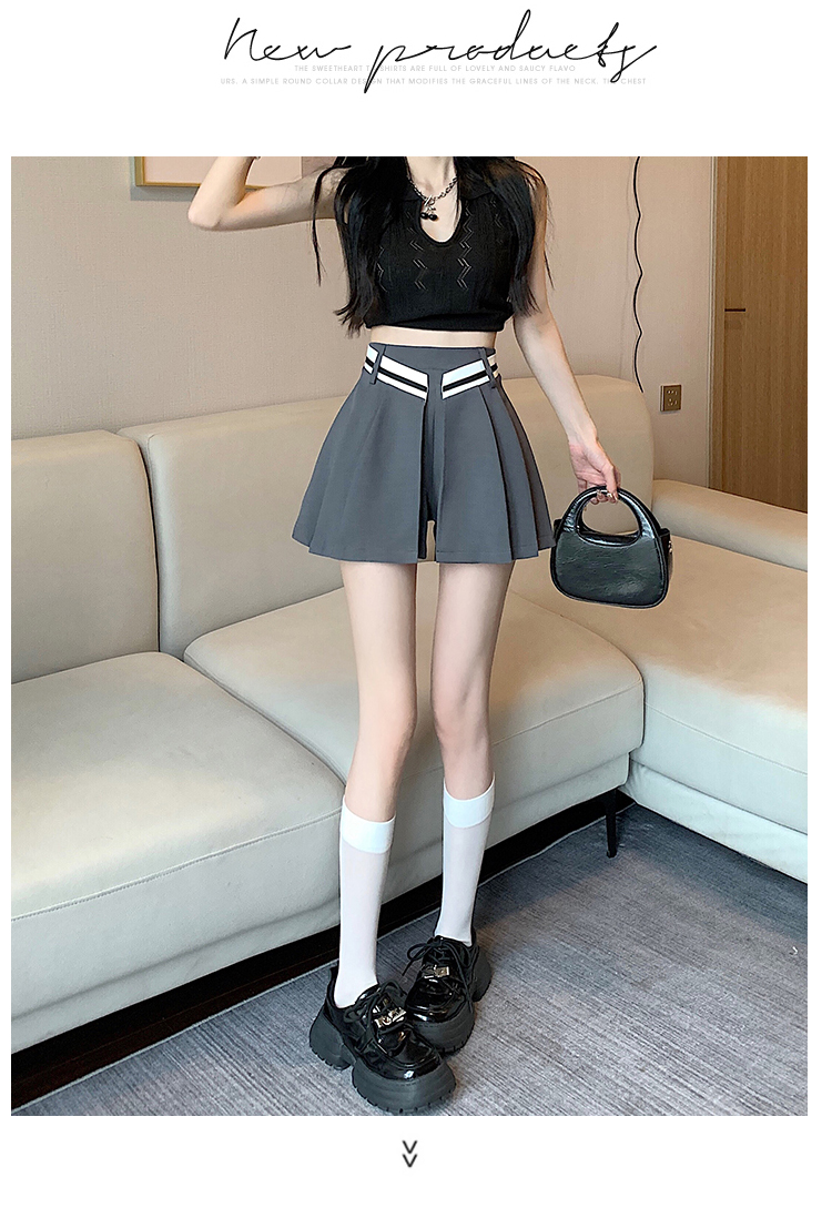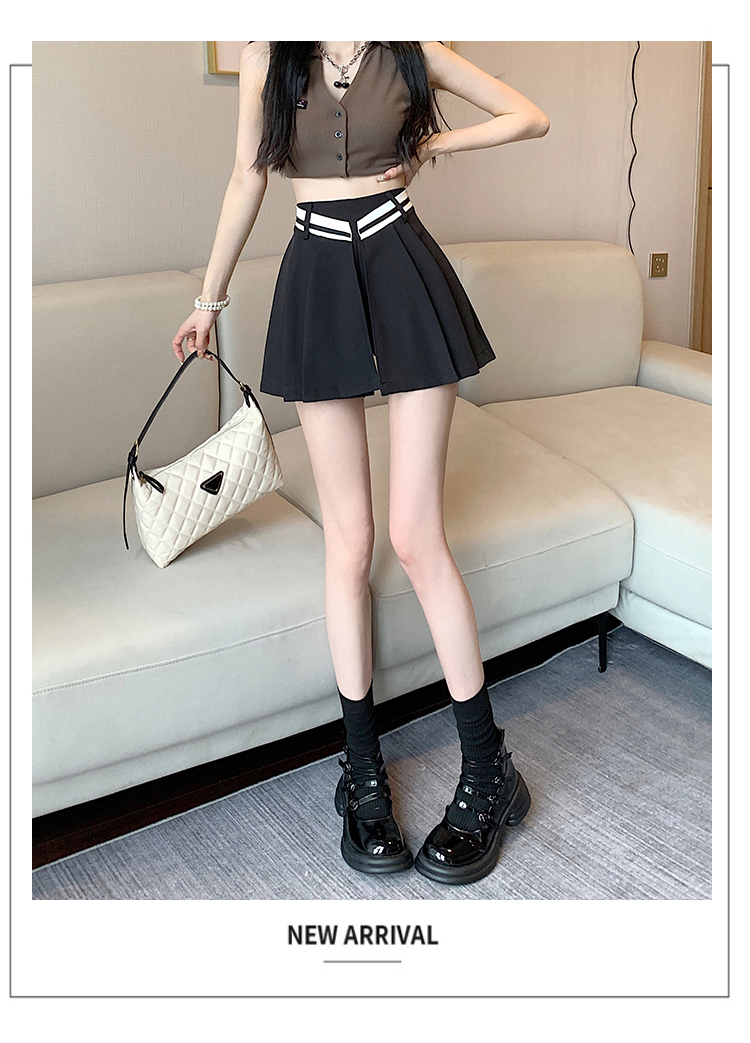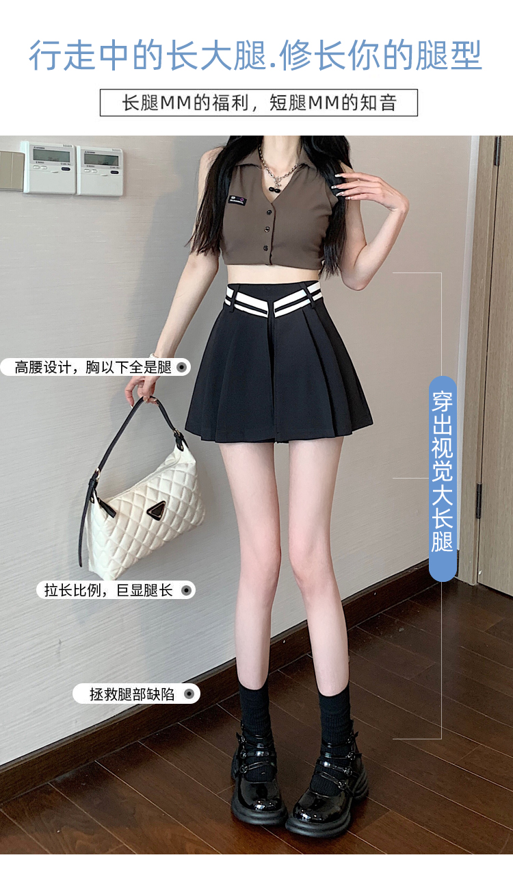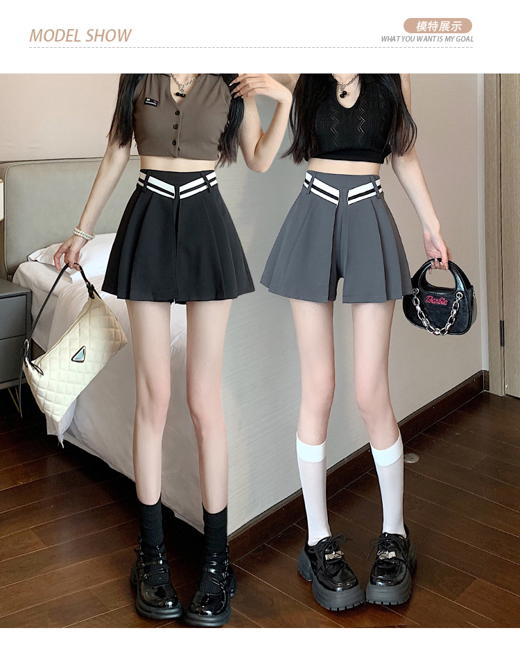 RM7457#学院风气质撞色高腰显瘦a字阔腿休闲西装短裤女百褶裙裤