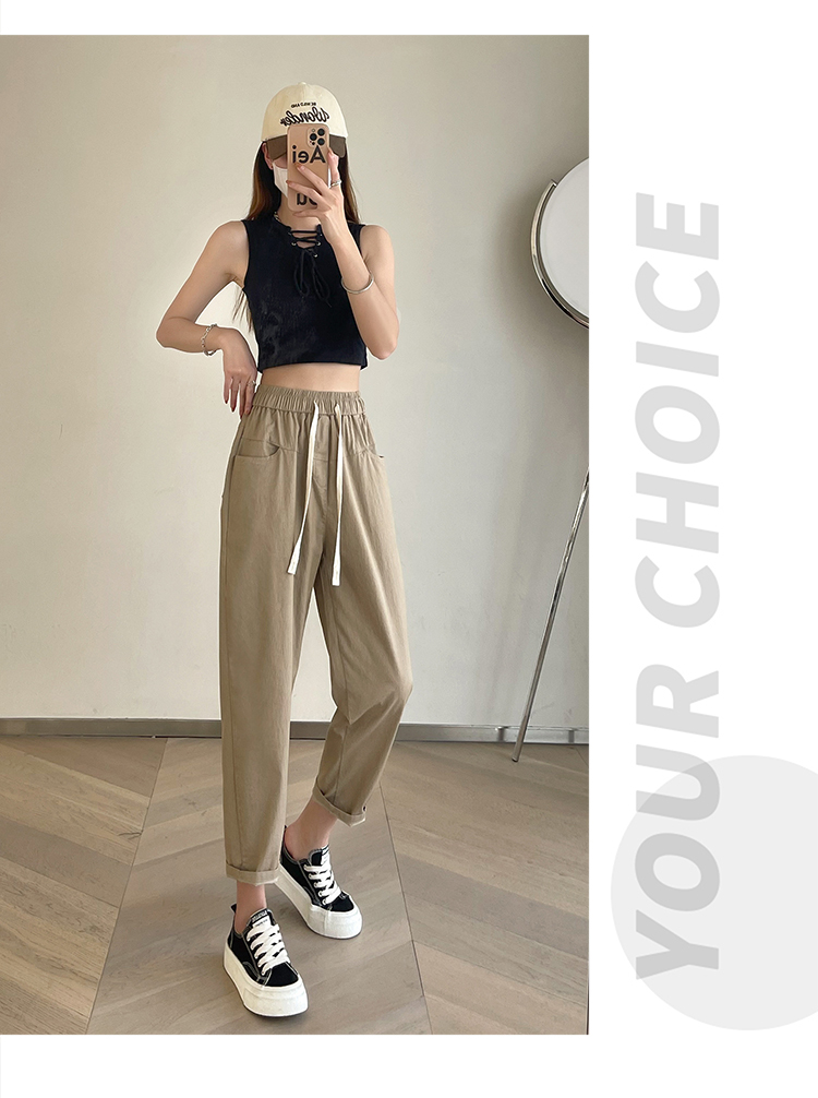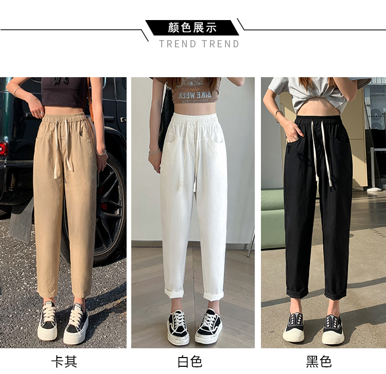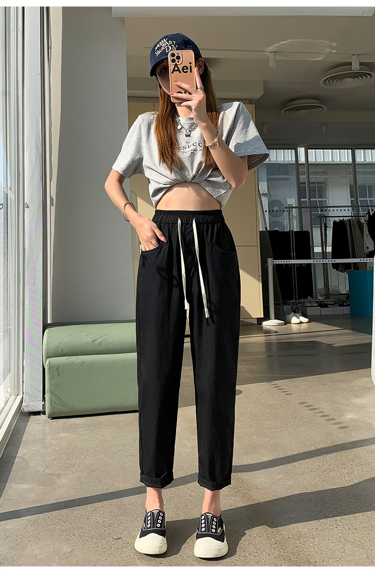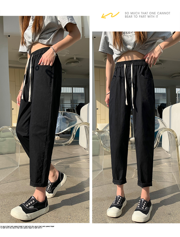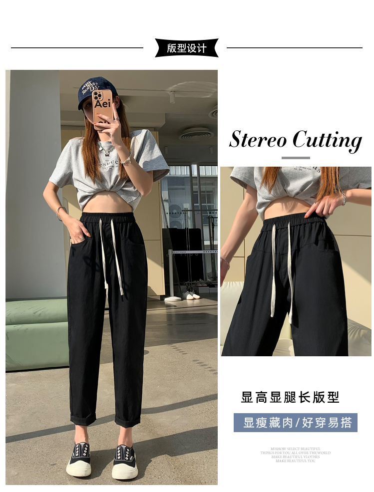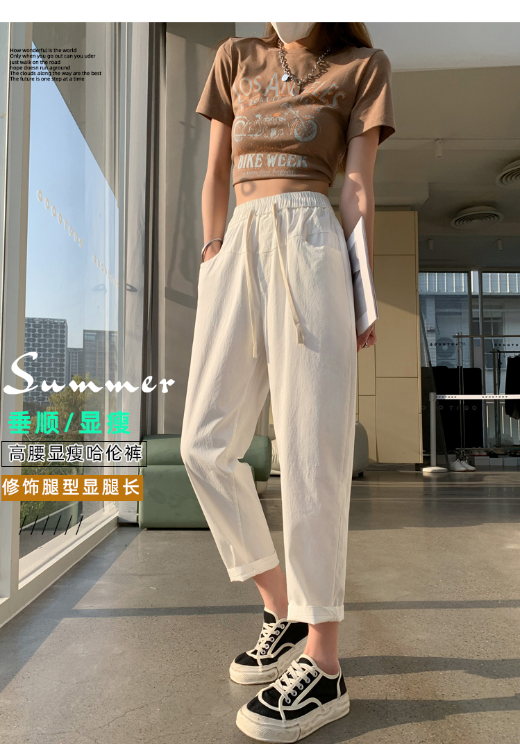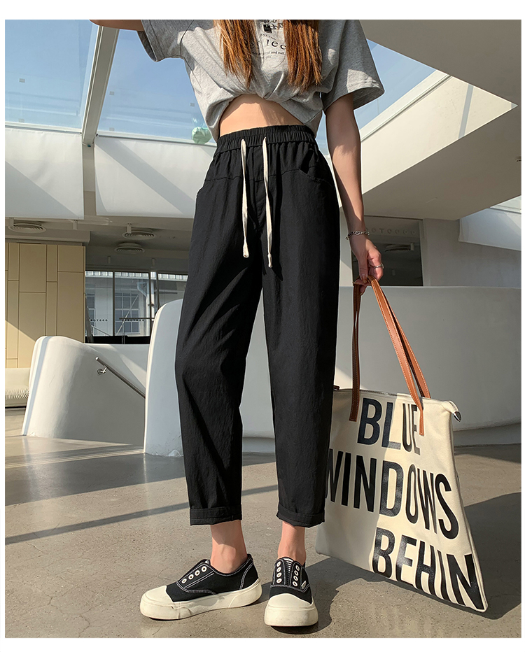RM7458#夏宽松显瘦薄款洗水棉松紧腰弹力抽绳九分哈伦裤休闲裤