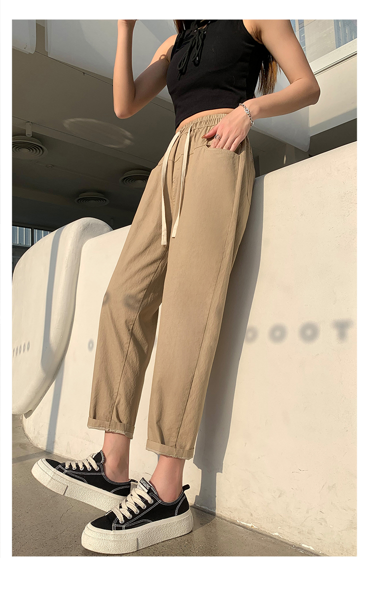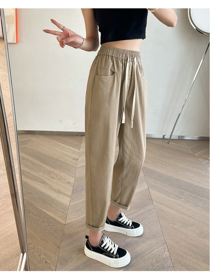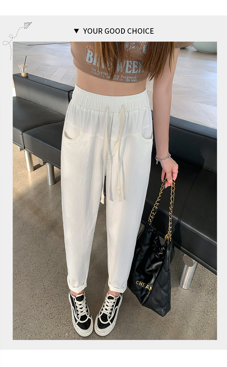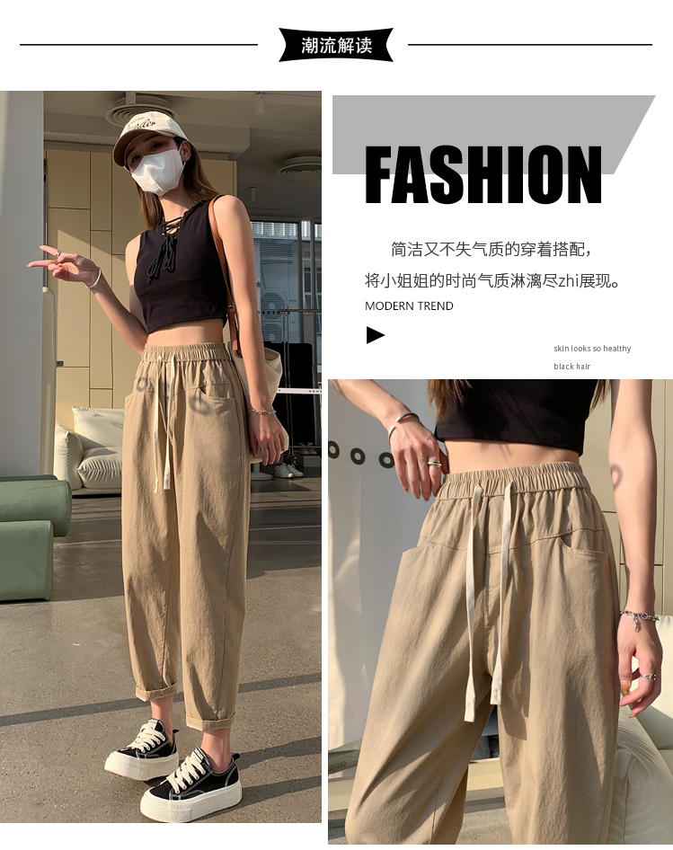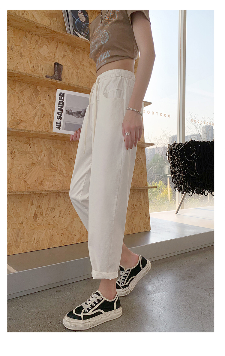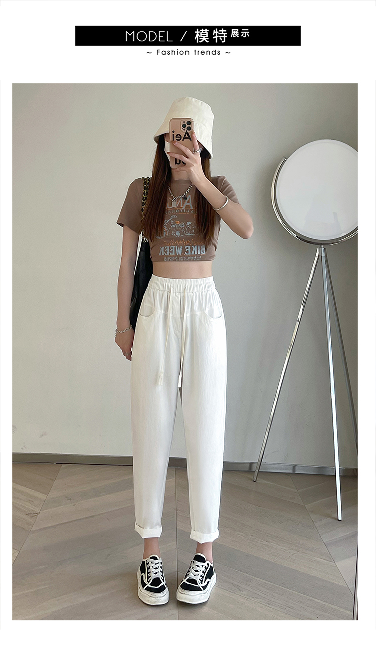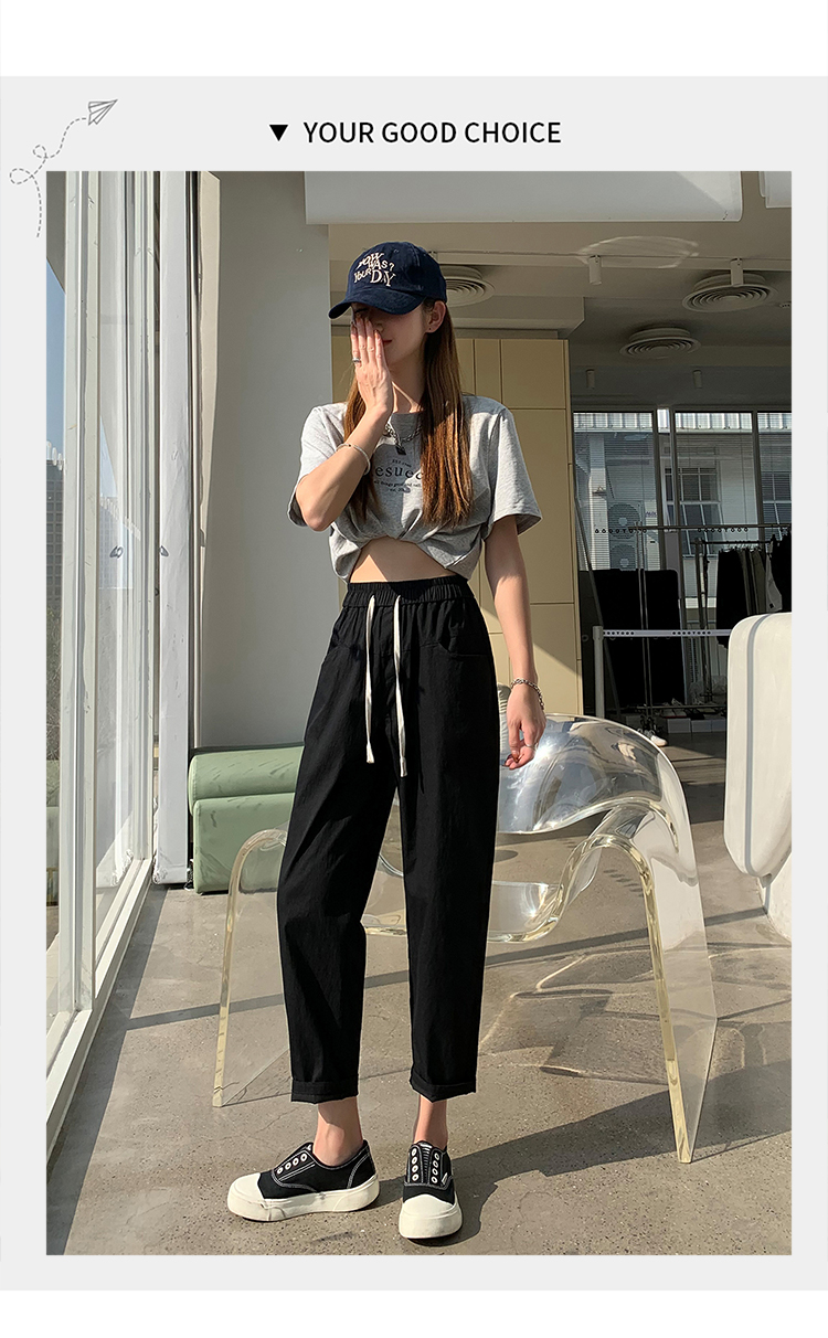 RM7458#夏宽松显瘦薄款洗水棉松紧腰弹力抽绳九分哈伦裤休闲裤