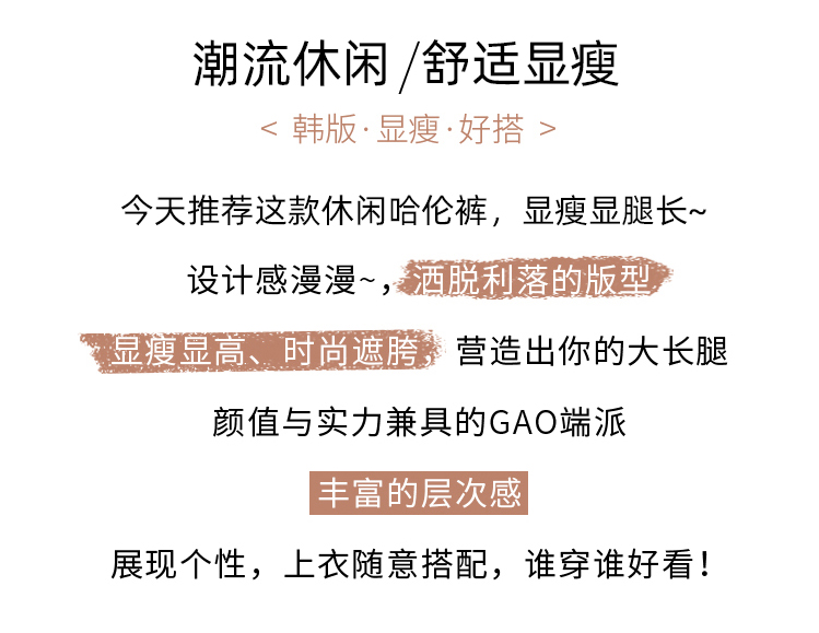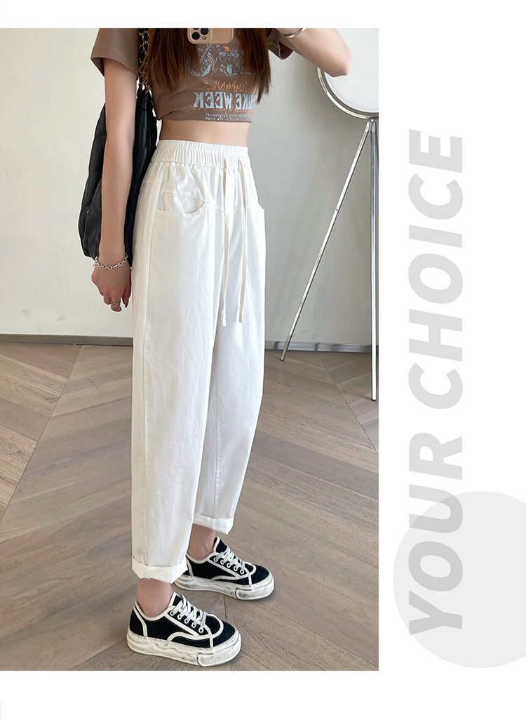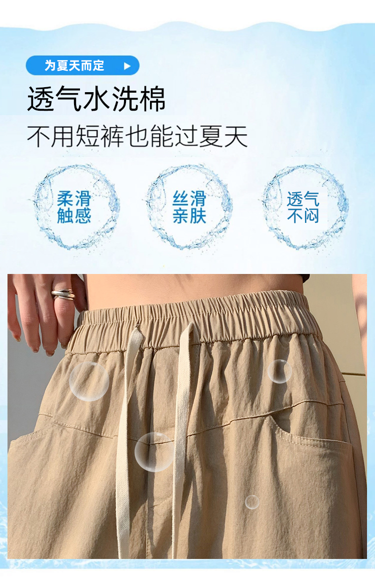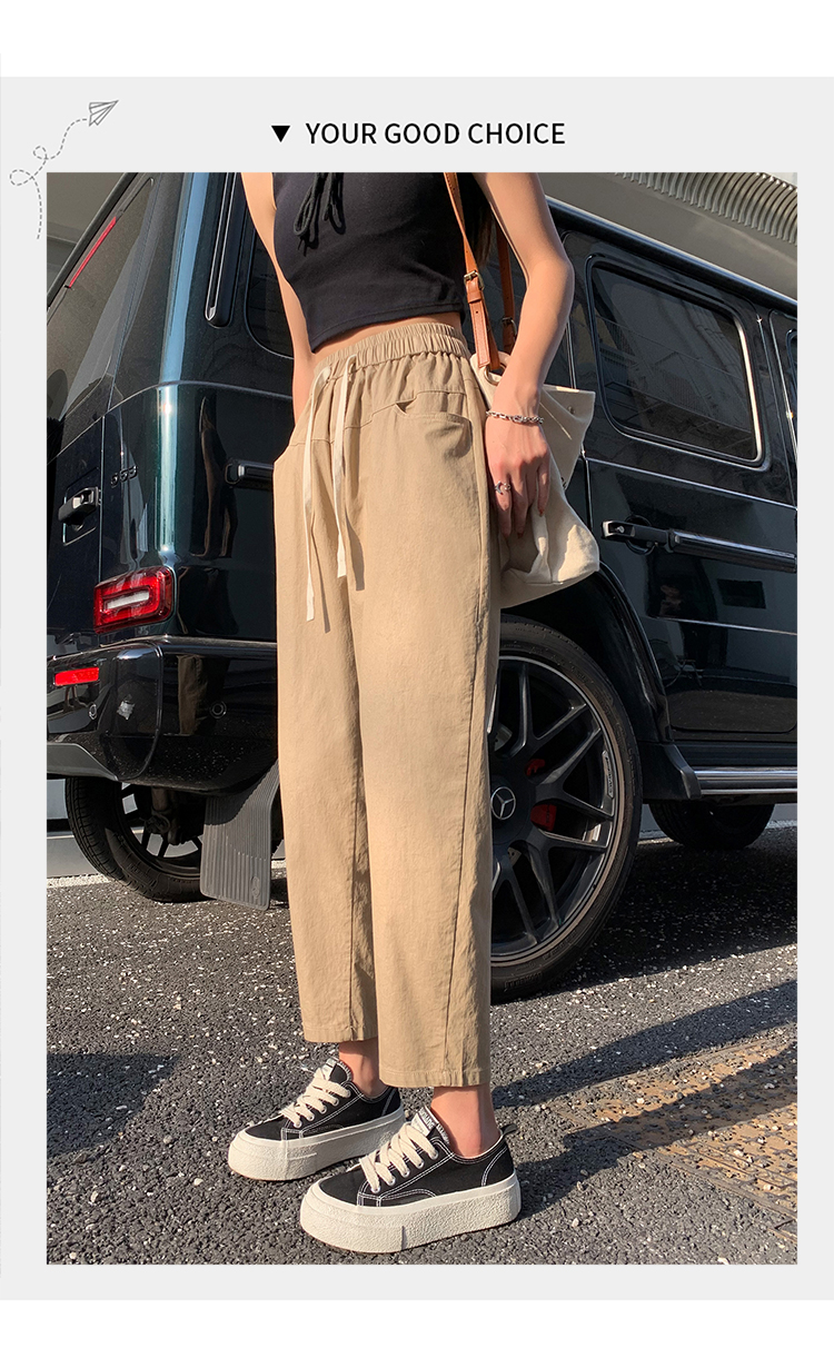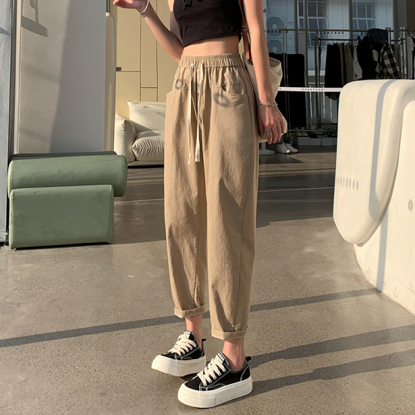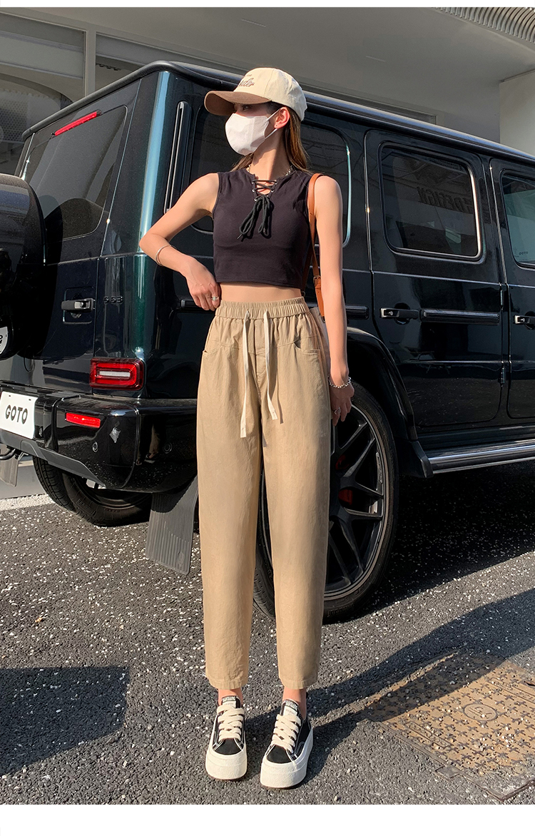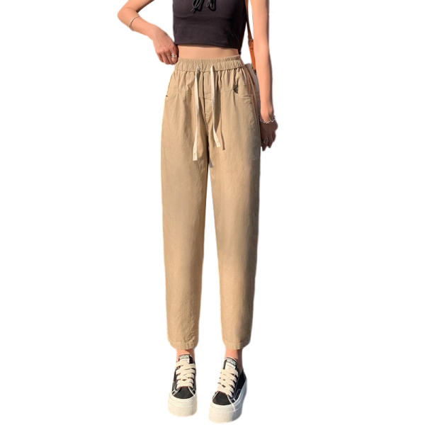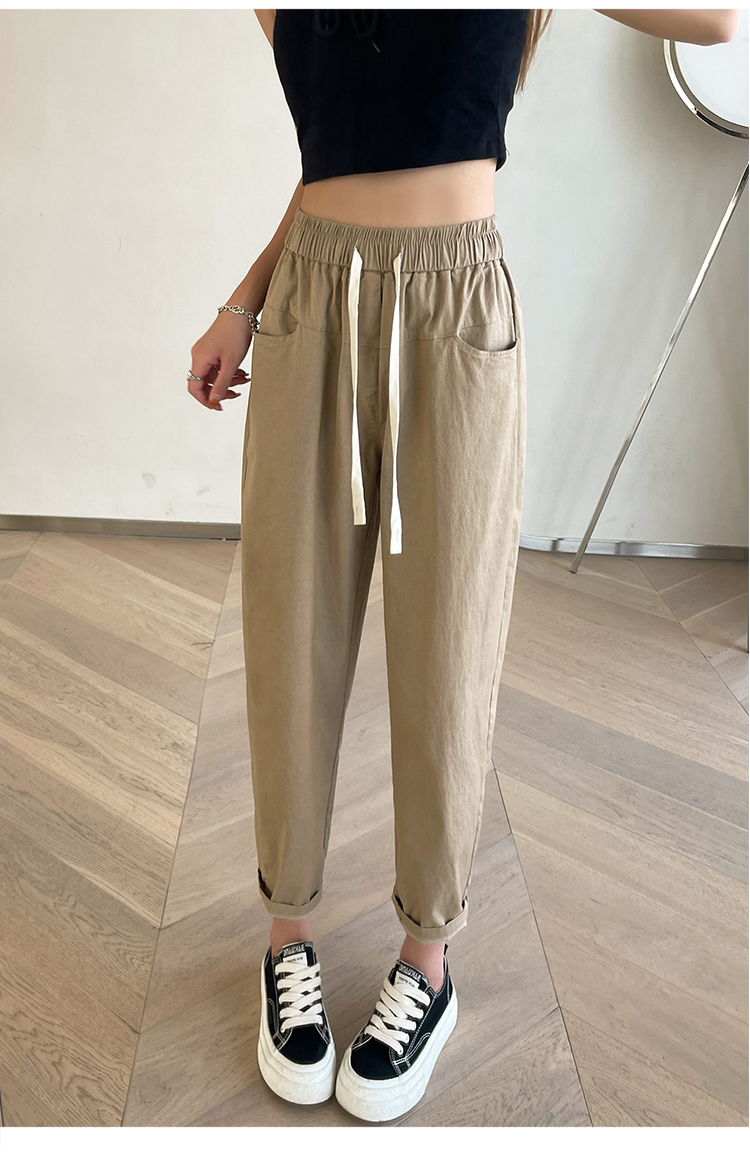RM7458#夏宽松显瘦薄款洗水棉松紧腰弹力抽绳九分哈伦裤休闲裤