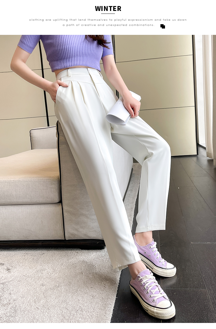 RM7465#冰丝西装裤女2023夏季薄款垂感烟管裤九分西裤小个子休闲裤