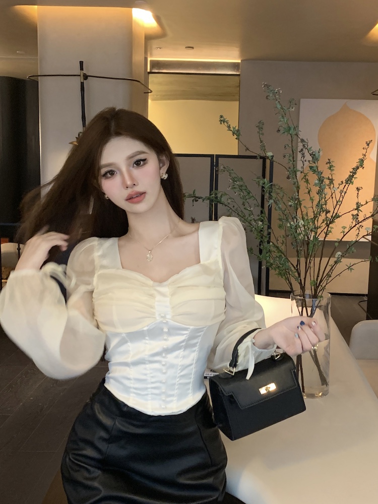 RM7480#纯欲风高级感白色雪纺衬衫设计感小众辣妹别致纯欲上衣
