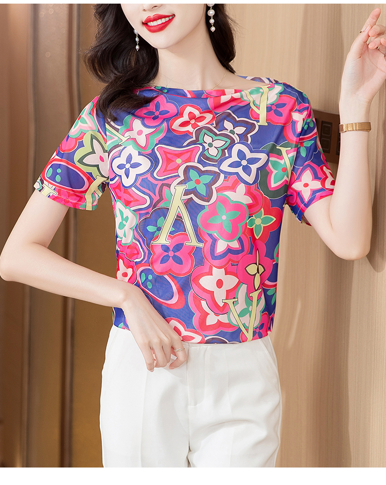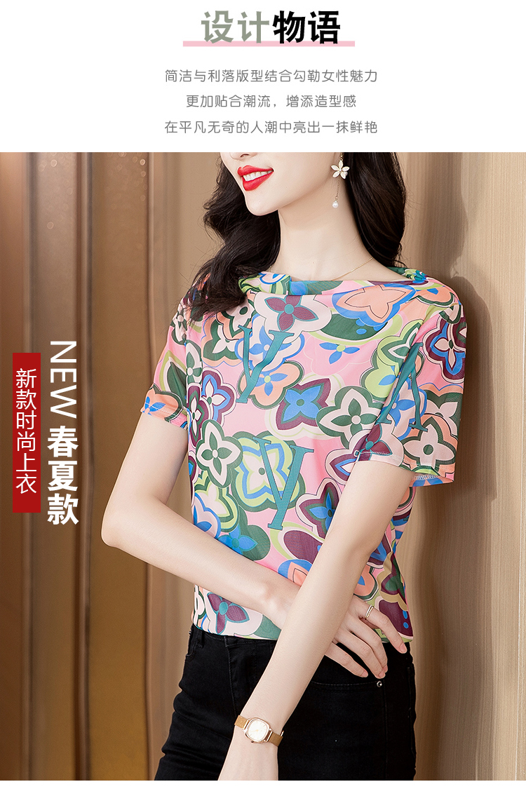 RY1476#显瘦上衣时尚洋气显瘦休闲圆领小衫短袖T恤女
